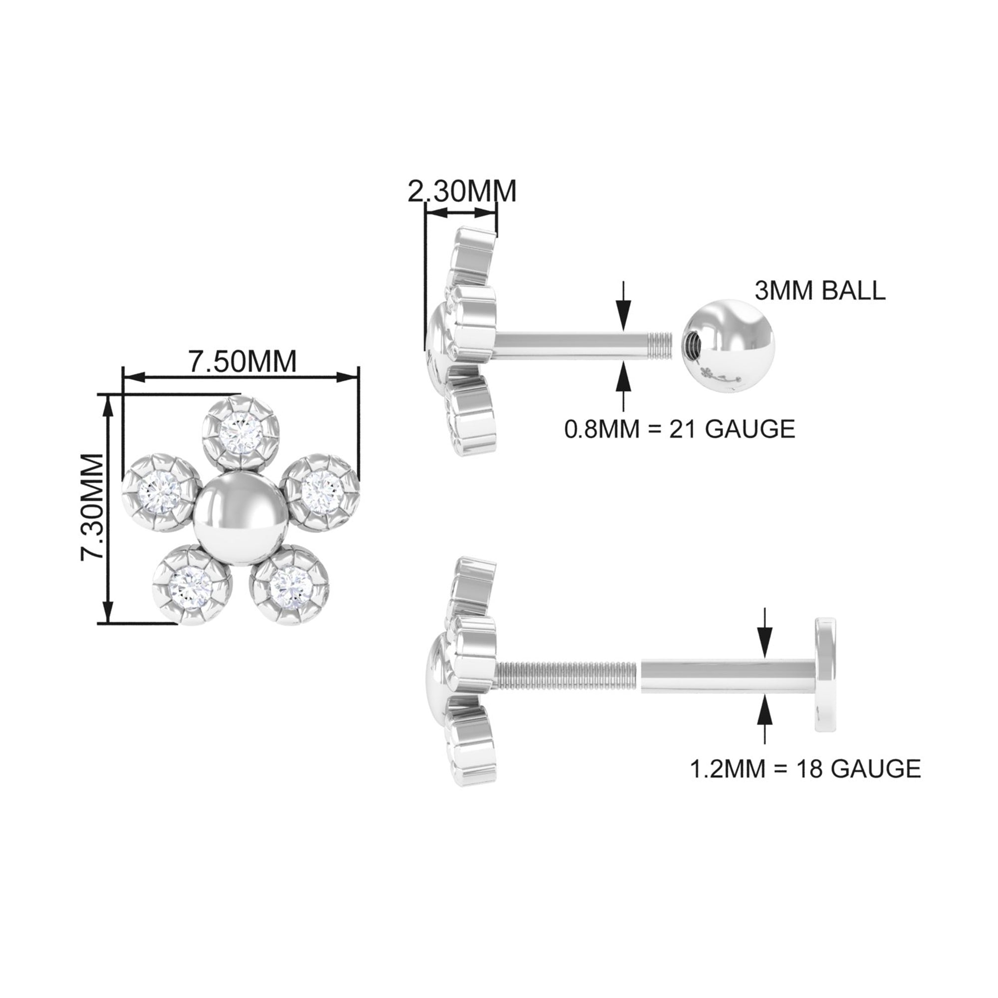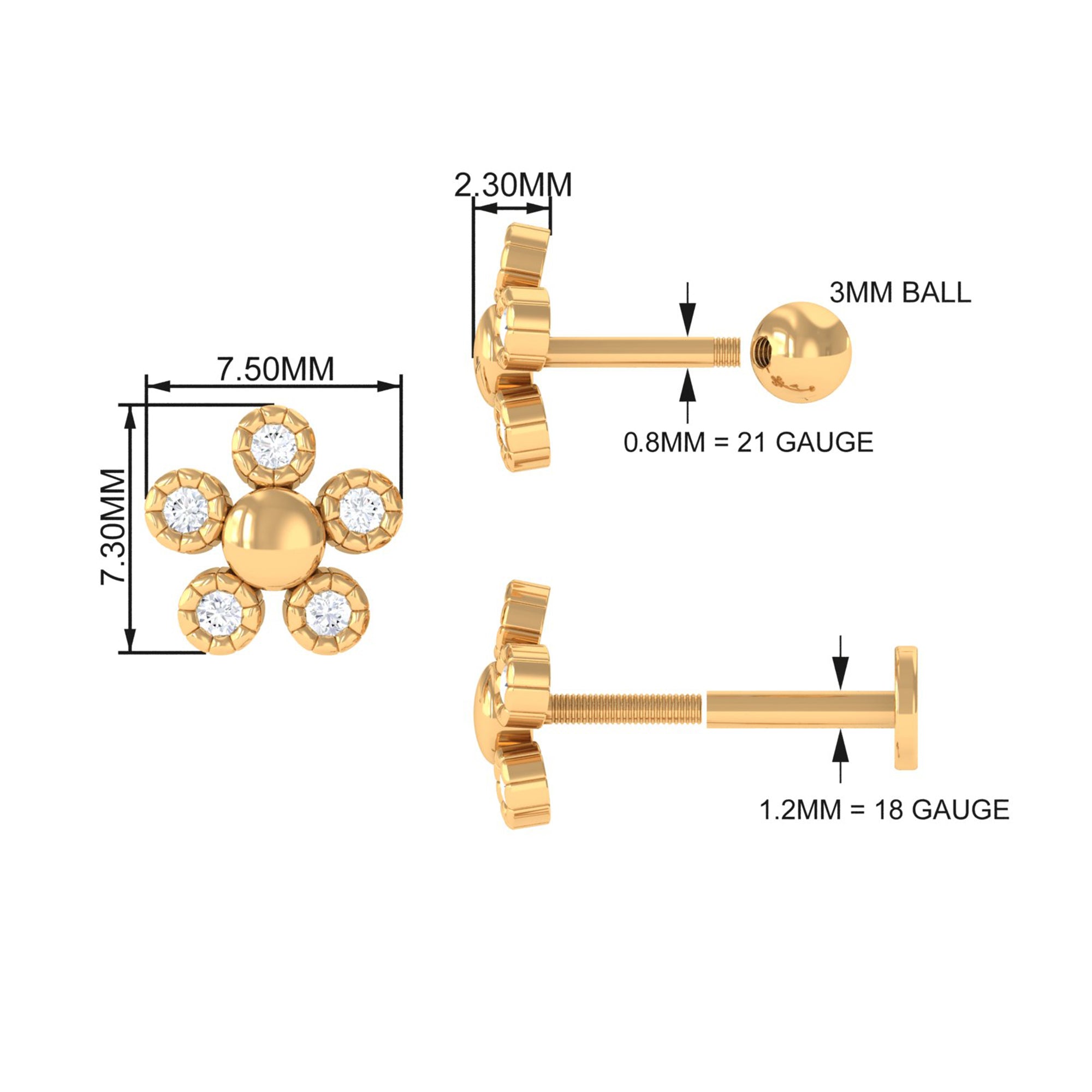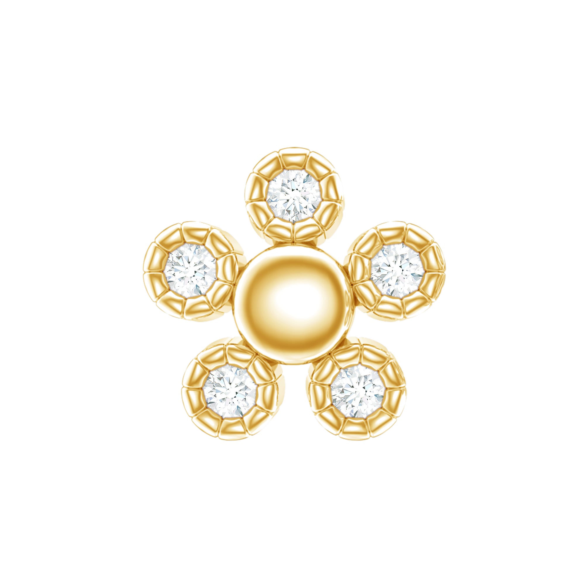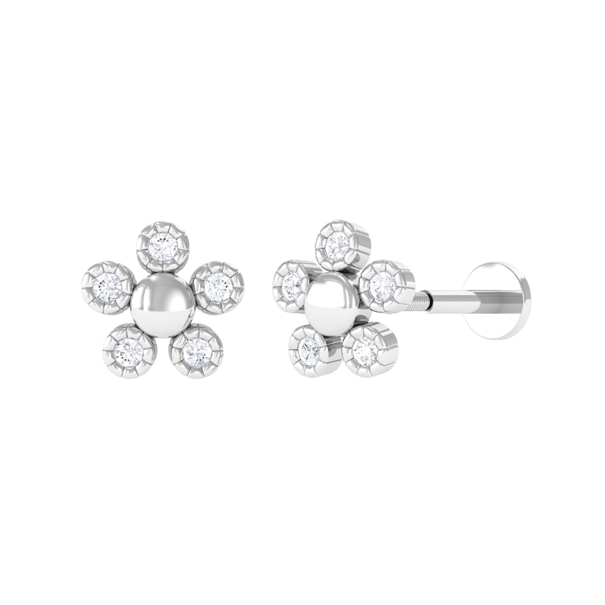 Ta-da! Upgrade your ear stack with some floral charm of our Diamond Floral Cartilage Earring! Embellished with petite Round Diamonds set in Prong Setting, its minimal look allows you to stack it with your other floral ear jewelry collection. This dainty stunner comes equipped with a flat back, ensuring no pokes or jabs disrupt your quick naps or beauty sleep extravaganzas. Crafted for your active lifestyle, the Piercing Earring is your ultimate go-to, providing worry-free glamour that effortlessly accompanies you through workouts, travel, and all your daily adventures.