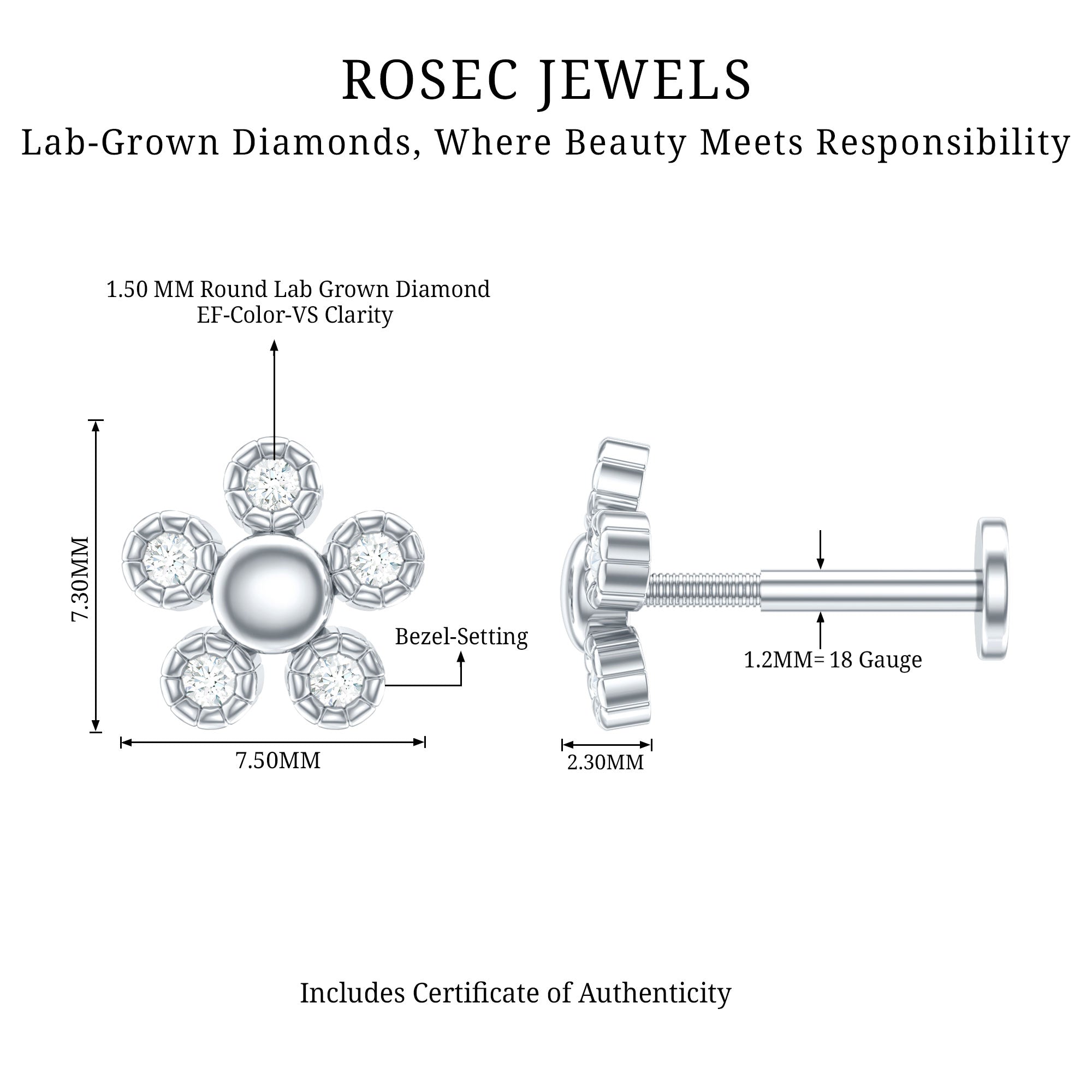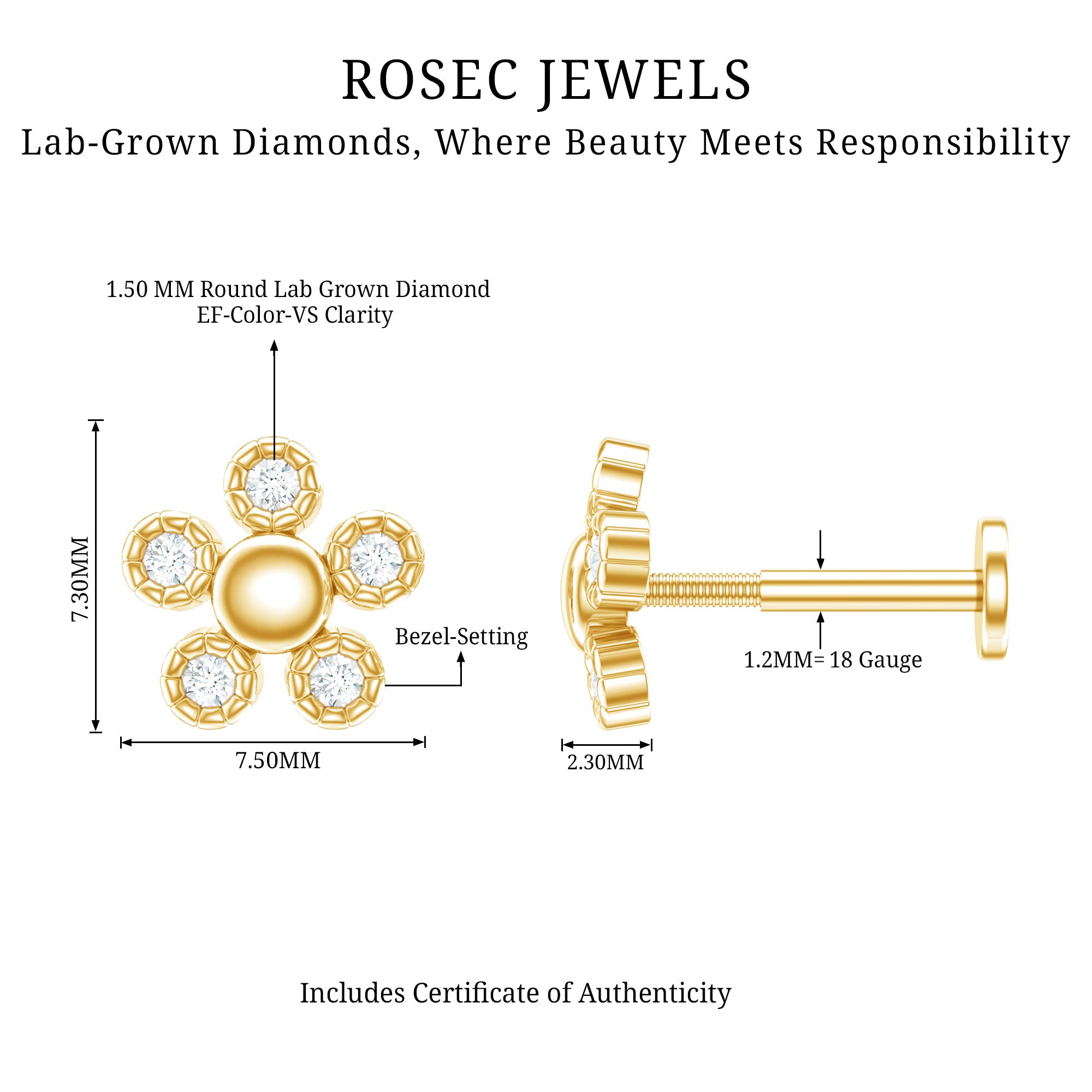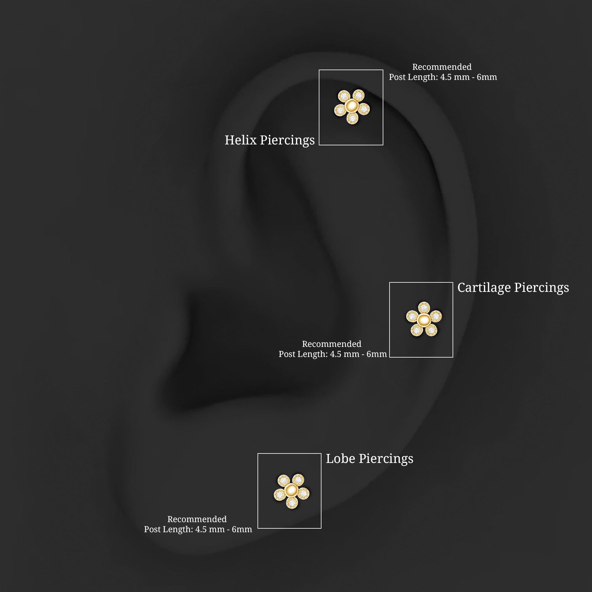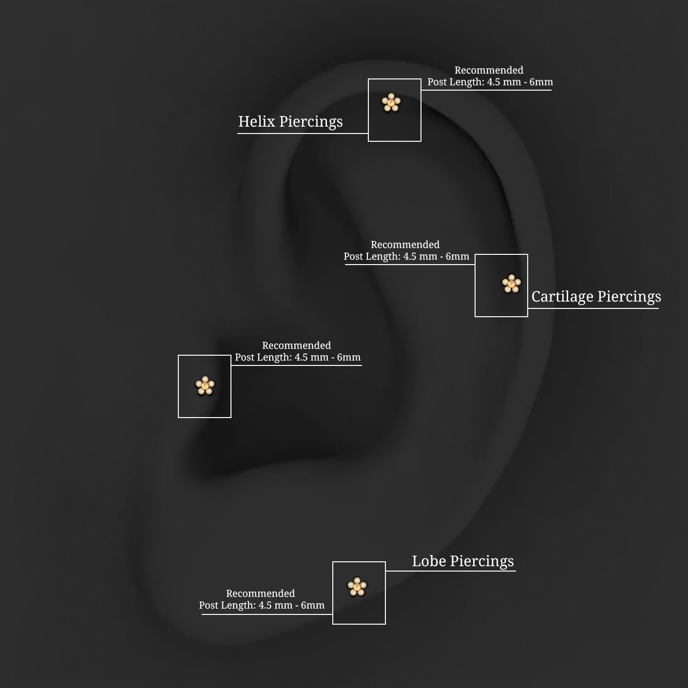 Ta-da! Upgrade your ear stack with some floral charm of our Diamond Floral Cartilage Earring! Embellished with petite Round Diamonds set in Prong Setting, its minimal look allows you to stack it with your other floral ear jewelry collection. This dainty stunner comes equipped with a flat back, ensuring no pokes or jabs disrupt your quick naps or beauty sleep extravaganzas. Crafted for your active lifestyle, the Piercing Earring is your ultimate go-to, providing worry-free glamour that effortlessly accompanies you through workouts, travel, and all your daily adventures.
