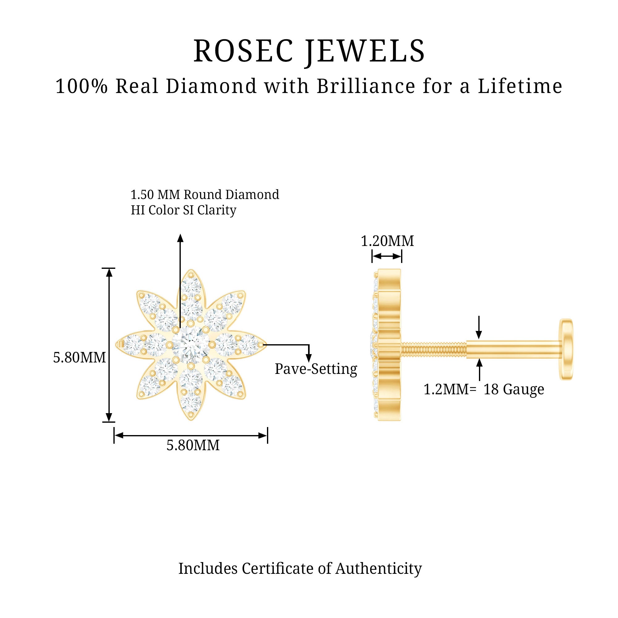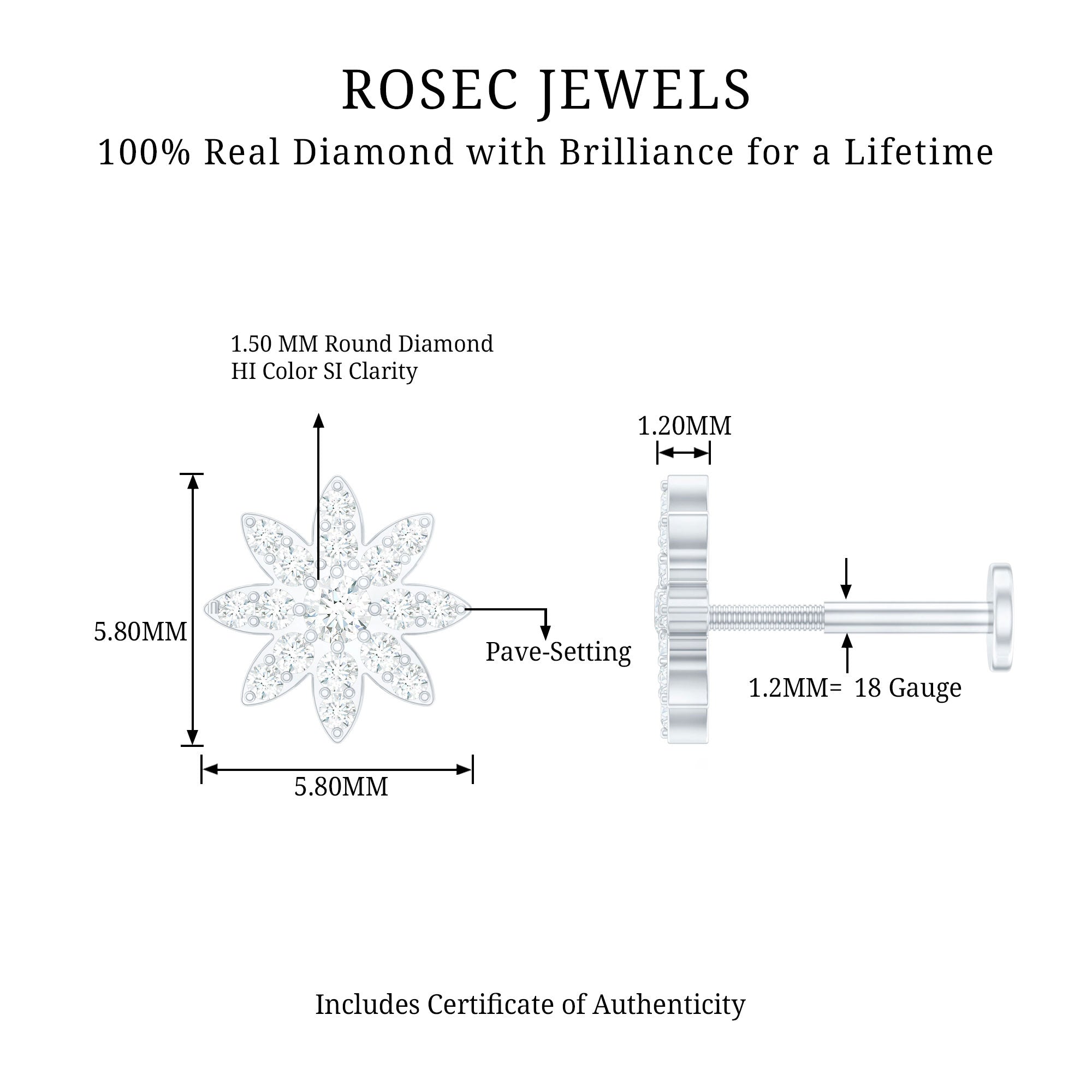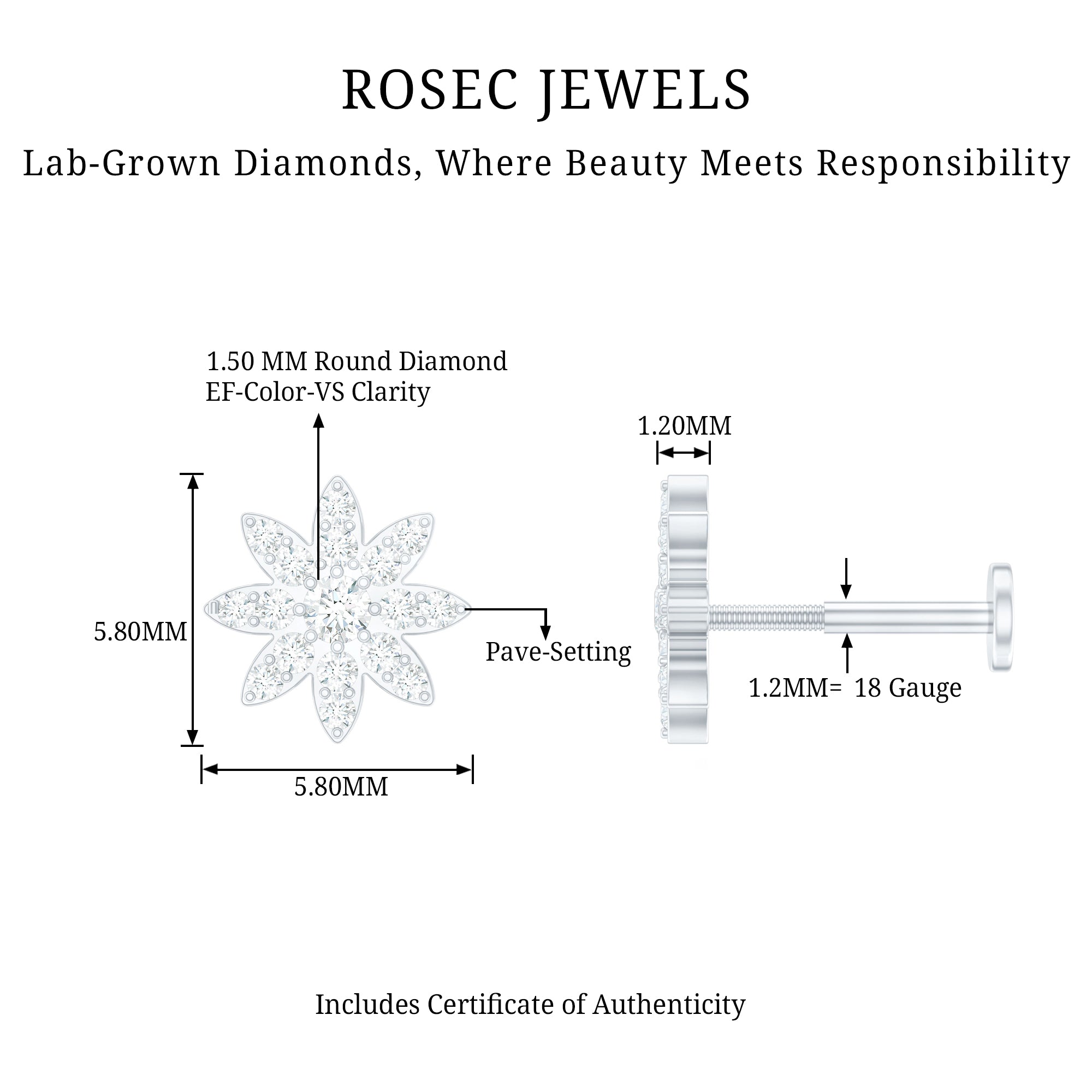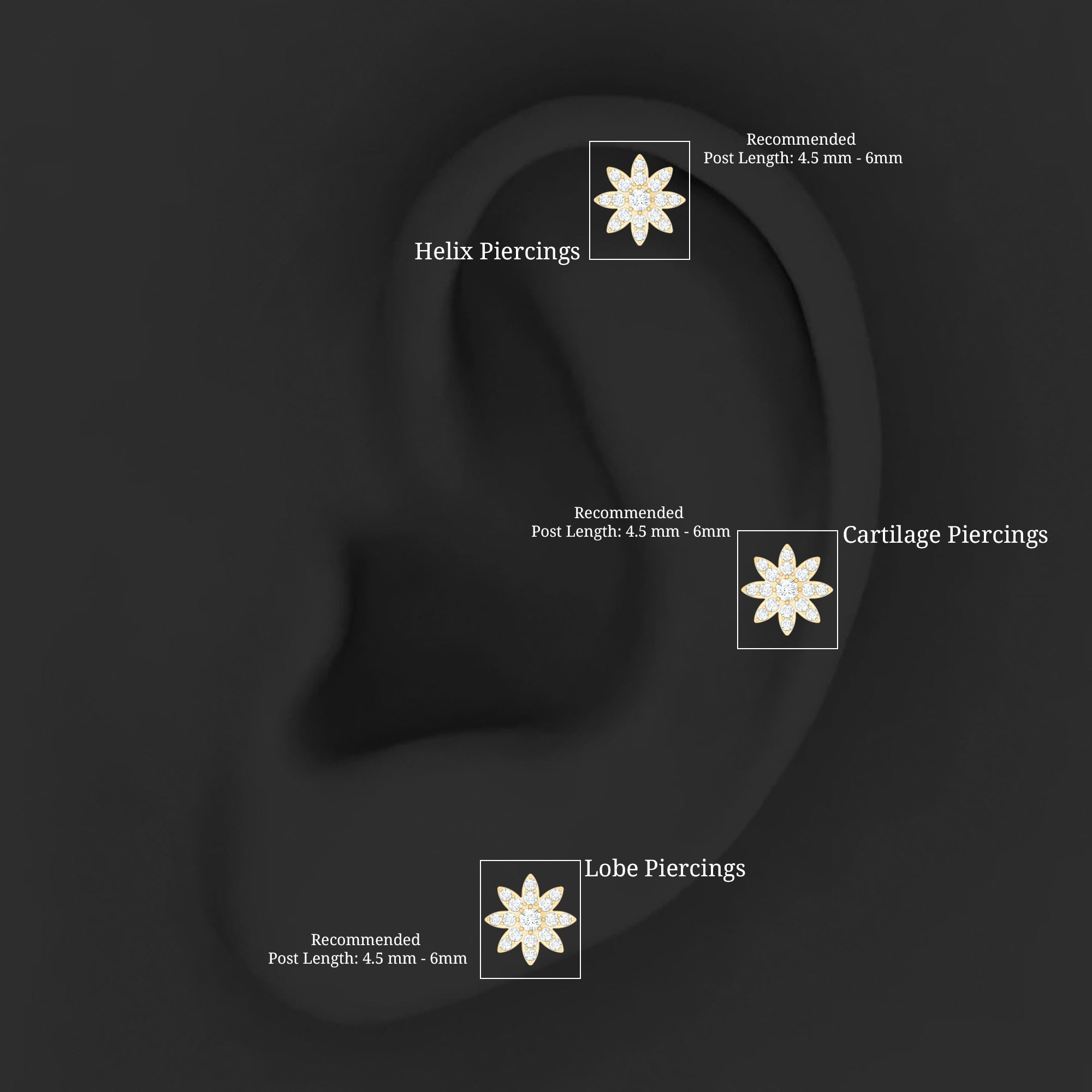 This Diamond Flower Earring is a botanical masterpiece, boasting exquisite design and craftsmanship.Adorned with shimmering diamonds that is encrusted on petals, this earring exudes timeless charm.You can wear this Diamond Earring on the Conch, Helix, Cartilage, Tragus, and Upper Lobe, it adds a touch of natural beauty to your unique style.This Floral Earring is ideal for any occasion, it elevates your look. You can style this stunning earpiece with casual or formal outfits.
