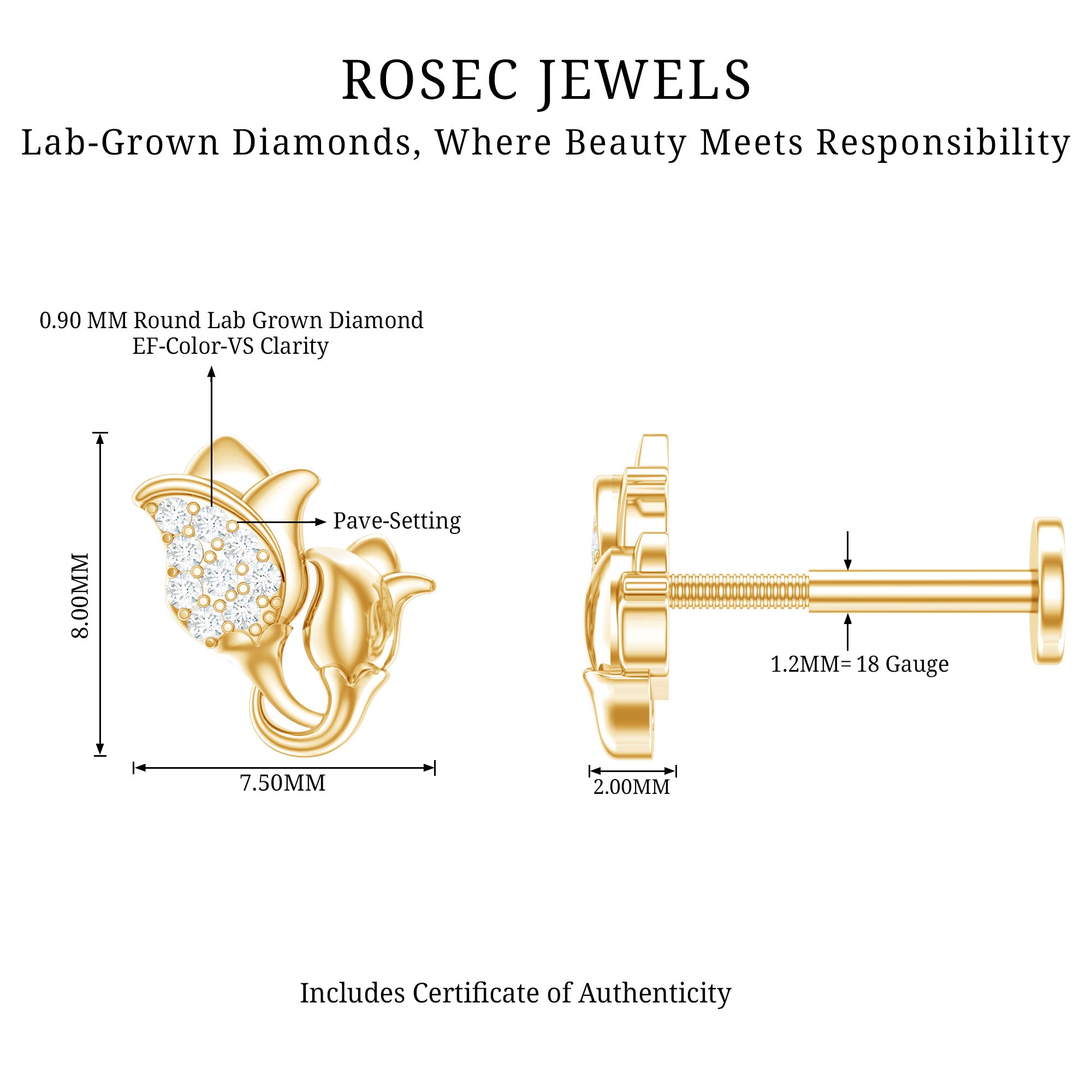 Modern and playful, this Diamond Floral Earring is the elegance you’ve waited for. Bejeweled with Round Diamonds in Pave Setting.Ideal for your Helix, Cartilage, Tragus, Conch, or Upper Lobe Piercing, this Diamond Earring is an expression of incredible charm that seamlessly complements your casual, formal, and party attire. Capture attention with every turn. Surprise your beloved wife with this stunning Diamond Helix Earring – a perfect anniversary, birthday, or Mothers Day gift. Anticipate her priceless reaction as she receives a symbol of love that matches the radiance of her spirit.