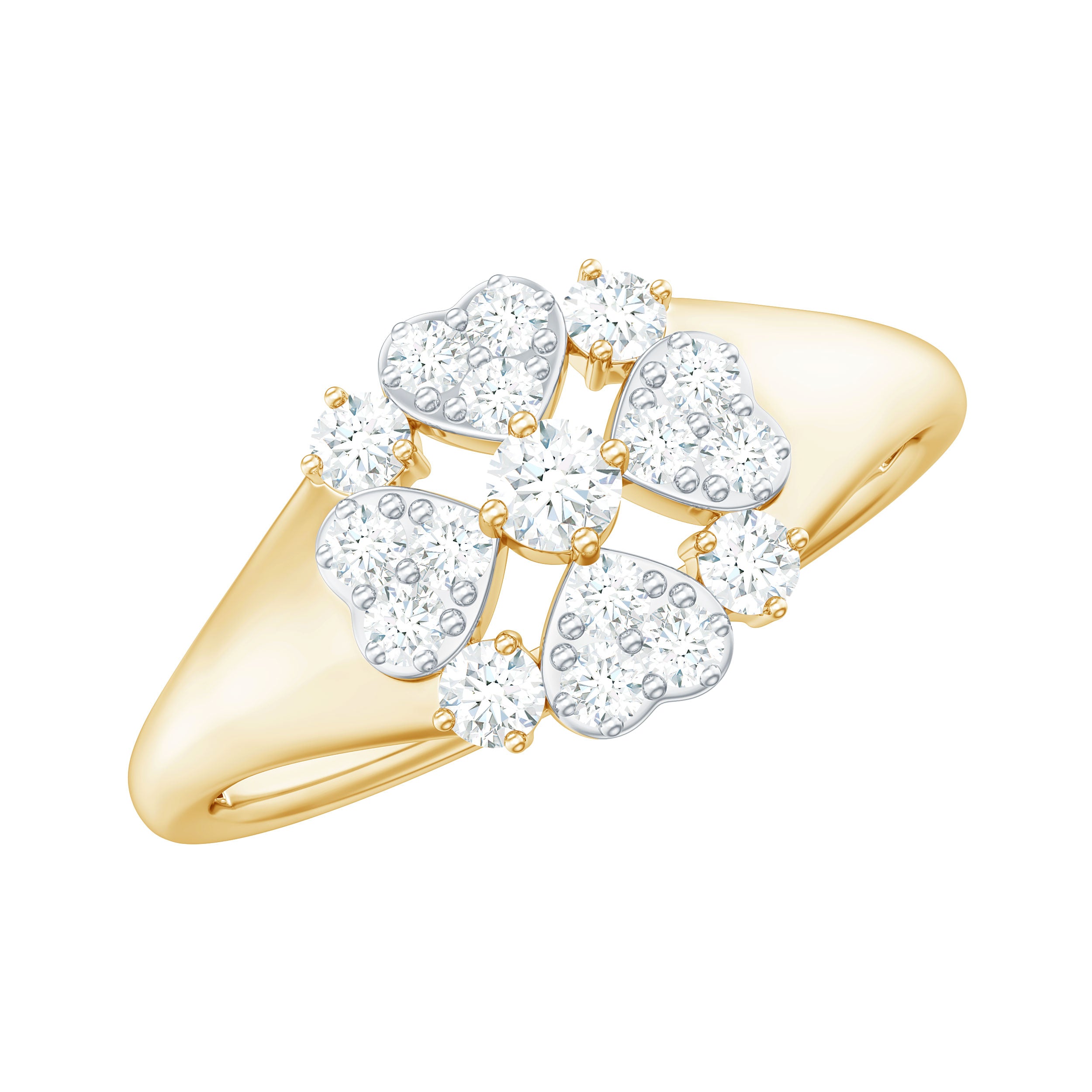Envision a love story captured in a single, breathtaking Diamond Heart Ring, which is a whispered promise of everlasting love. This stunning piece features a delicate floral pattern, a testament to enduring romance, crafted from Round brilliant cut Diamonds in an Illusion Setting. Each petal is meticulously crafted with a masterful technique that enhances the Diamonds brilliance and creates the illusion of a Heart Shape design, also mimicking the floral design. As the essence of a love that blossoms and grows, this one-of-a-kind Heart Shaped Engagement Ring is a true masterpiece that makes the entire floral design a constant reminder of the affection you share. Beautiful and eternal, this Diamond Cluster Ring is a tribute to natures perfect beauty, which continues to flourish. As an emblem of commitment, this Flower Engagement Ring has an aesthetic choice which captures the magic of a love that is forever in bloom. Its design marries classic romance with modern artistry, making it a unique and unforgettable symbol of your shared story.