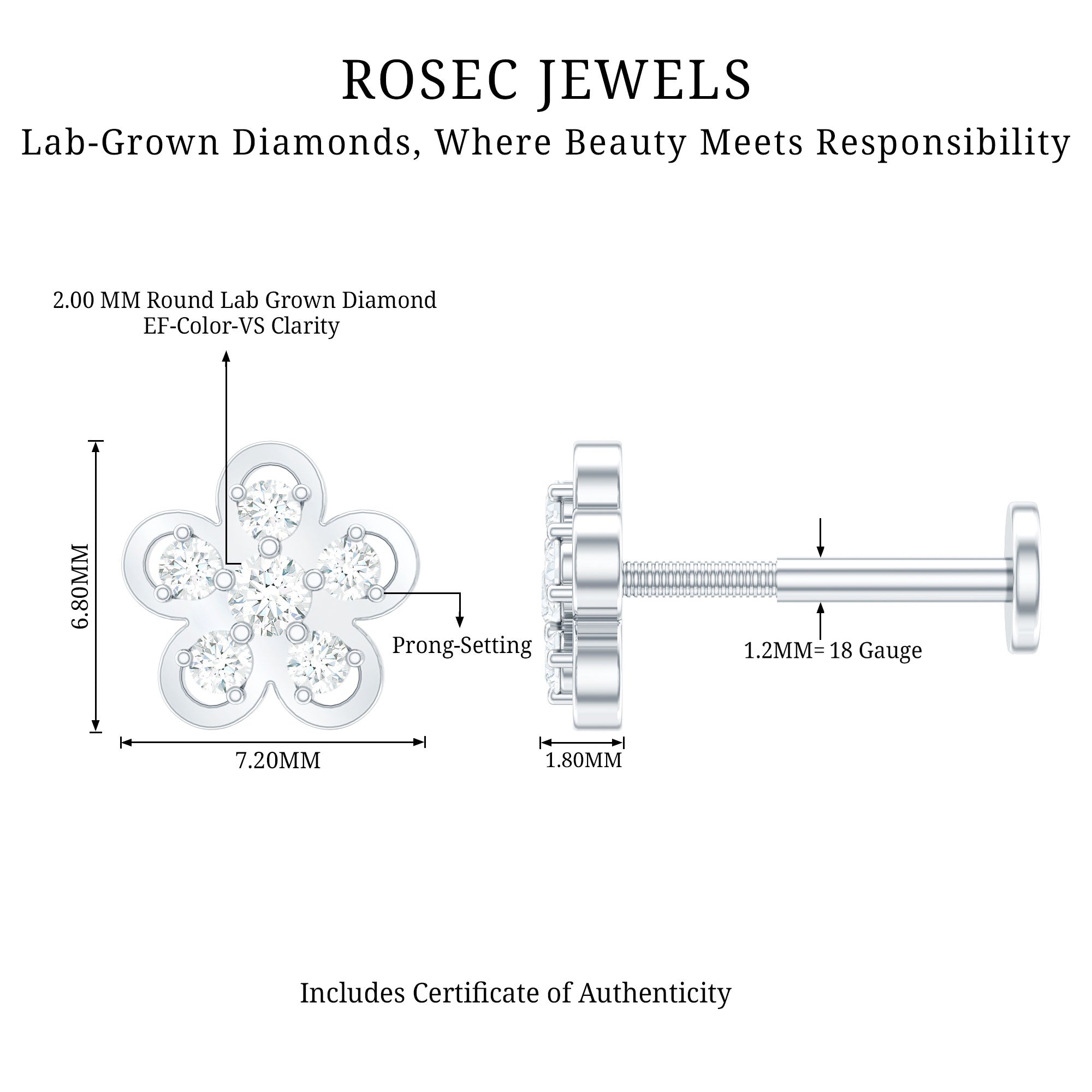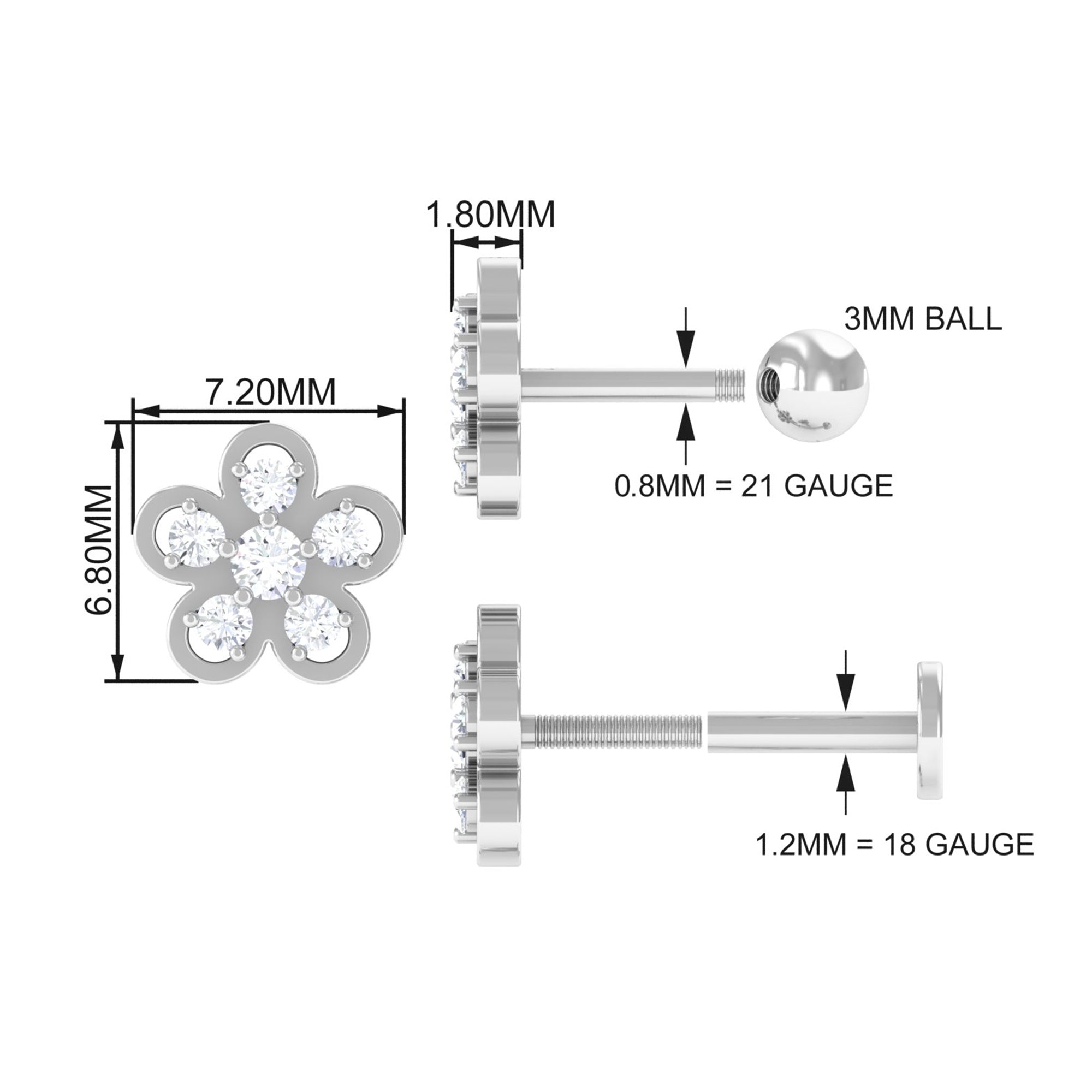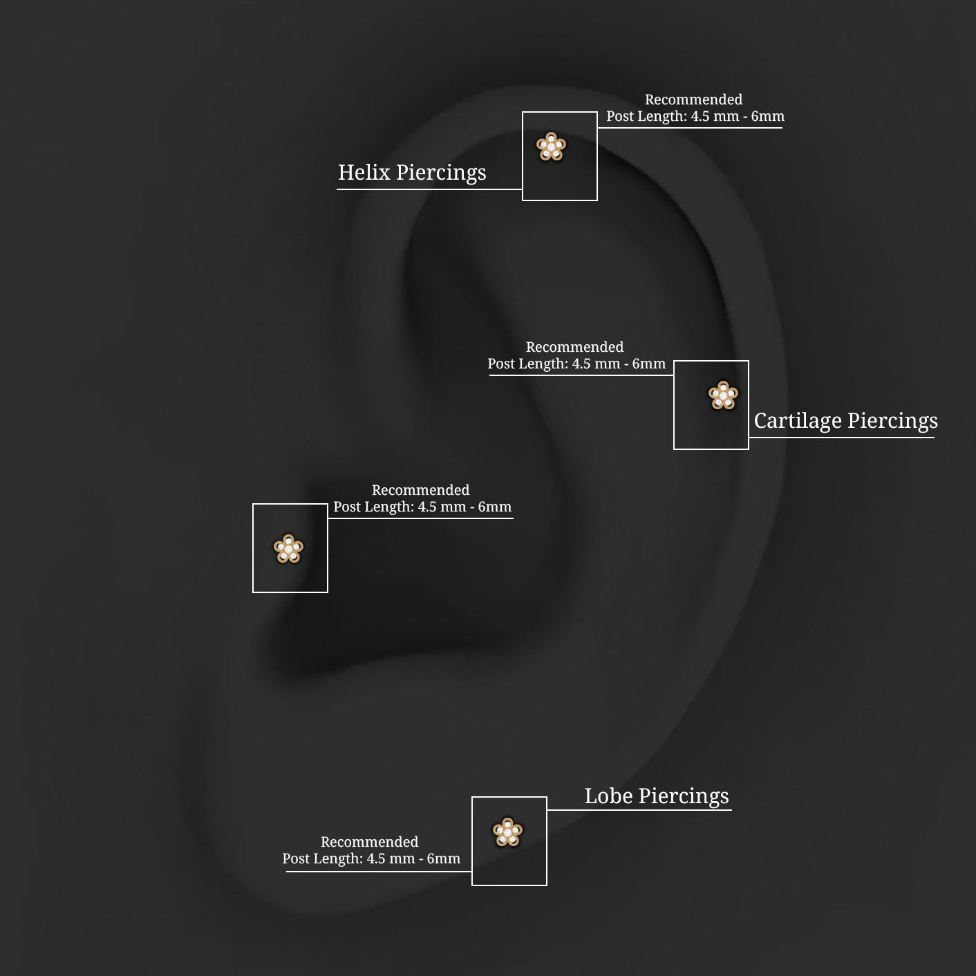 Perfectly adorable! Our Diamond Floral Earring features glistening Round Shape Diamonds delicately arranged in Prong Setting, on a captivating flower design. This Helix Piercing Earring stands out as a remarkable piece of jewelry, capable of transforming any mundane outfit into a vibrant and more appealing ensemble with its distinctive vibe. Suitable for Helix, Cartilage, Upper Lobe, and Conch Piercings, this Diamond Floral Earring offers versatile styling options. Elevate your anniversary celebration by gifting your beloved a Diamond Earring that is sure to capture her heart with its timeless beauty.