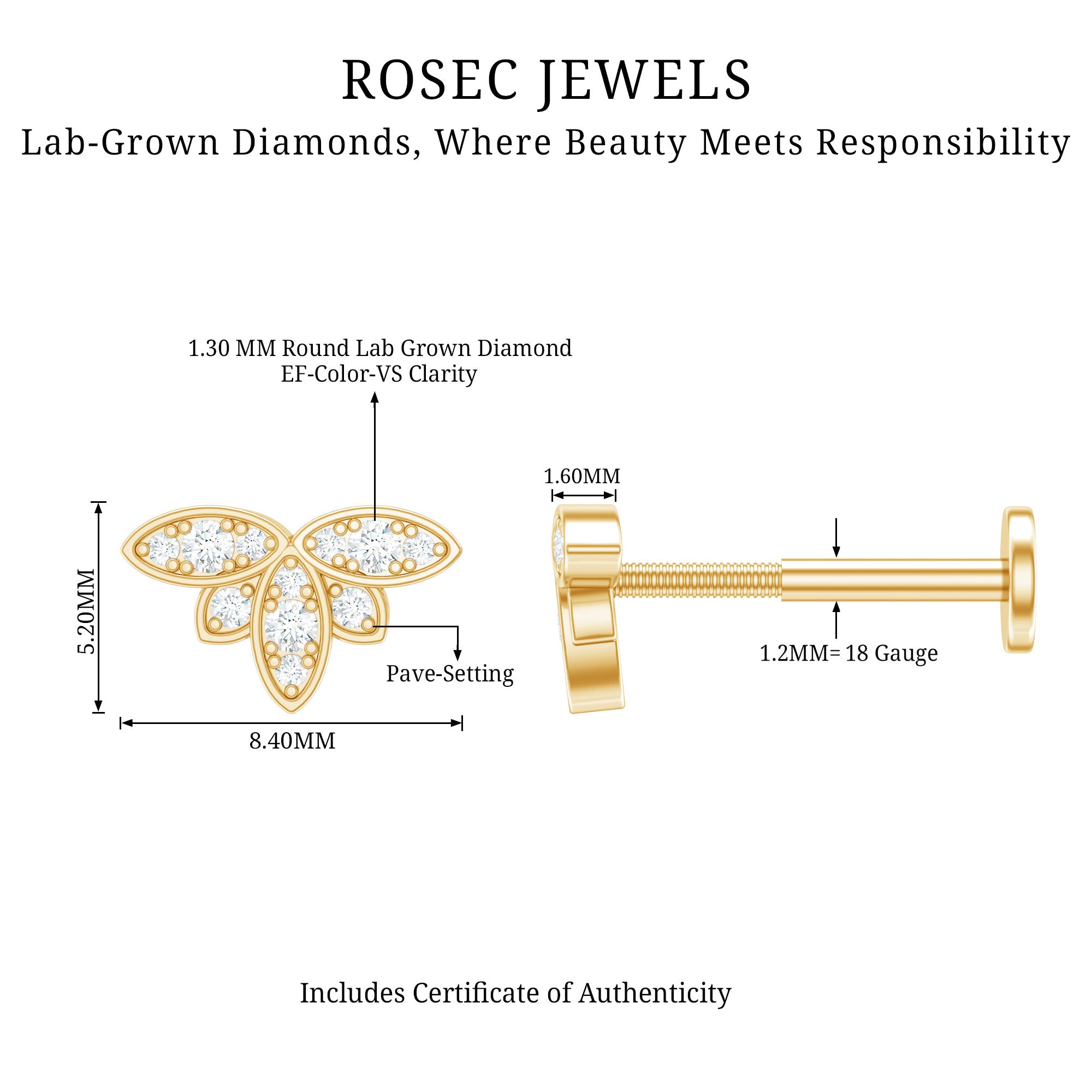 This charming and stunning Diamond Floral Earring is embellished with Round Shape Diamonds studded on a floral design. Whether you wear this Diamond Earring alone or stack it up with your other ear piercing jewelry, this earring is gonna shine forever.You can style this Diamond Flower Earring in your Helix, Cartilage, or Upper Lobe Piercing. Worried about falling off? Fret Not, the Flat Back Closure will keep it all intact with your piercing. No need to take it off, even while sleeping. If you want to add an instant touch of glamour to your ear stack, go with this Floral Earring.