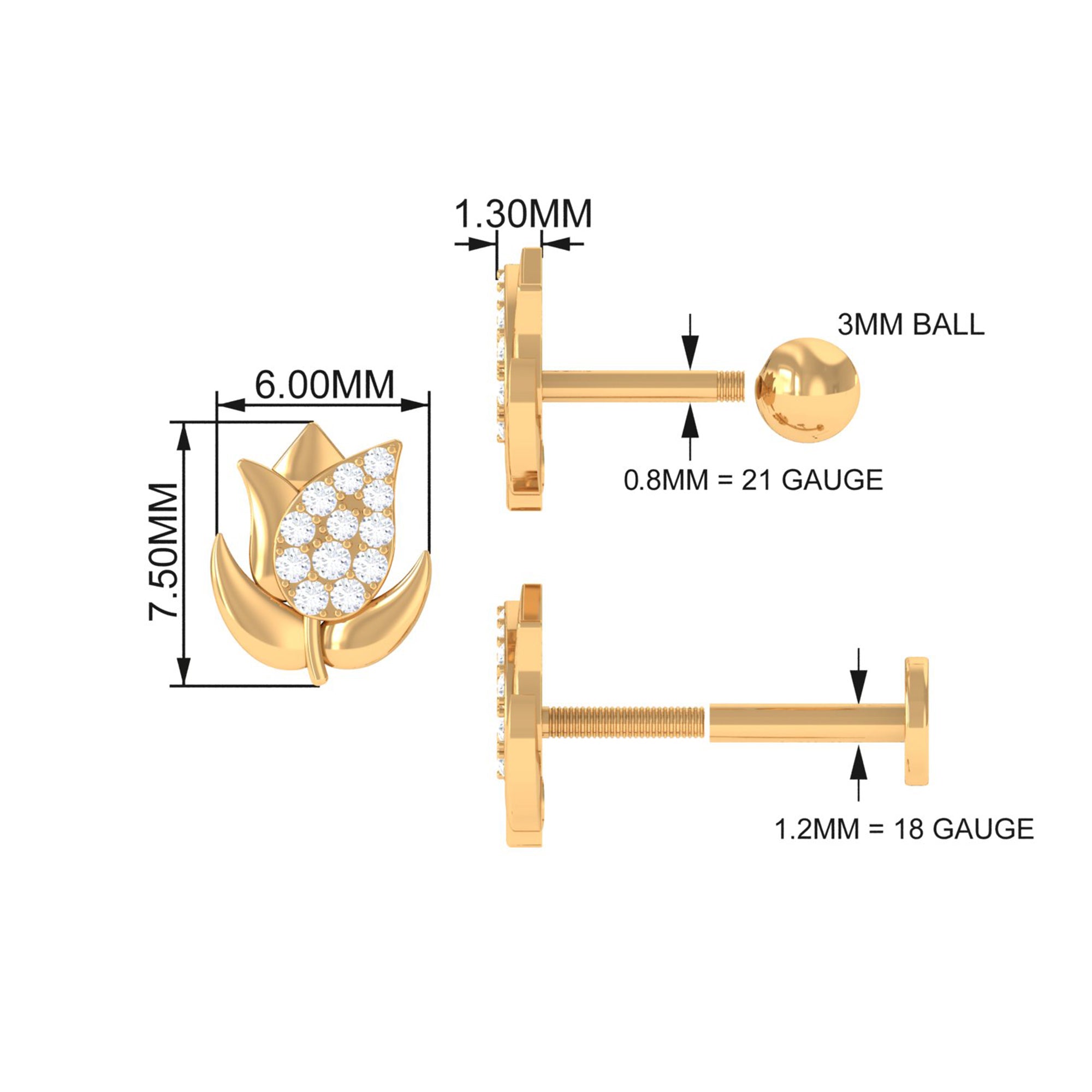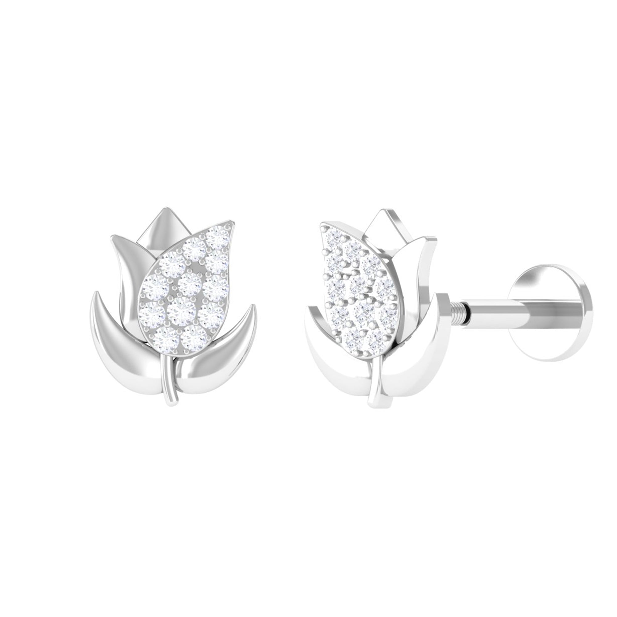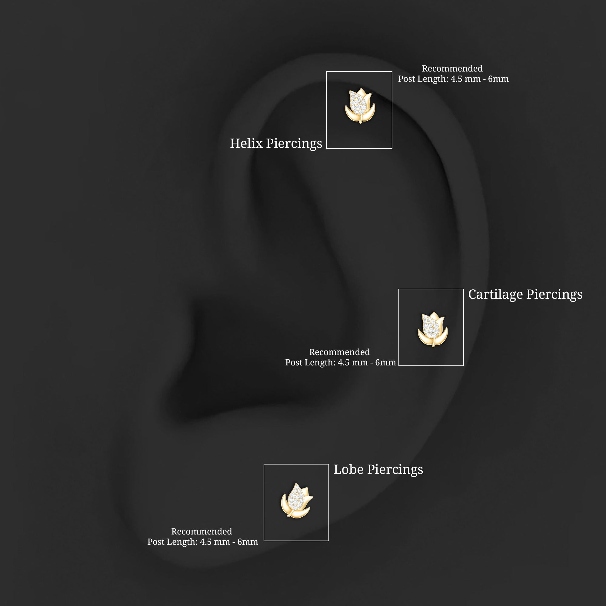 Want to steal the attention of the crowd? This stunning Diamond Tragus Earring is the perfect way to do so. The earring features Diamonds encrusted in a leaf design, making this earpiece more attractive and appealing to look at.You can wear this Tragus Earring on your multiple piercings including, Tragus, Helix, Cartilage, or Upper Lobe.Pair this earring with your attire to get yourself highlighted. This Diamond Lotus Earring can be the perfect gift for your special ones.