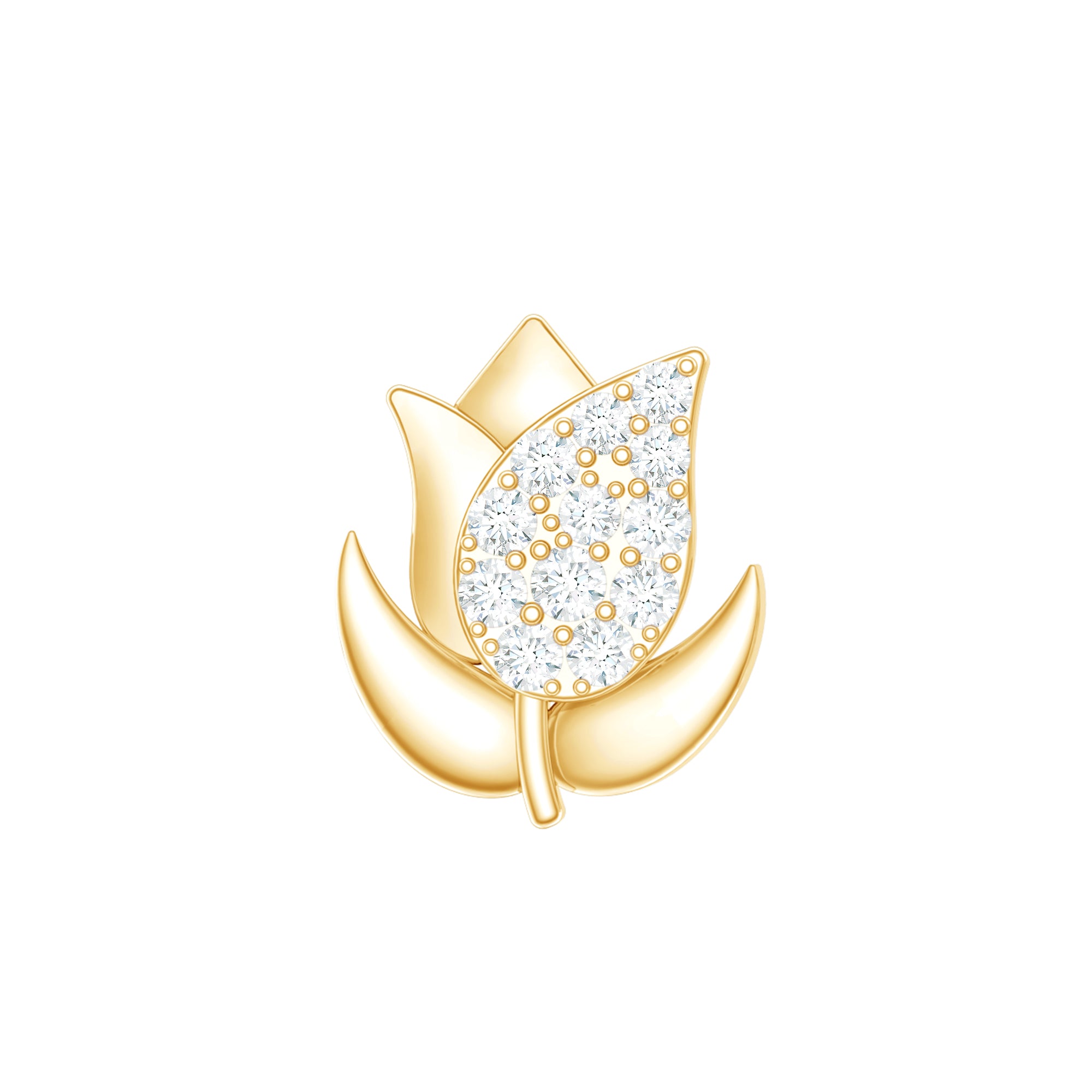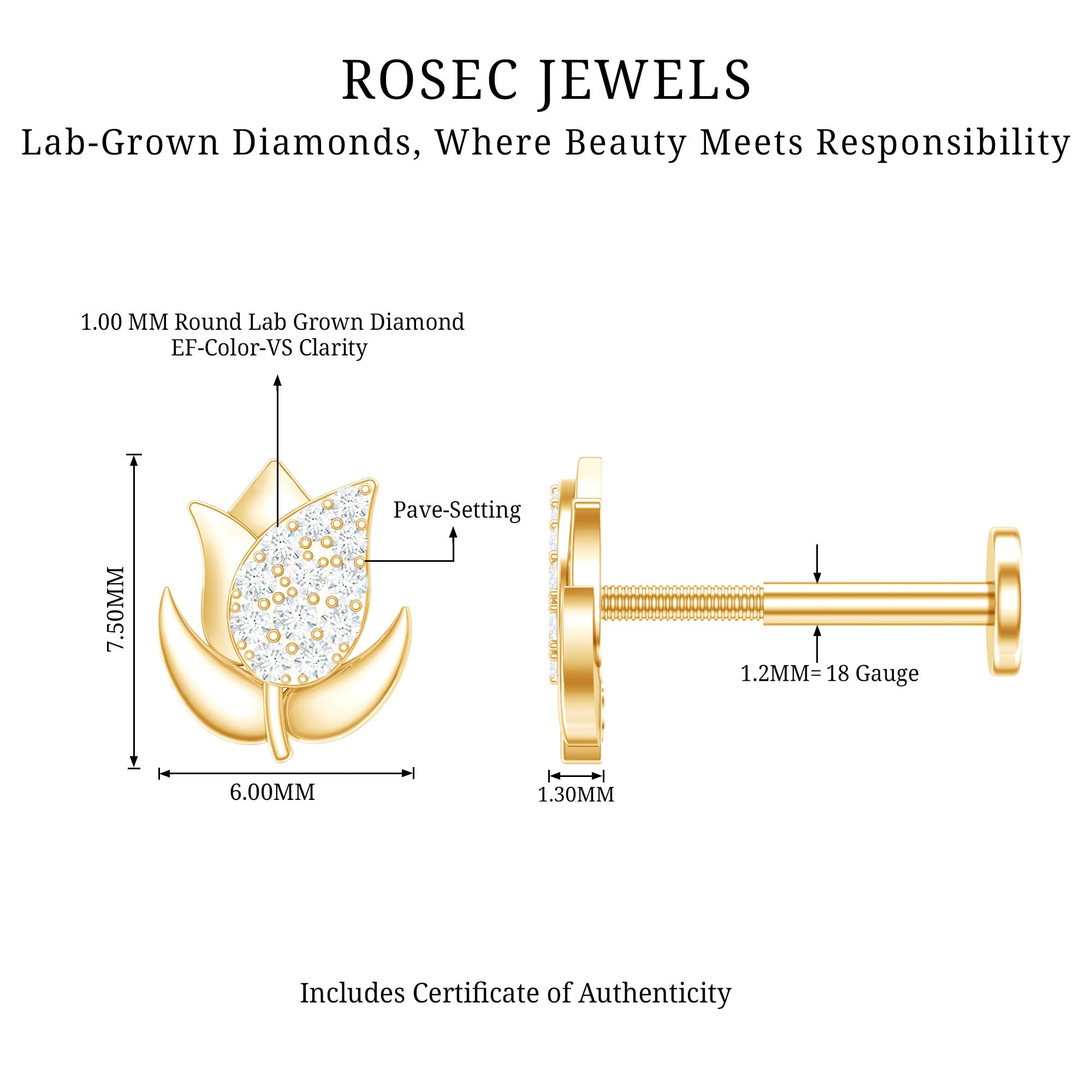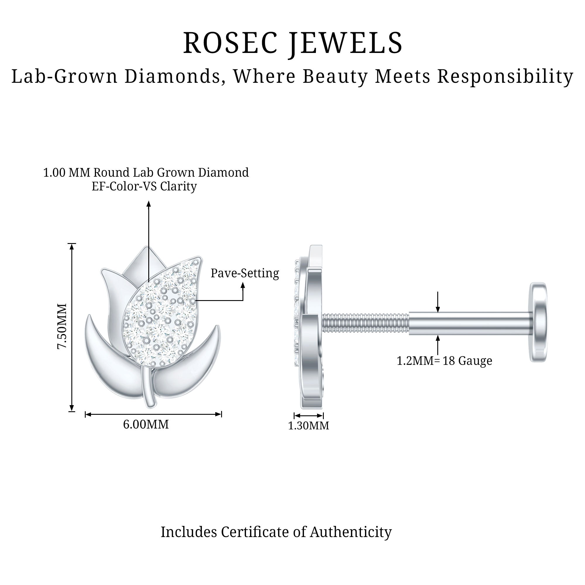 Want to steal the attention of the crowd? This stunning Diamond Tragus Earring is the perfect way to do so. The earring features Diamonds encrusted in a leaf design, making this earpiece more attractive and appealing to look at.You can wear this Tragus Earring on your multiple piercings including, Tragus, Helix, Cartilage, or Upper Lobe.Pair this earring with your attire to get yourself highlighted. This Diamond Lotus Earring can be the perfect gift for your special ones.