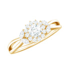 This Real Diamond Engagement Ring features a beautiful floral design, making it an ideal piece to celebrate your special day. It is a delicate and elegant piece that feels like a dream come true, inspired by the beauty of nature to create a feminine look. The ring showcases a 4 MM Round Shaped Diamond set in Claw Setting. With a Round Diamond Halo and additional Marquise Cut Stones, it resembles a delicate leaf, enhanced by a Split Shank. Crafted with great attention to detail, this Diamond Flower Engagement Ring highlights a floral motif. The intricate design paired with a timeless style makes the Diamond Halo Ring a fantastic choice, capturing the magical feelings tied to each bloom while honoring natural beauty. The HI Color SI Clarity diamond provides a unique variety of styles to elevate your appearance. Beautifully packaged in a signature jewelry box, this Split Shank Engagement Ring is ready to be gifted and cherished. Let your love shine with a sparkle that is gentle on the environment and perfect for your happily ever after. This Flower Ring exudes luxury and elegance, making it an absolutely stunning choice.