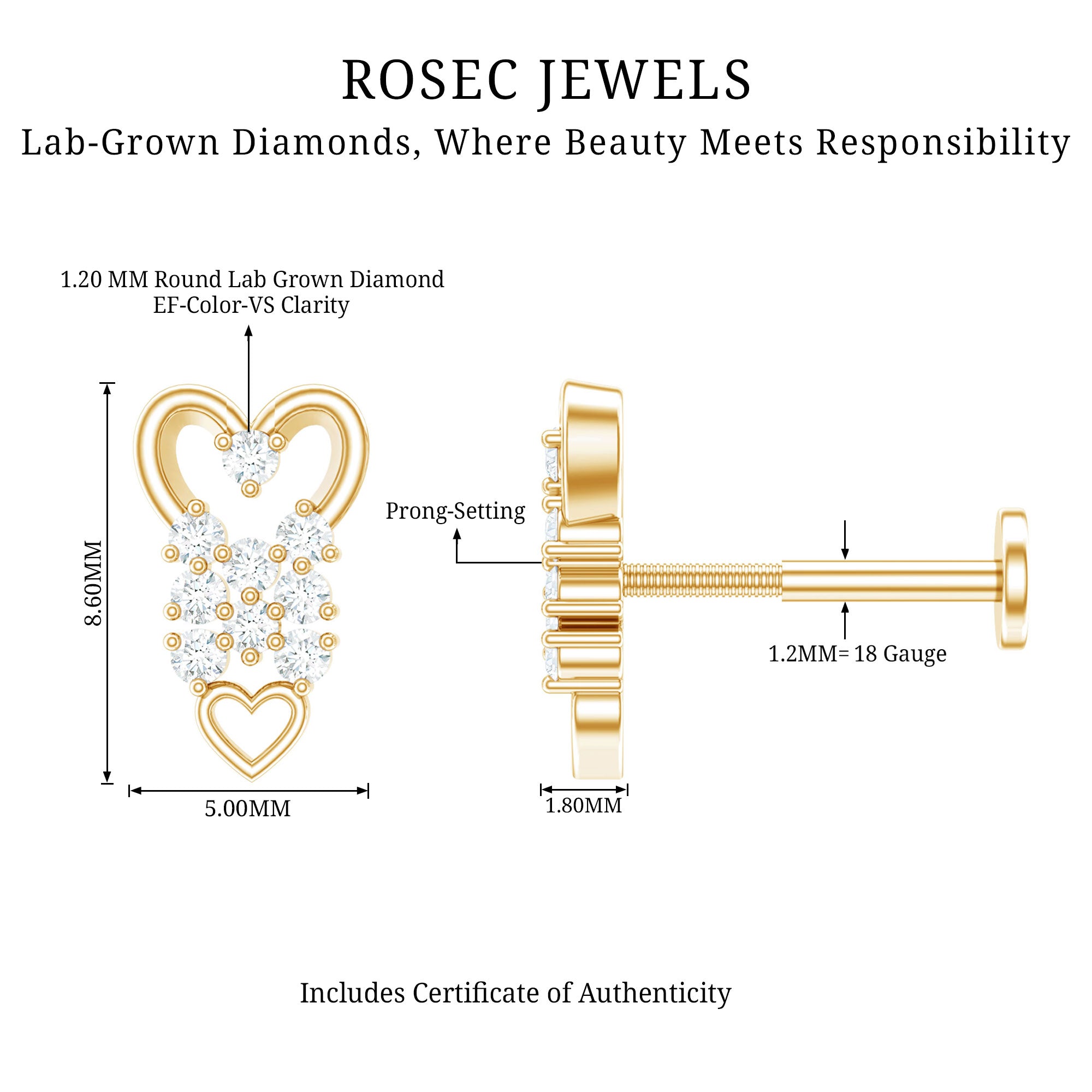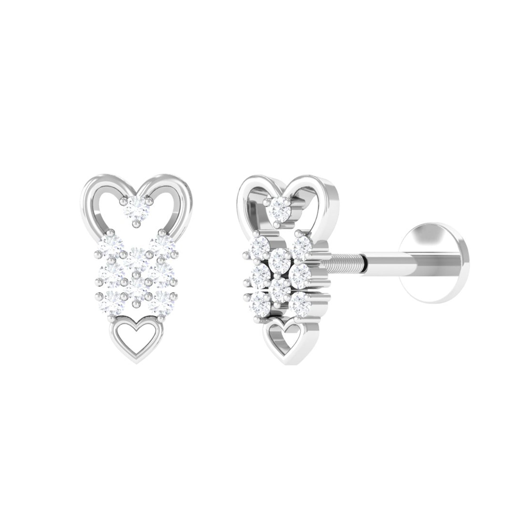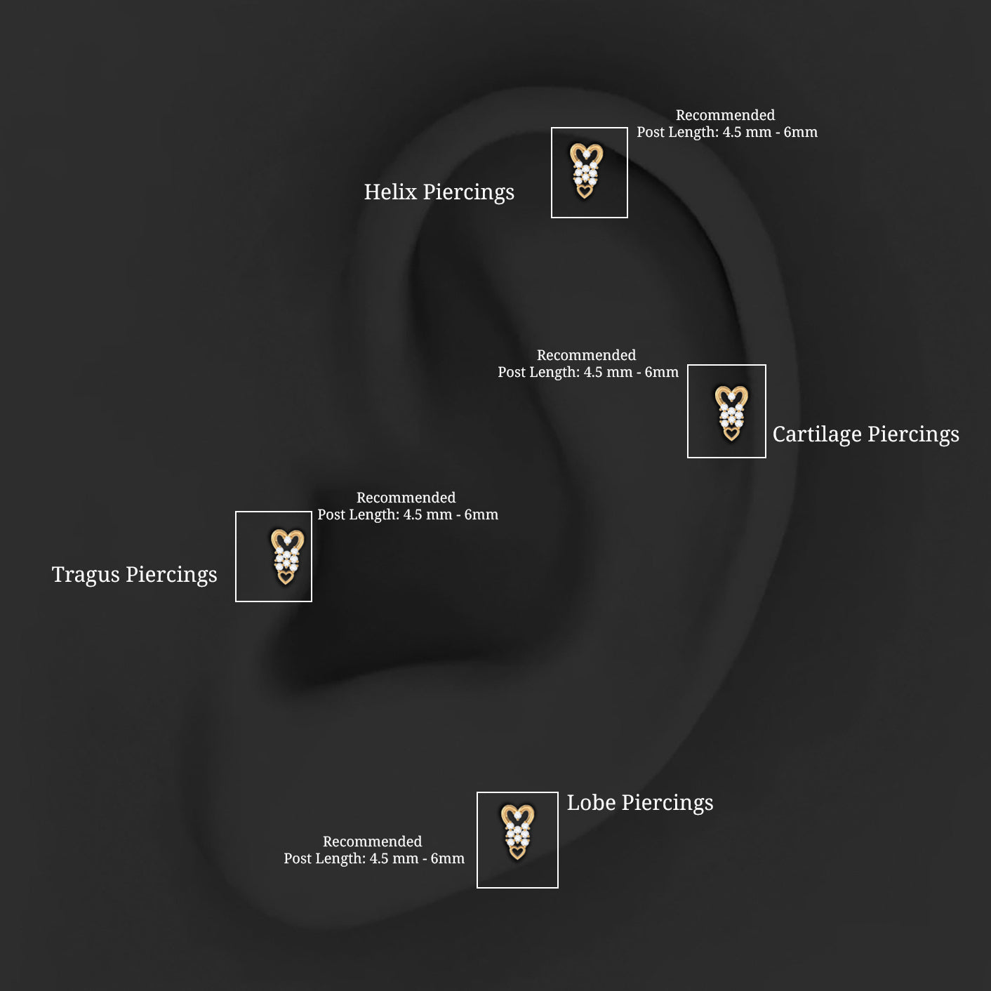 So cute, the Diamond Heart Earring is adorned with a Heart Shape Diamond secured by Prong Setting.Experience comfort at its finest with the simple back style featuring a flat back, ensuring no pokes or jabs, making it perfect for those quick naps or a full night of beauty sleep.Versatile and stylish, this Diamond Earring is designed to complement multiple piercings like Helix, Cartilage, Tragus, Conch, or Upper Lobe Piercing.Created for 24/7 wear, this heart-shaped beauty is your ideal companion for an active lifestyle. Whether you are working out, traveling, or engaged in your daily activities, wear it with confidence and radiate elegance effortlessly.