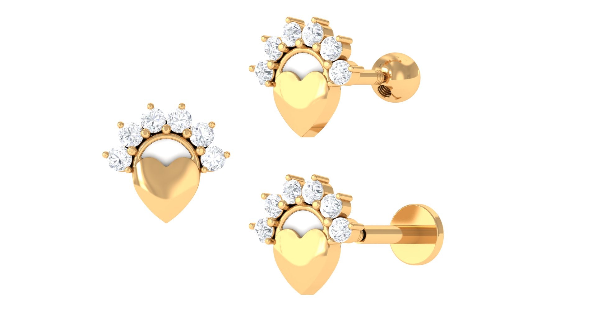 Everyone will be astonished when they will witness you flaunting this Diamond Heart Conch Earring. Bejeweled with Round Diamond in Prong Setting studded on the top of a unique heart design for an eye-catching appearance. This Diamond Earring is perfect to be worn on your Helix, Cartilage, Tragus, Conch, or Upper Lobe Piercing. The Piercing Earring is best known for its incredible charm that will complement your casual, formal, and party attire beautifully. Grab this Diamond Helix Earring for your beloved wife as an anniversary, birthday, or mothers day gift, and wait for her priceless reaction.