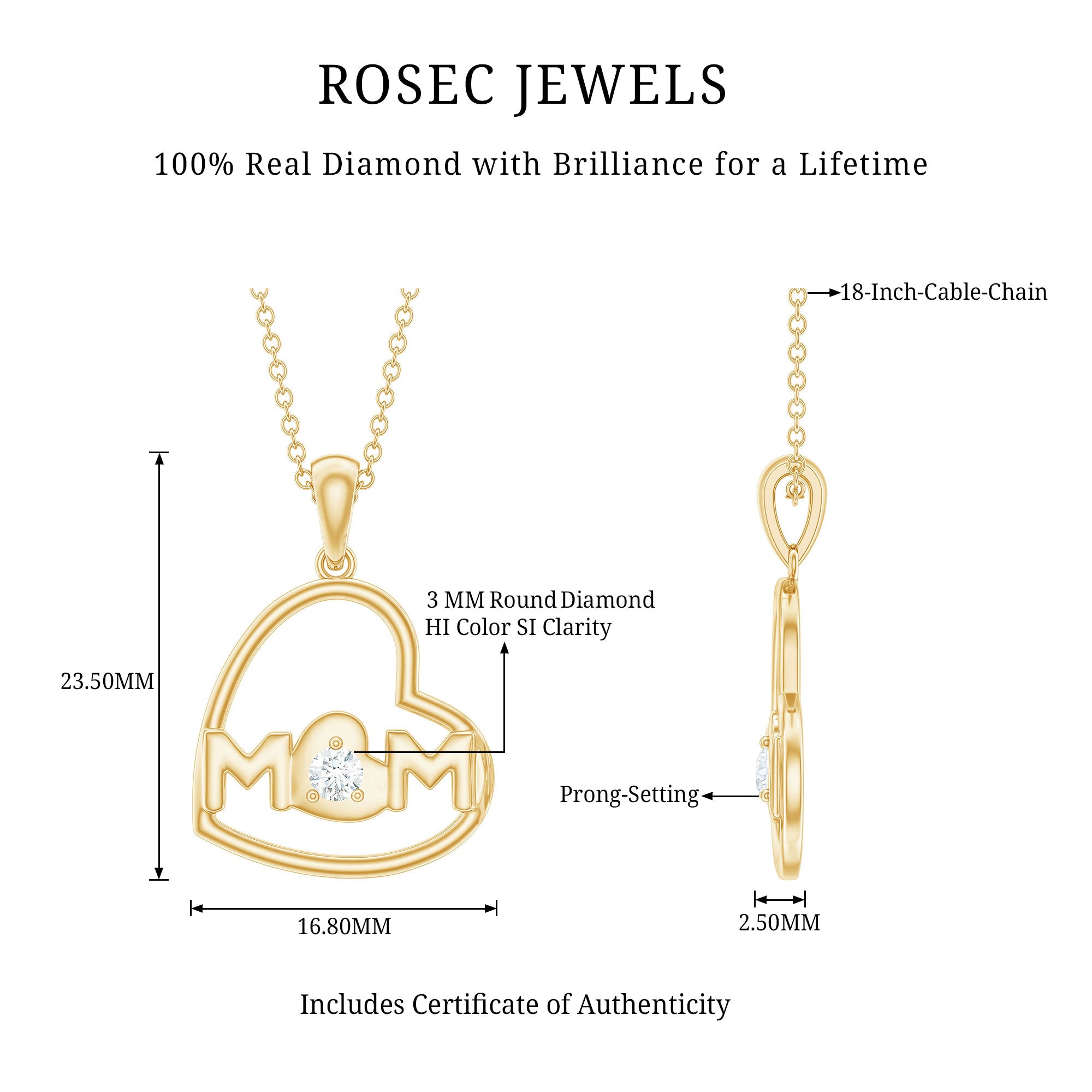 Present your mother with a beautiful token of love in the form of a gold heart pendant, featuring a tilted open heart frame inscribed with the word Mom in a hammered style. This stunning pendant is also adorned with a sparkling round diamond at its center, adding an extra touch of elegance to the already exquisite design. Its a heartwarming gift that she will cherish for years to come.