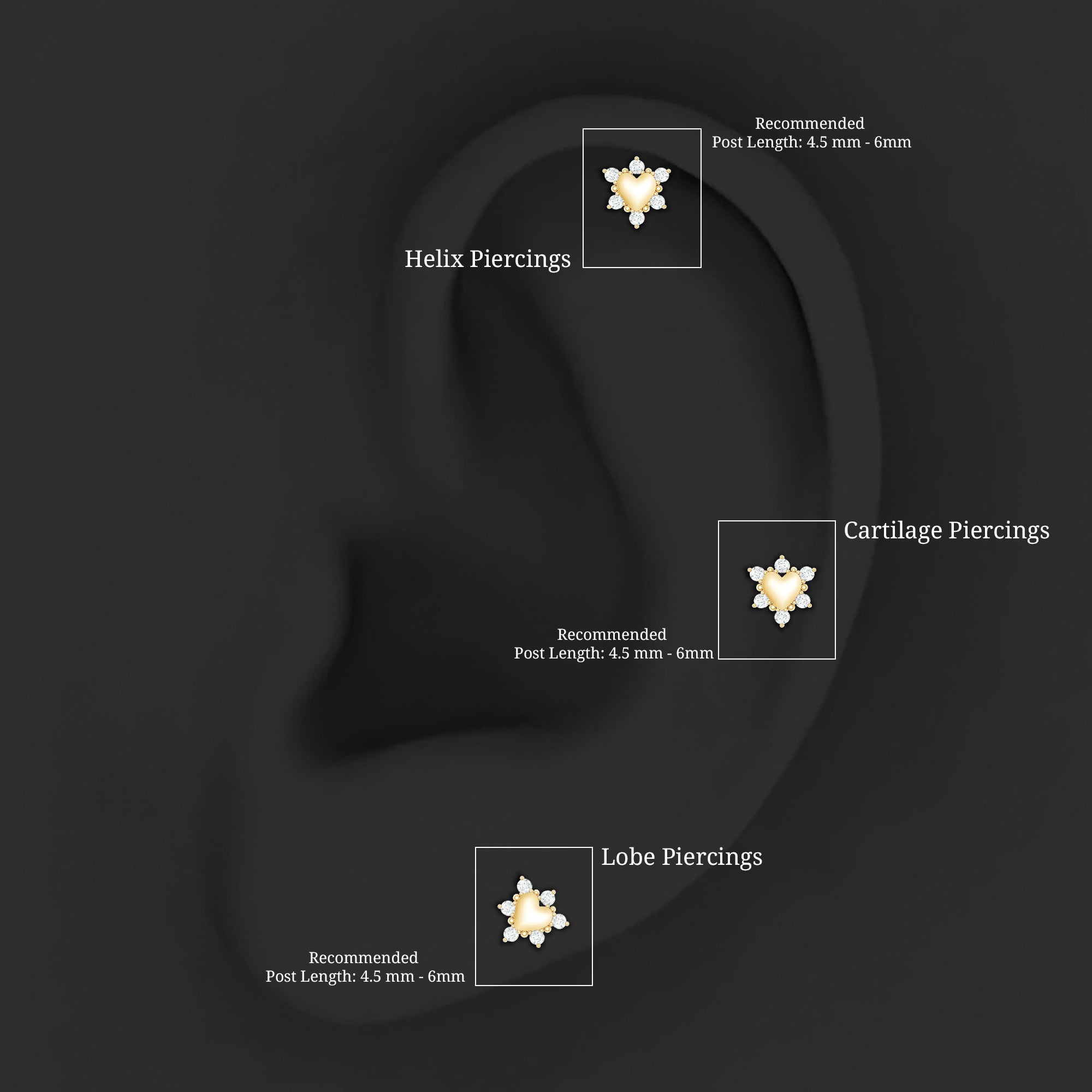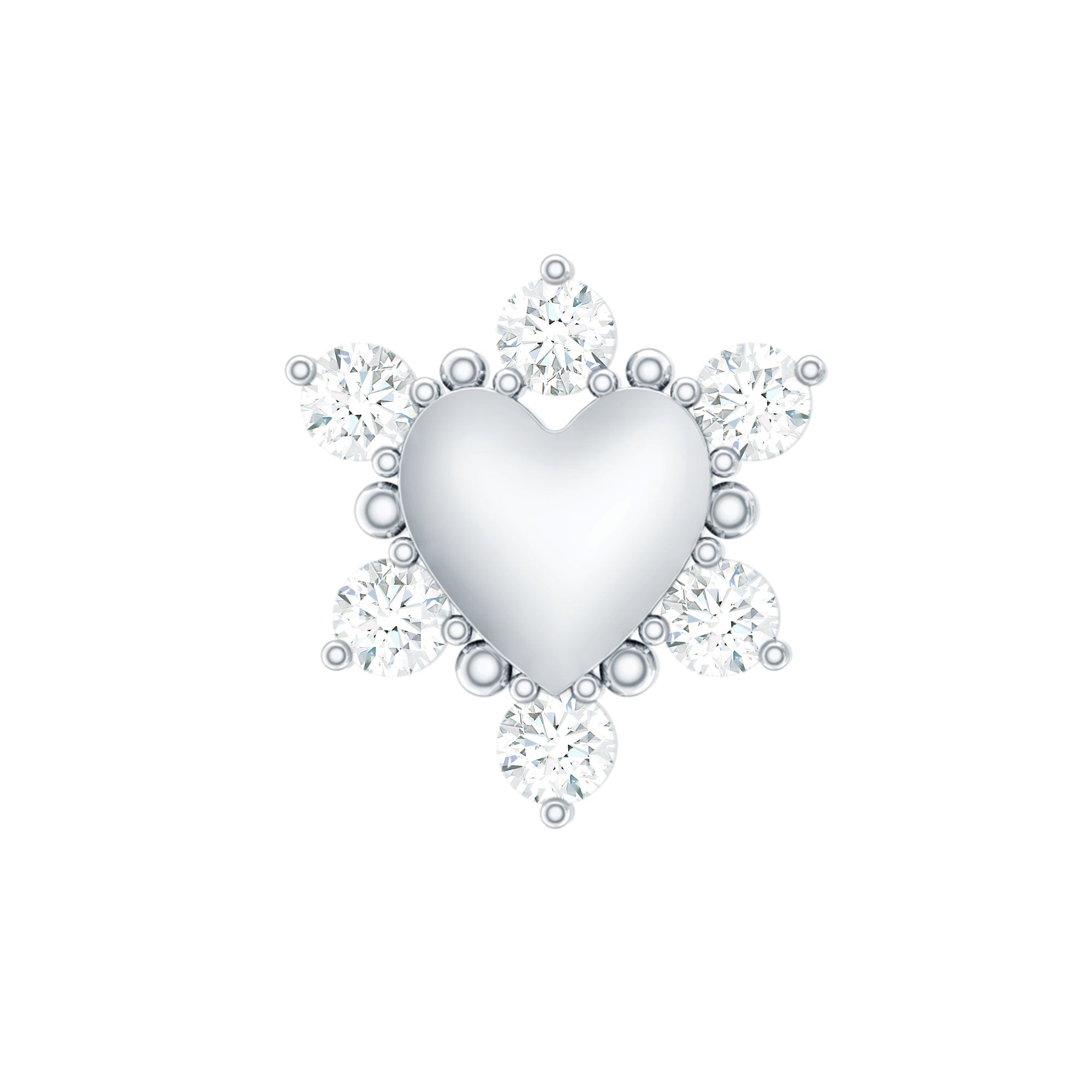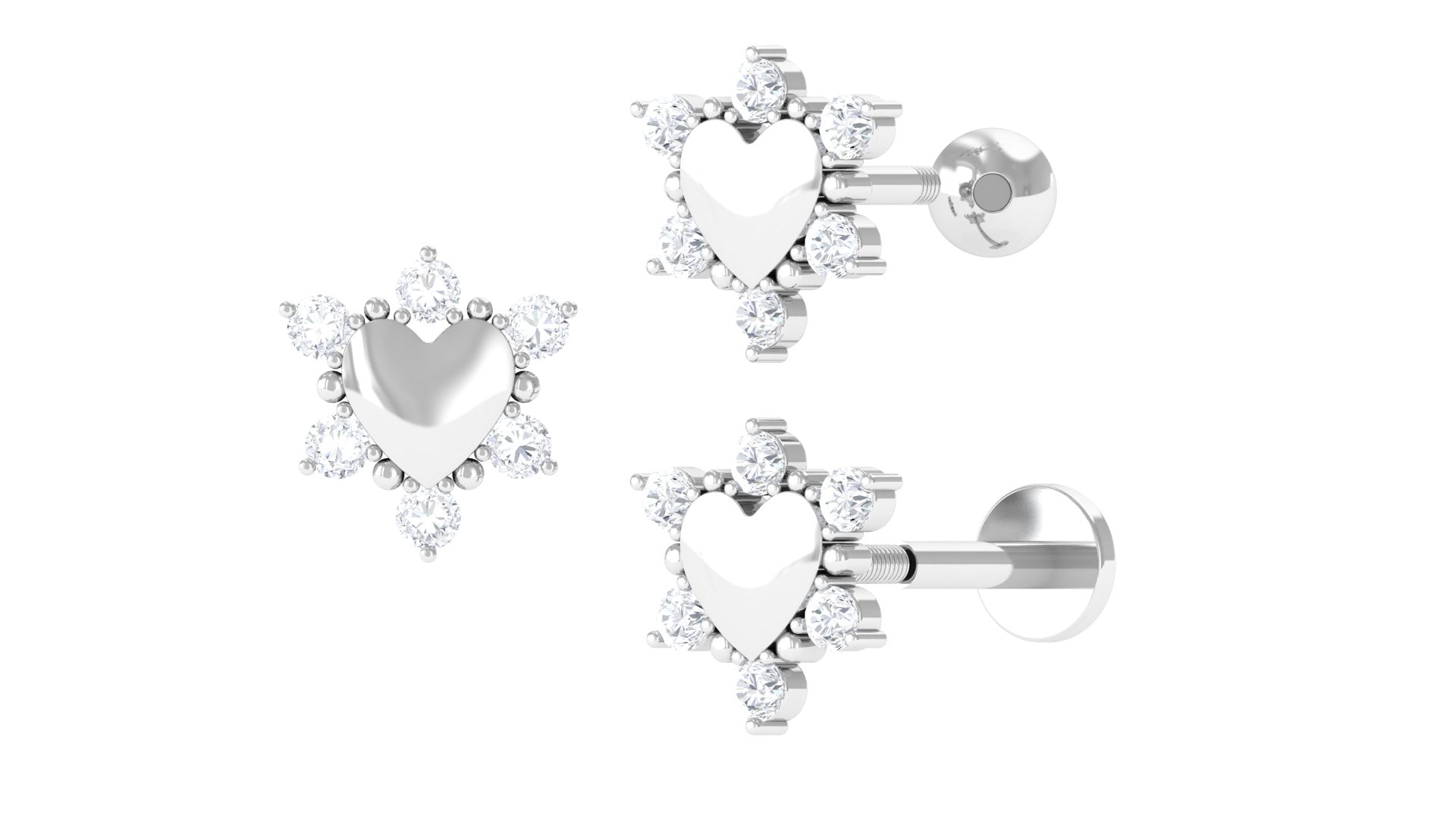 You will find reasons to style this stunning Diamond Heart Earring with your special and dressy attire. Showcasing Round Shape Diamond around the heart shape design, secured by Prong Setting. The Piercing Earring is fashioned in Hallmarked Metal and will shine bright and bring the spotlight right on you. Wear this Flat Back Earring on your Cartilage, Conch, Helix, or Upper Lobe Piercings and create not-so-ordinary looks. Give the mesmerizing Diamond Earring to someone close to your heart as it makes a precious gift for her.