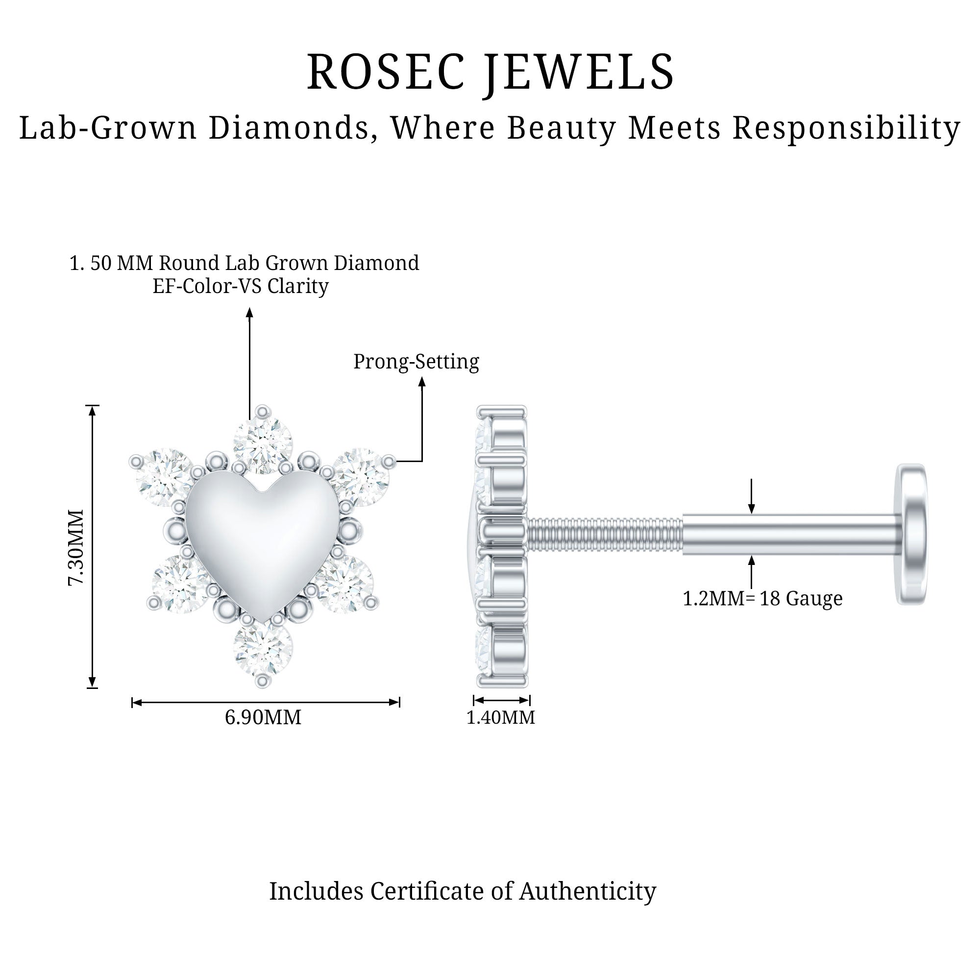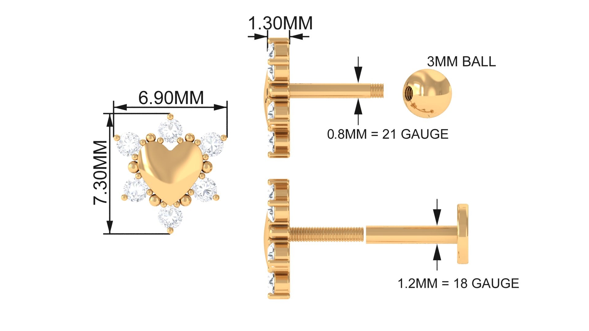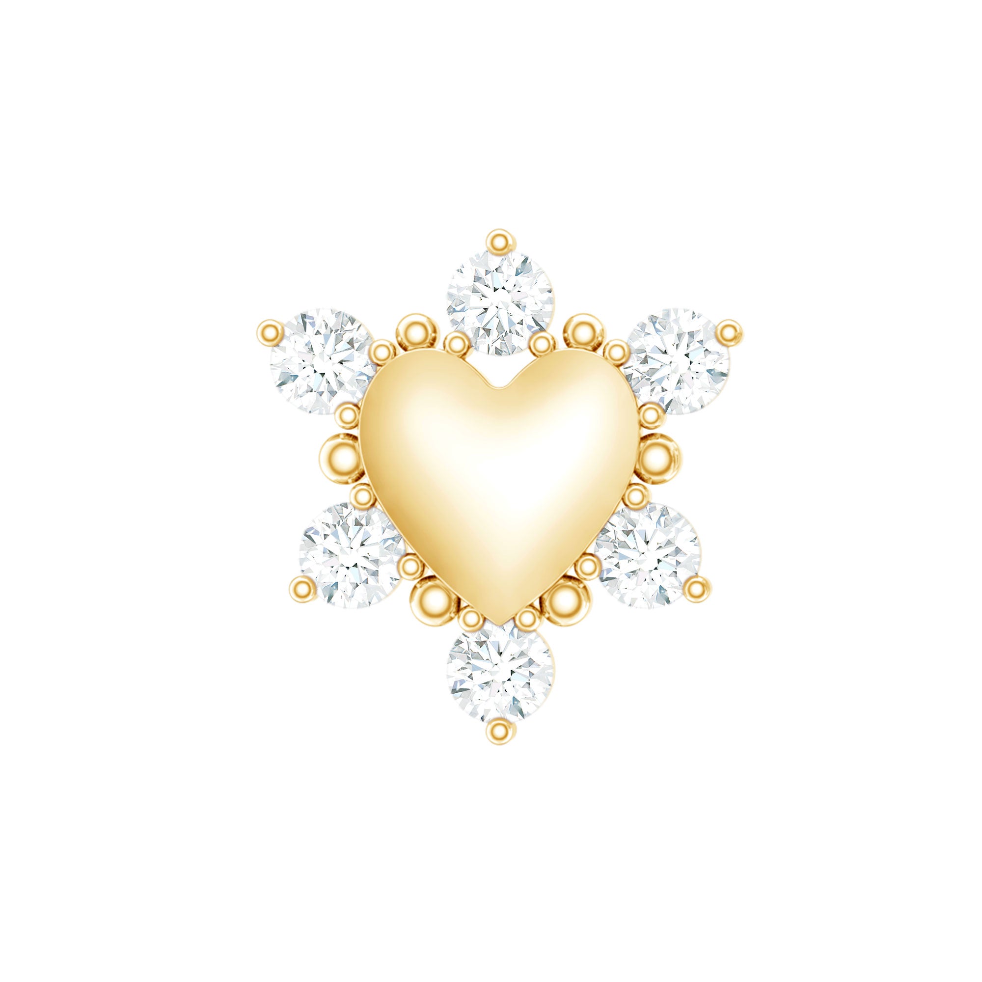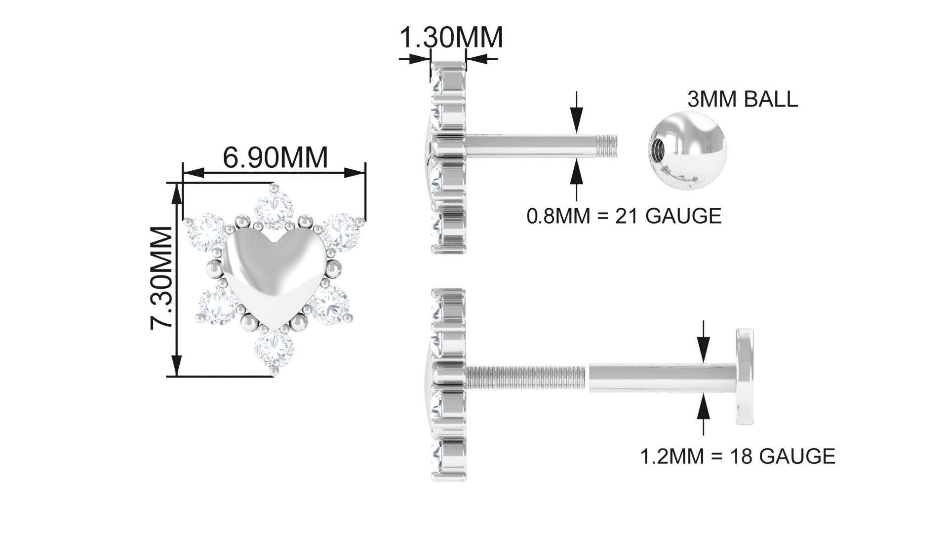 You will find reasons to style this stunning Diamond Heart Earring with your special and dressy attire. Showcasing Round Shape Diamond around the heart shape design, secured by Prong Setting. The Piercing Earring is fashioned in Hallmarked Metal and will shine bright and bring the spotlight right on you. Wear this Flat Back Earring on your Cartilage, Conch, Helix, or Upper Lobe Piercings and create not-so-ordinary looks. Give the mesmerizing Diamond Earring to someone close to your heart as it makes a precious gift for her.