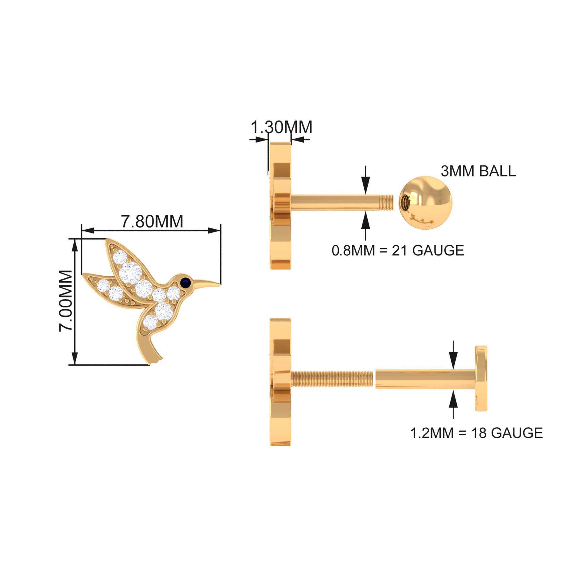 Love a playful and chic look in your earring stack? Then you need this Diamond Hummingbird Earring.This earring features a cute hummingbird bird design, encrusted with sparkling Diamonds, making this earpiece more unique and special.Grab this Piercing Earring to create the ear stack of your dreams! This earring will be ideal for your Helix, Cartilage, Conch, or Upper Lobe Piercing. Surprise your special ones with this Diamond Earring to make them special and loved.