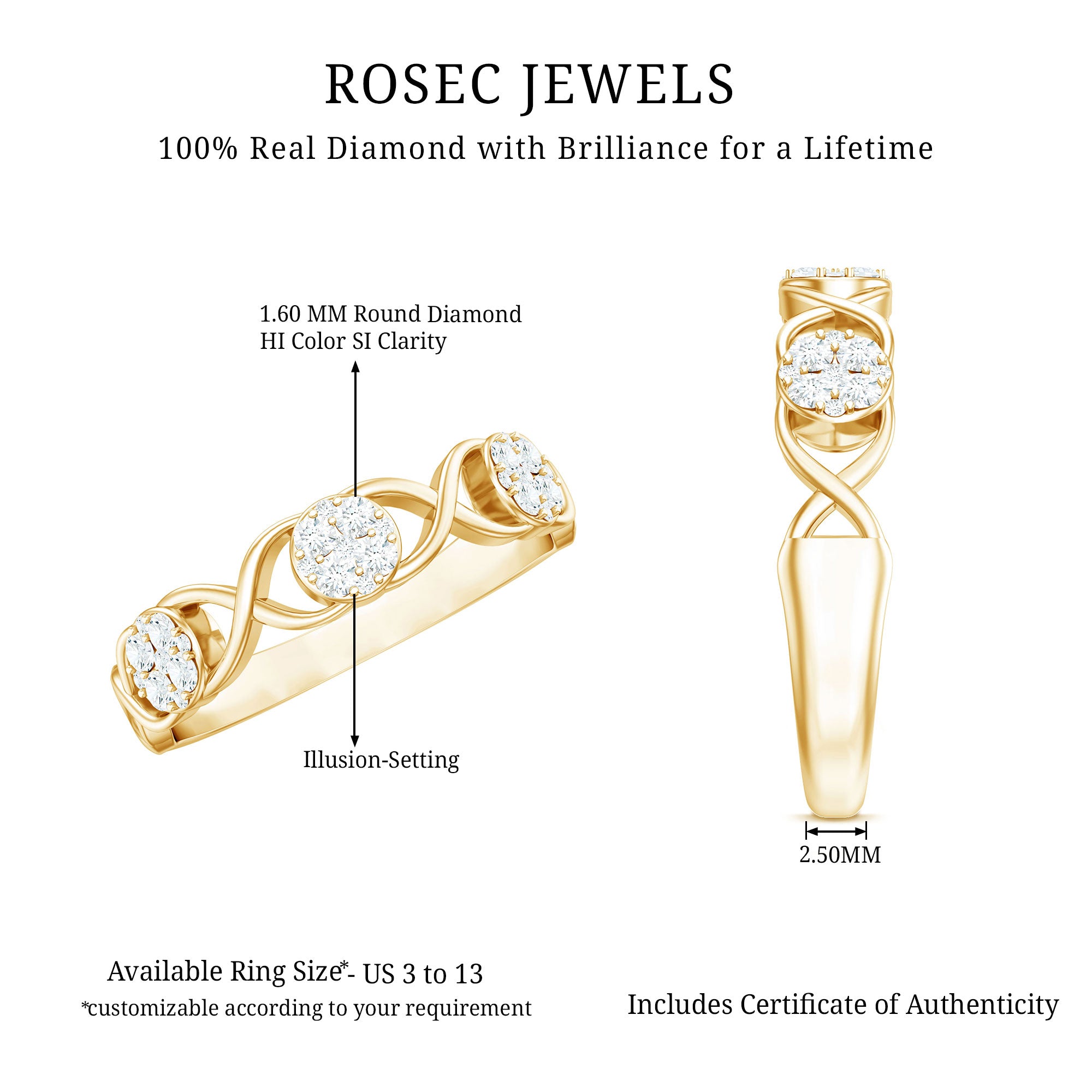 The Diamond Wedding Band is a stunning symbol of your eternal commitment, while offering a lot of beautiful bling. Crafted with meticulous attention to detail, this Ring features an endless loop of infinity design along with the Illusion Setting of Diamond that brilliantly sparkles from every angle. Beautiful infinity design represents a love with no beginning and no end. The unique Infinity Knot Ring ensures a perfect, uninterrupted flow of light, creating a breathtaking circle of sparkle that wraps around the finger. As a powerful and elegant symbol of forever, this Infinity Band Ring is a stunning and enduring reminder of your unending commitment. Having no bounds, this Infinity Wedding Ring traces the infinity symbol that shimmers with every movement. The elegant and timeless design ensures it will beautifully complement your engagement ring or stand on its own as a singular statement of everlasting love. A beautiful and awe-inspiring design of an Infinity Diamond Ring that you can walk down the aisle in style.