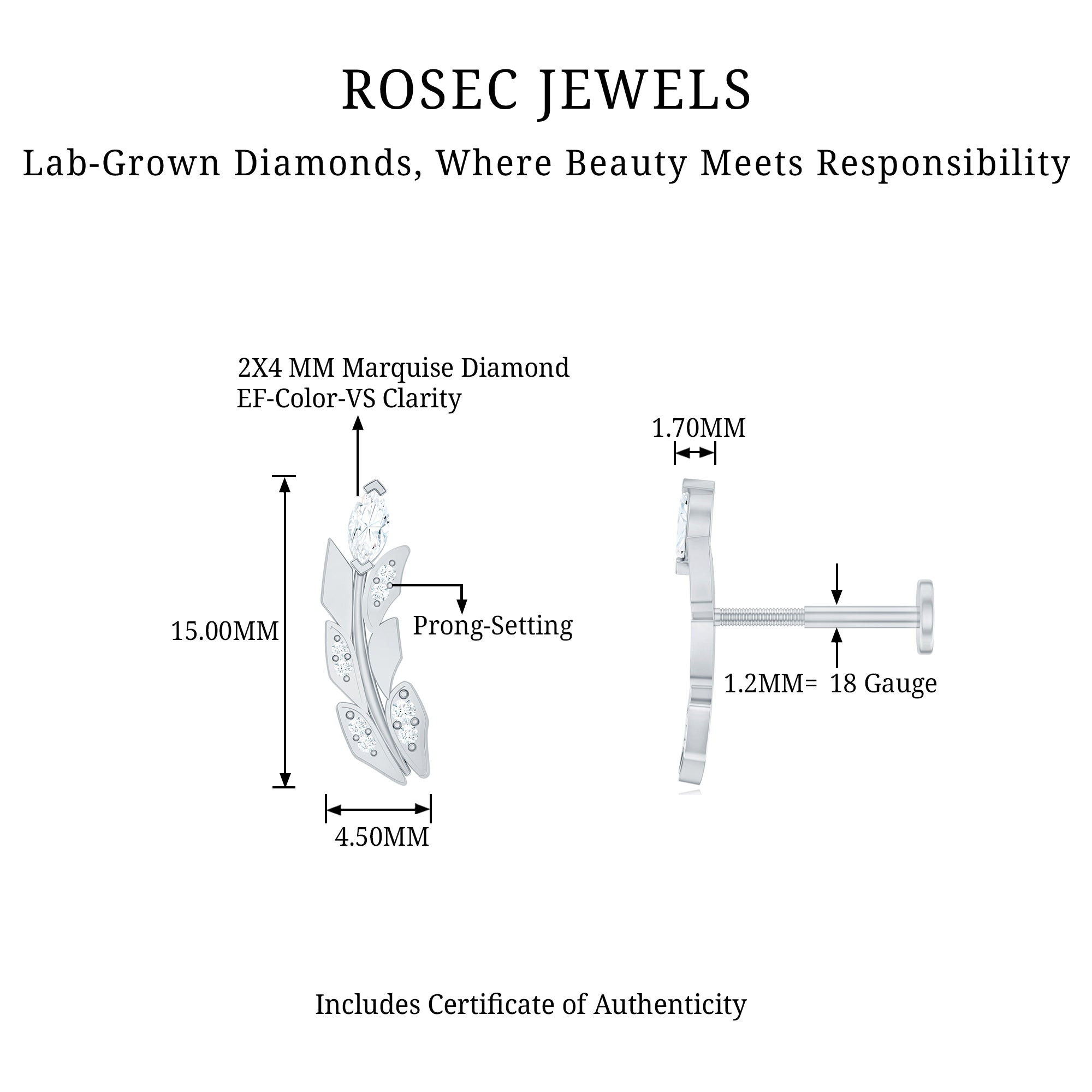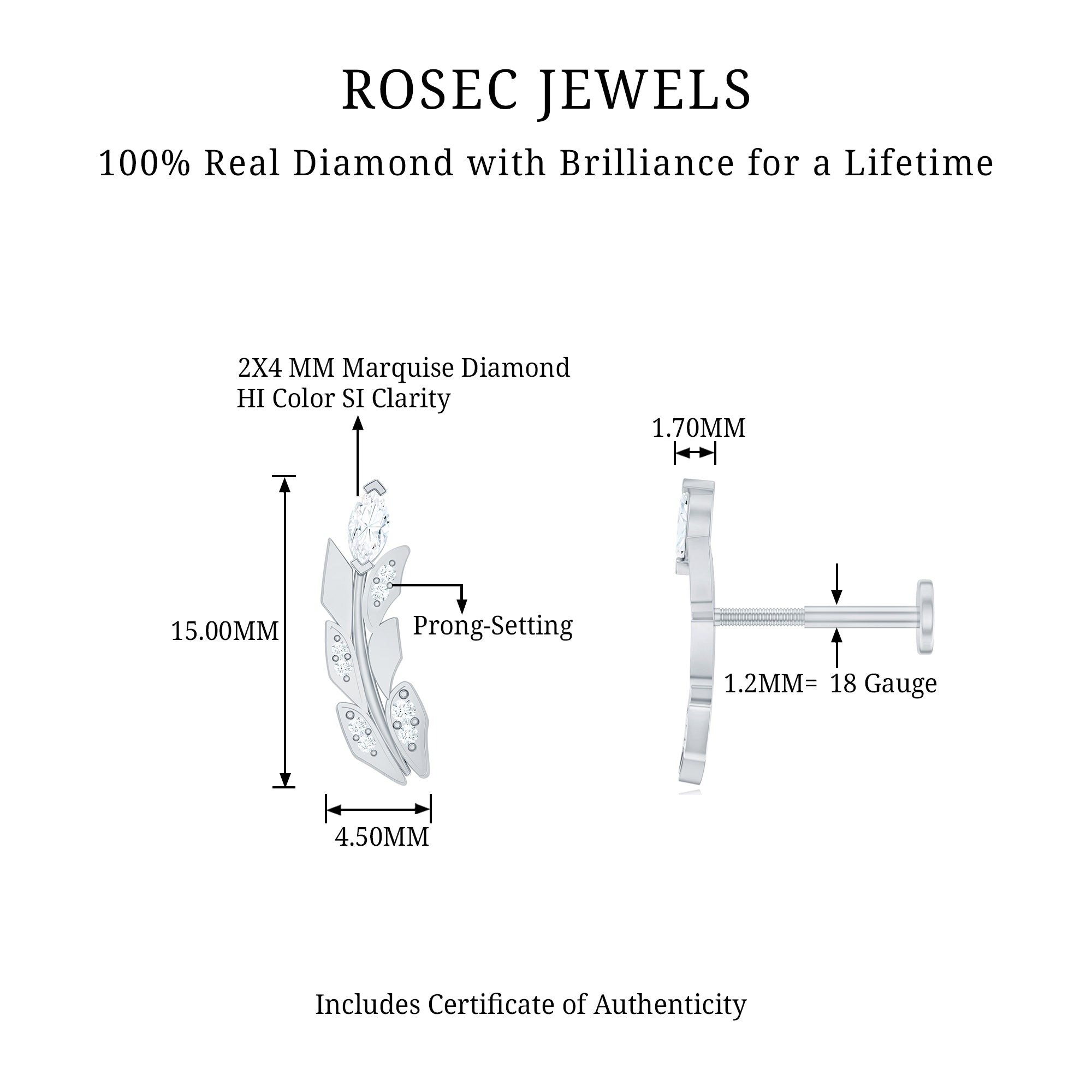 The Diamond Leaf Crawler Earring is the perfect addition to any piercing jewelry collection! This design is inspired by the beauty of natural foliage. Featuring Round Diamonds set in pave setting on a leaf design. Whether you wanna rock it as the star of your Curated Ear or let it shine solo, this designs got you covered. You can simply slide this Diamond Climber Earring into your Helix, Conch, Cartilage, or Upper Lobe Piercing. And peep this, its got an elongated curve thats all about that perfect fit for your Lobes anatomy.