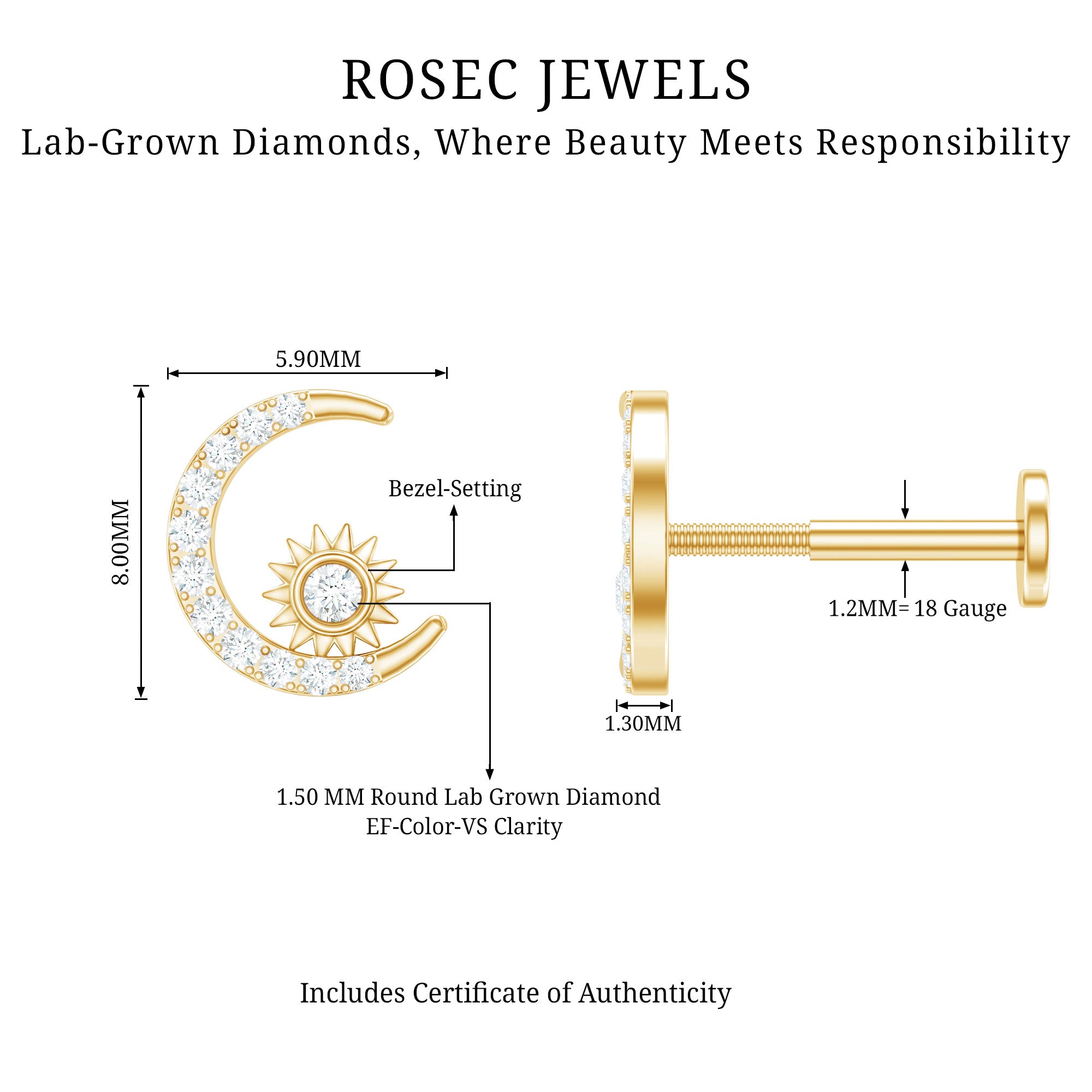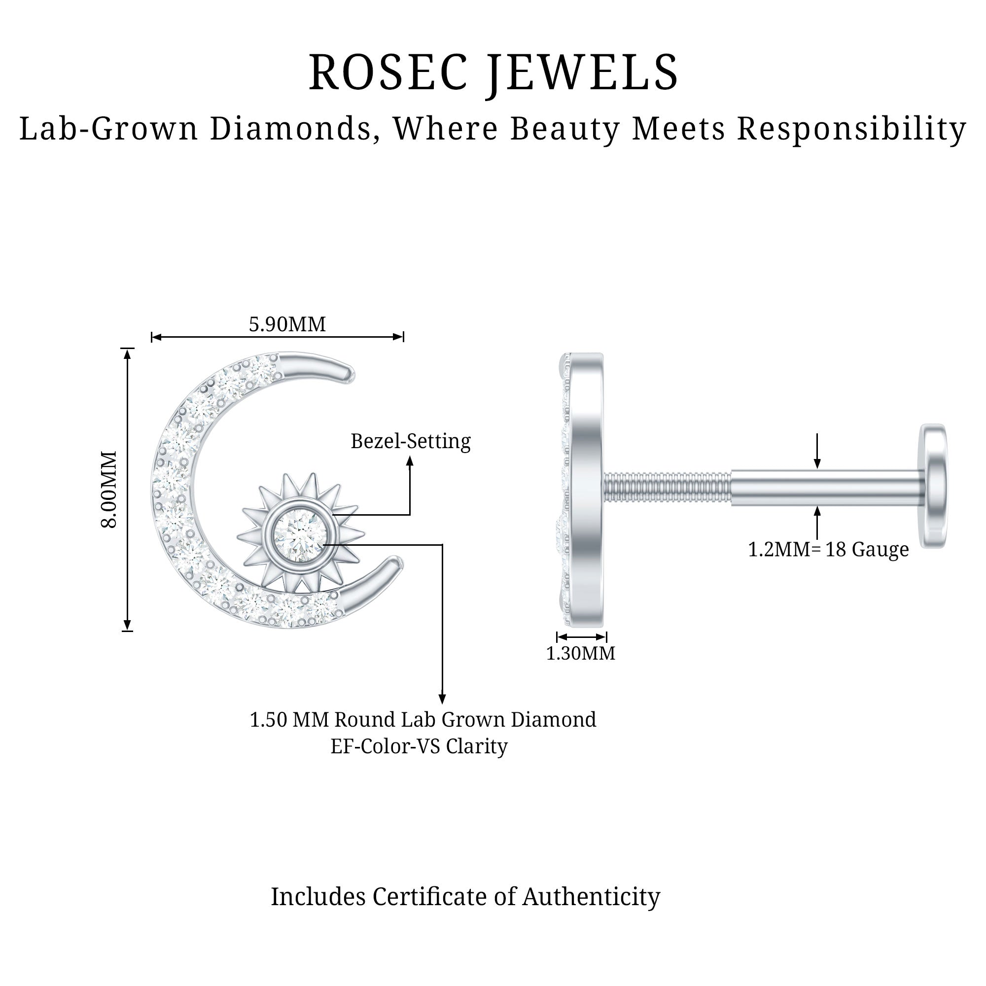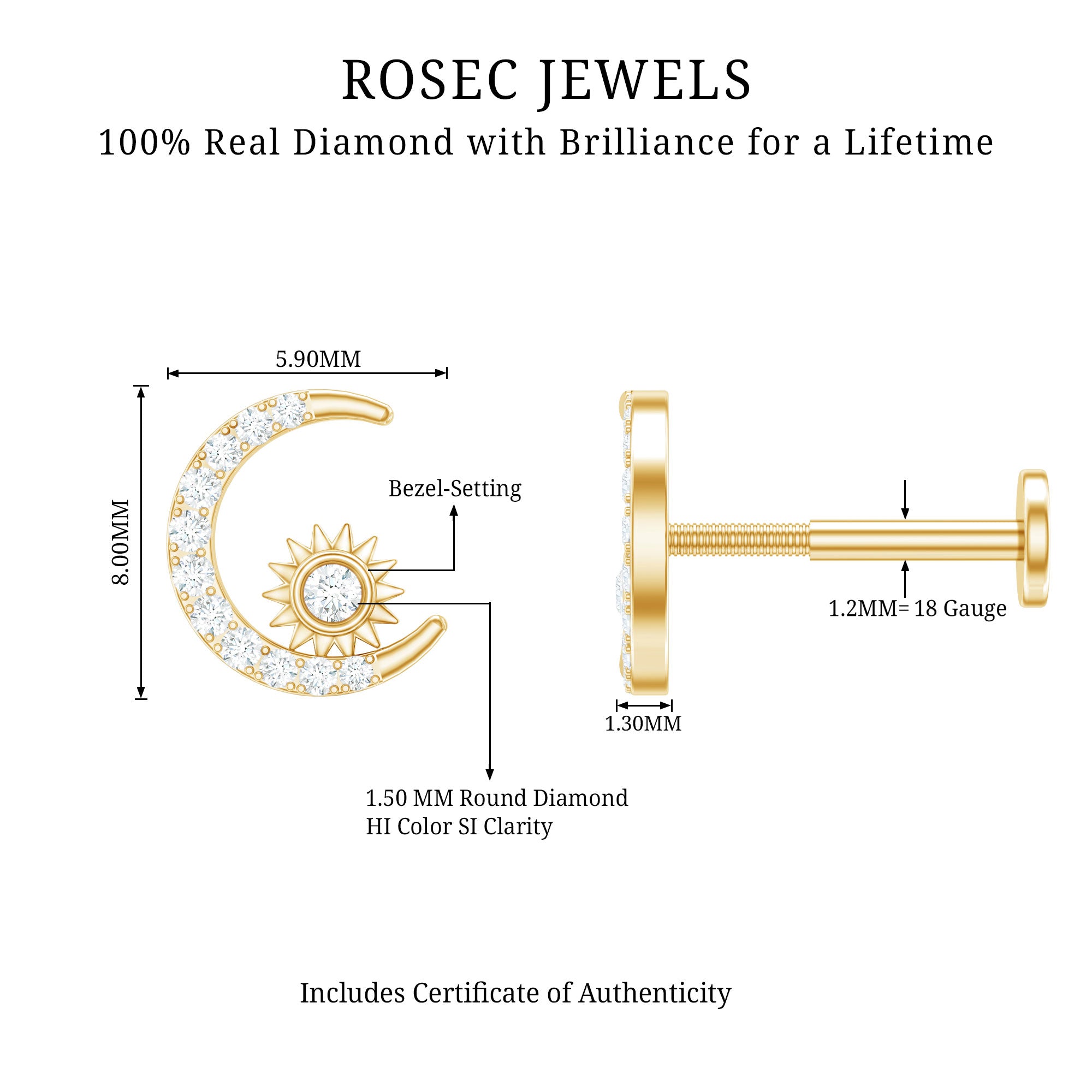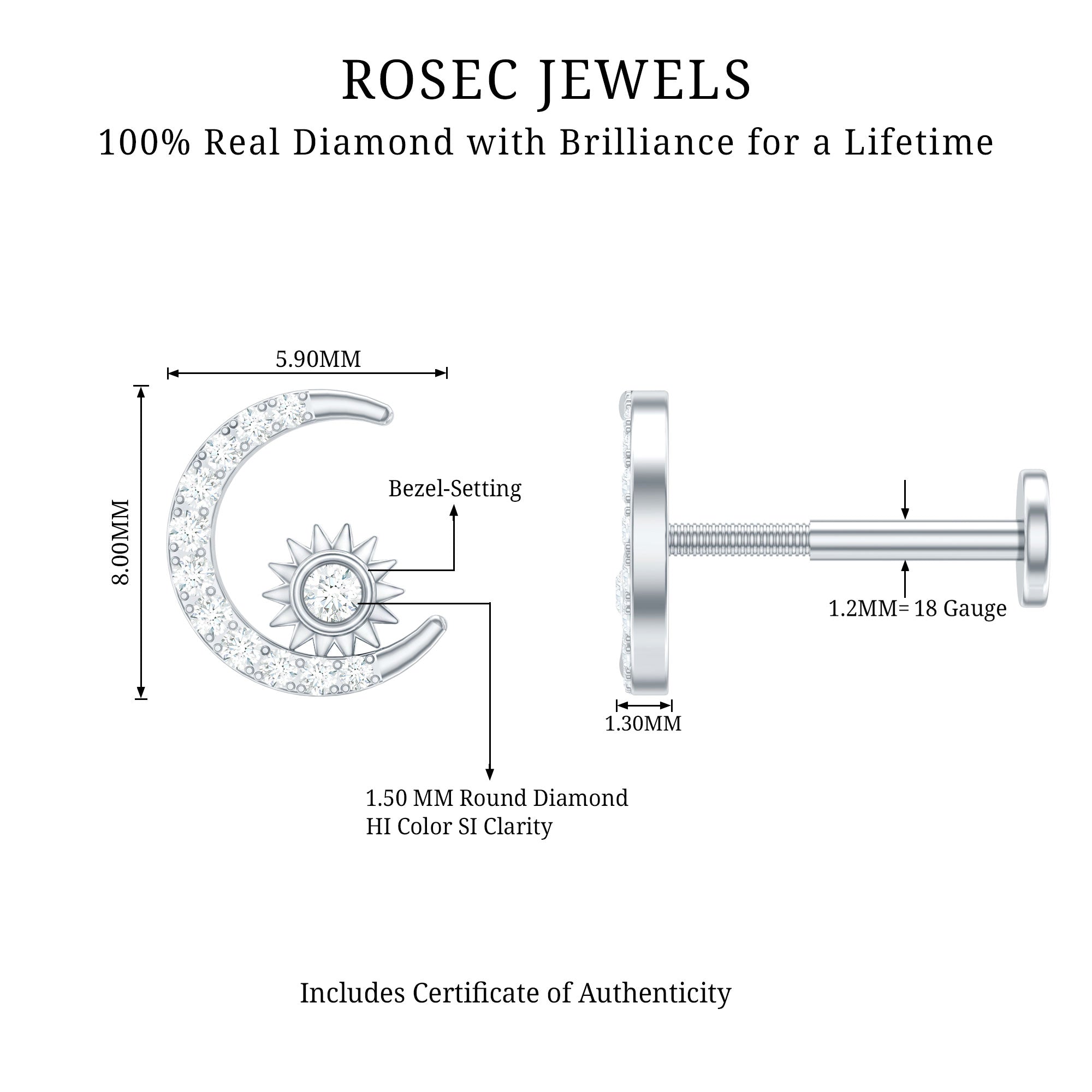 This Diamond Moon and Star Helix Earring is an eye-catching standalone piece of jewelry. It features petite Round Diamond shimmer on the crescent moon design, while a diamond twinkles on the star. Board of ordinary ear piercing jewelry? Grab this Crescent Moon Earring, which can be worn on your Helix, Conch, Cartilage, or Upper Lobe Piercing. Style this Celestial Earring with your casual or dressy attires, and make everyone a fan of your style. This Diamond Moon Earring makes a wonderful gift for your beloved ones. Present it as a birthday gift, anniversary gift, holiday gift, or christmas gift, she will surely adore it.