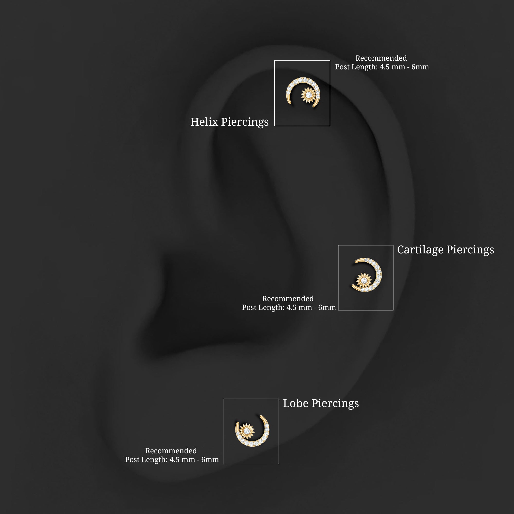Diamond Moon and Star Helix Earring