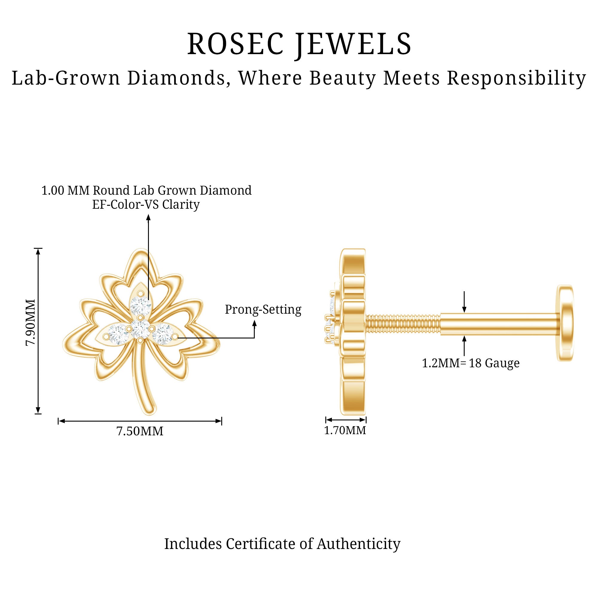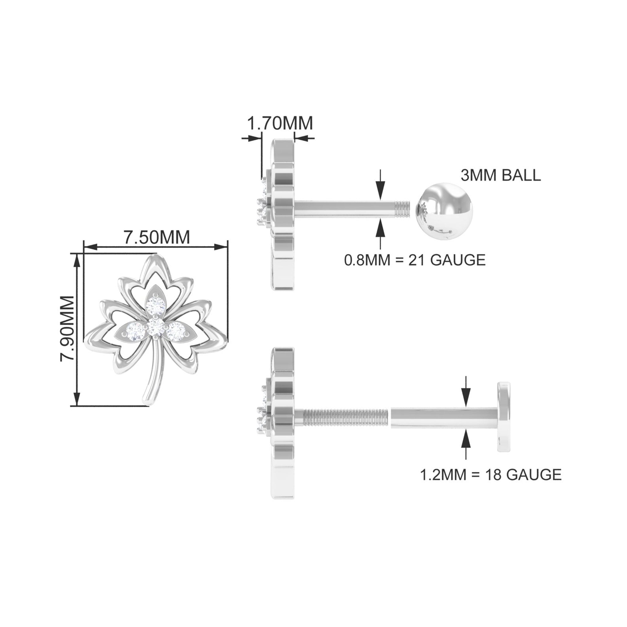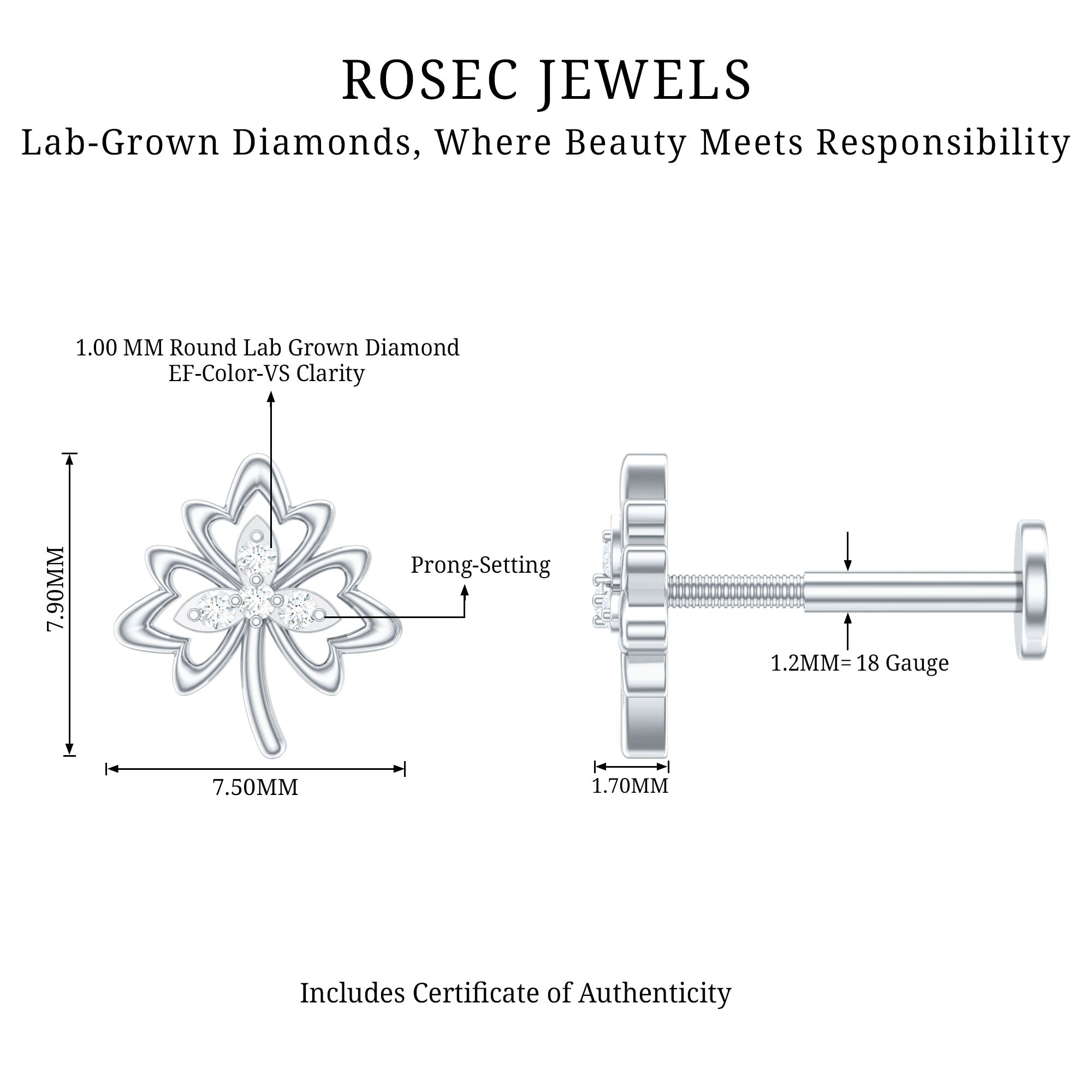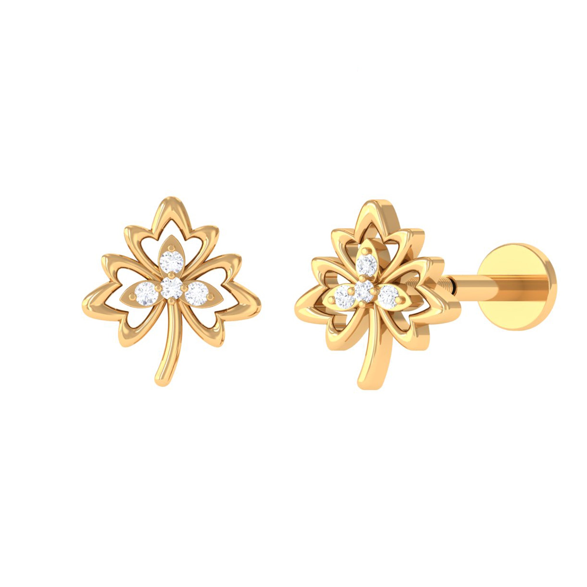 Inspired by nature, this trendy Diamond Earring radiates beauty and style. Crafted in hallmarked metal, each gorgeous earring features Round Diamond studded on the leaf design. The Flat Back Closure helps to keep the Diamond Helix Earring in place and it can be worn on your Helix, Cartilage, or Upper Lobe Piercing.Let your style flourish as you flaunt this Leaf Earring, leaving a lasting impression with its radiant shine. Elevate your look by pairing this Cartilage Earring with other ear jewelry, creating a dazzling ensemble thats sure to steal the spotlight at any party.