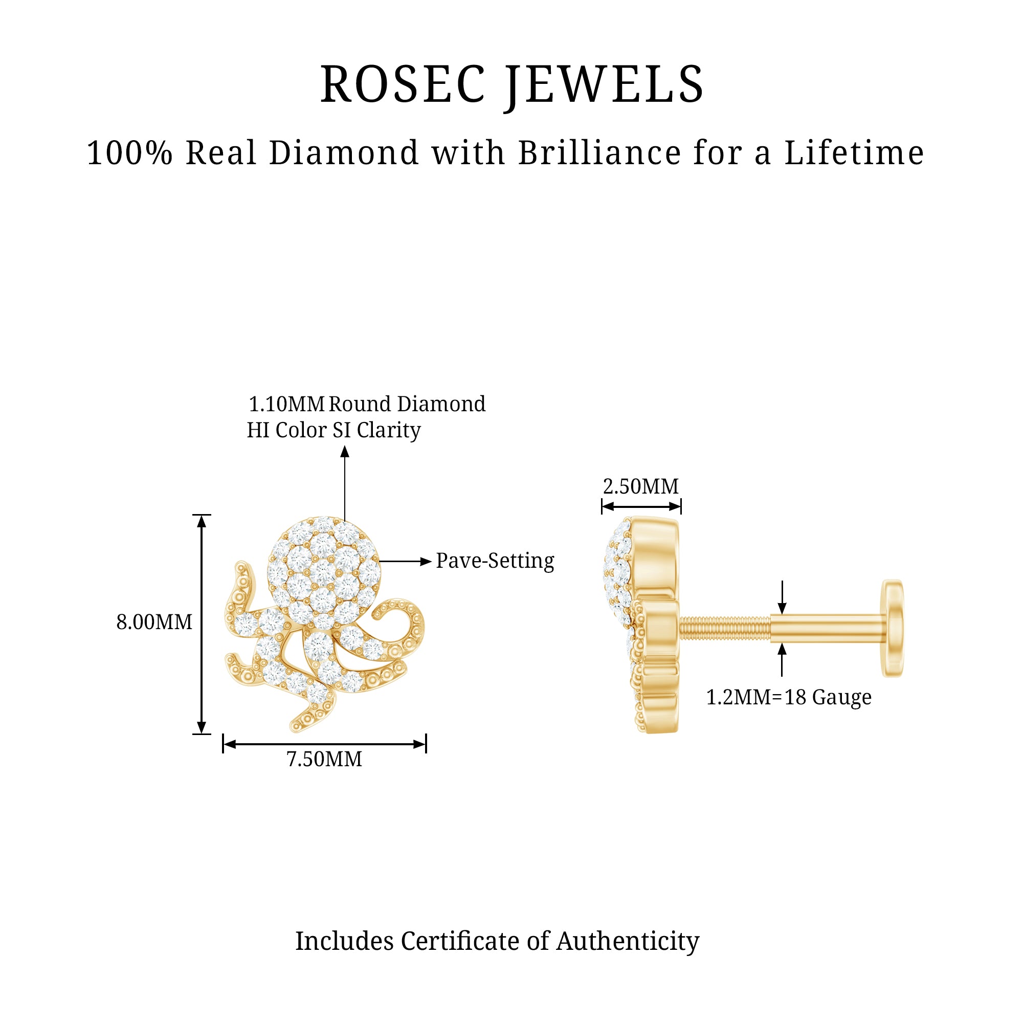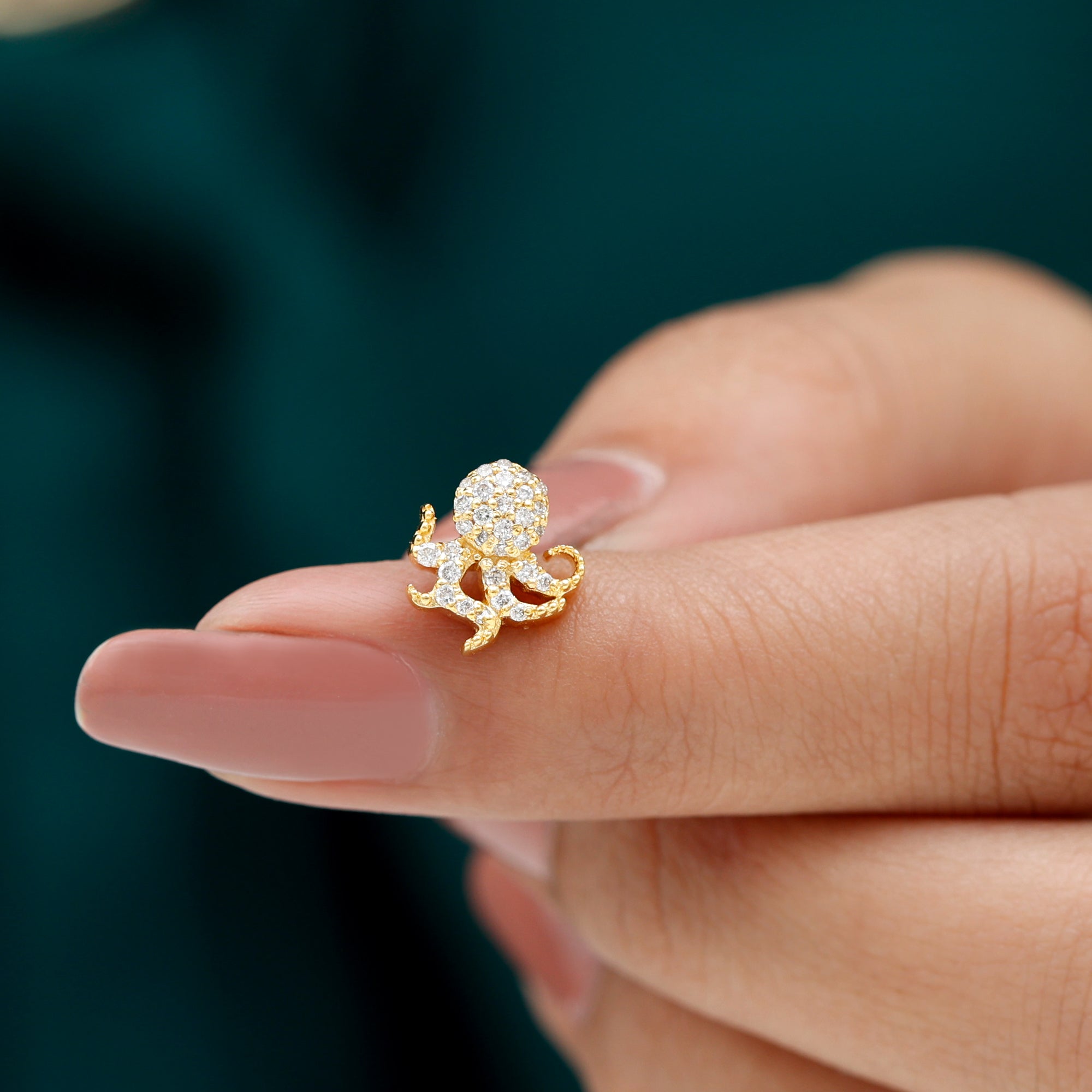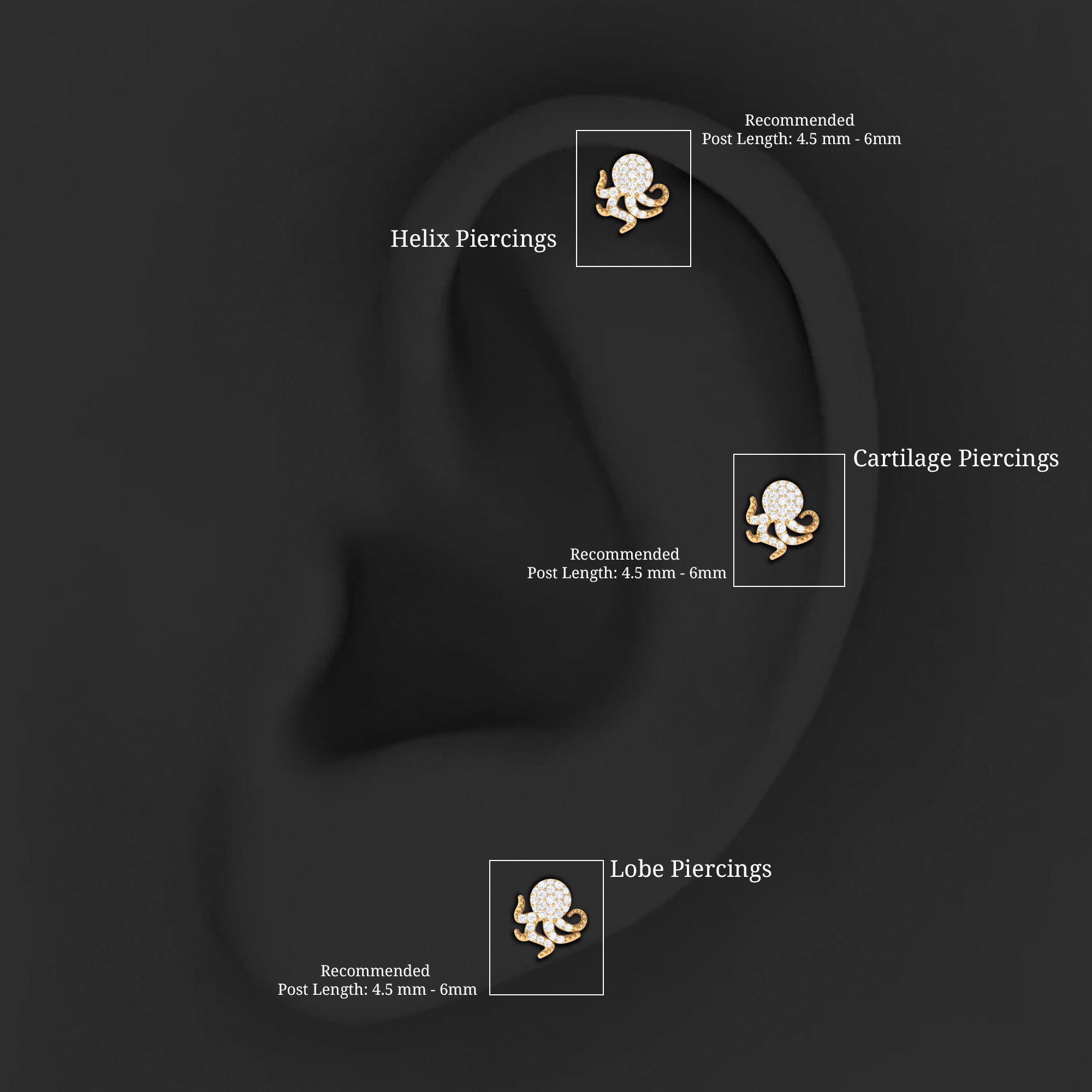 - This Stud Earring features round cut diamonds set in pave setting over a octopus shape, exuding an unmatched sparkle and complemented by hallmark metal.
