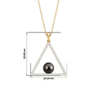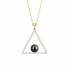 Diamond Open Triangle Pendant Necklace with Black Tahitian Pearl