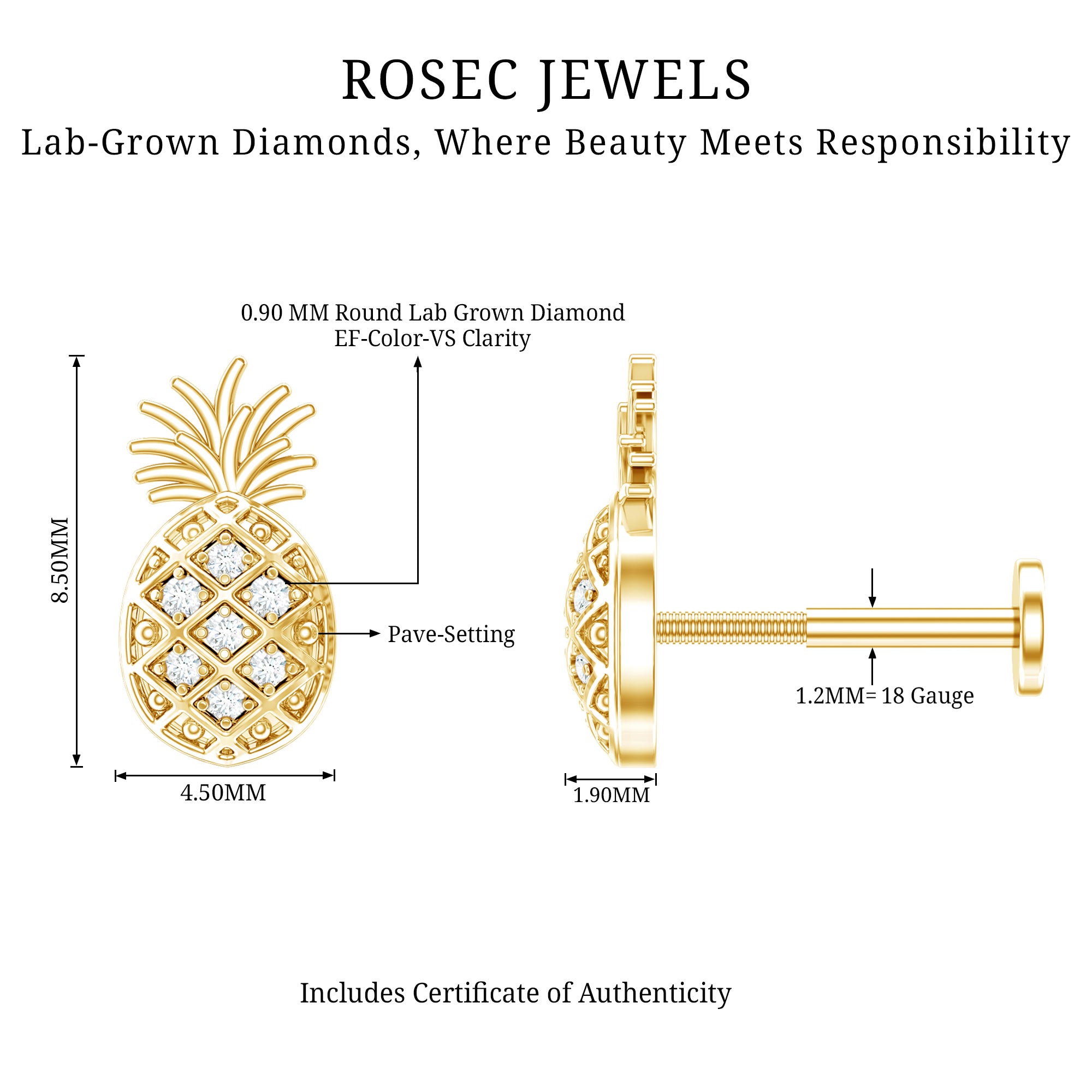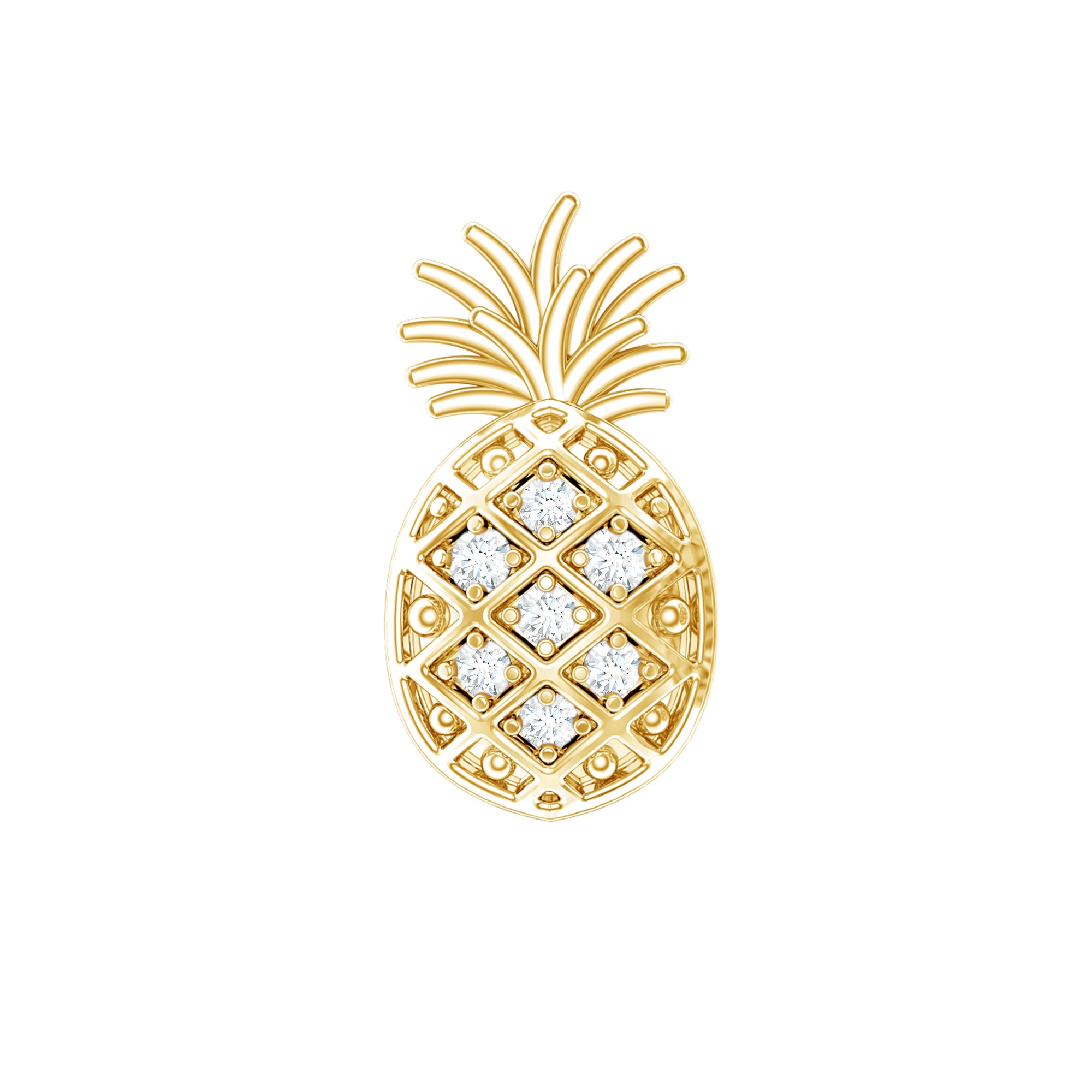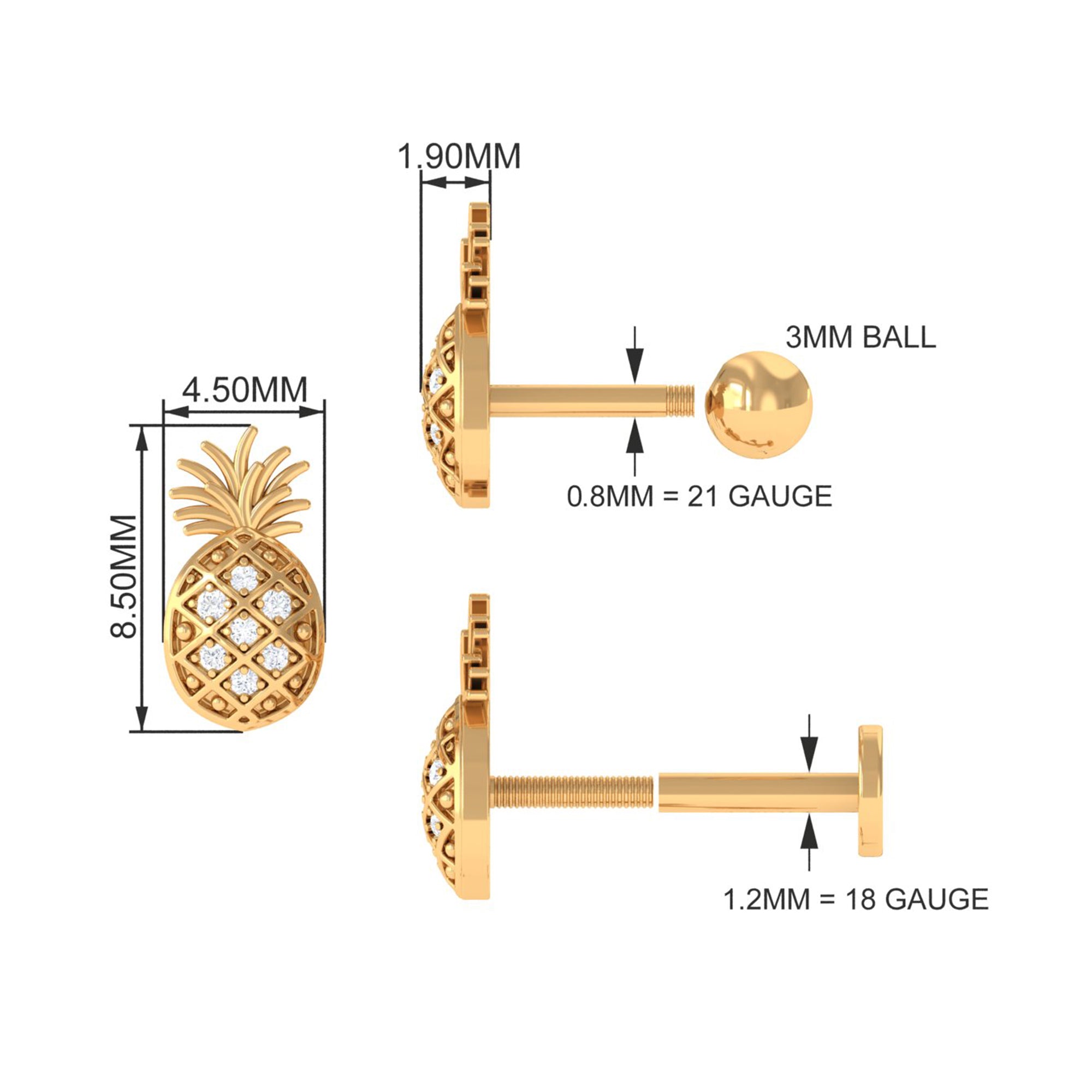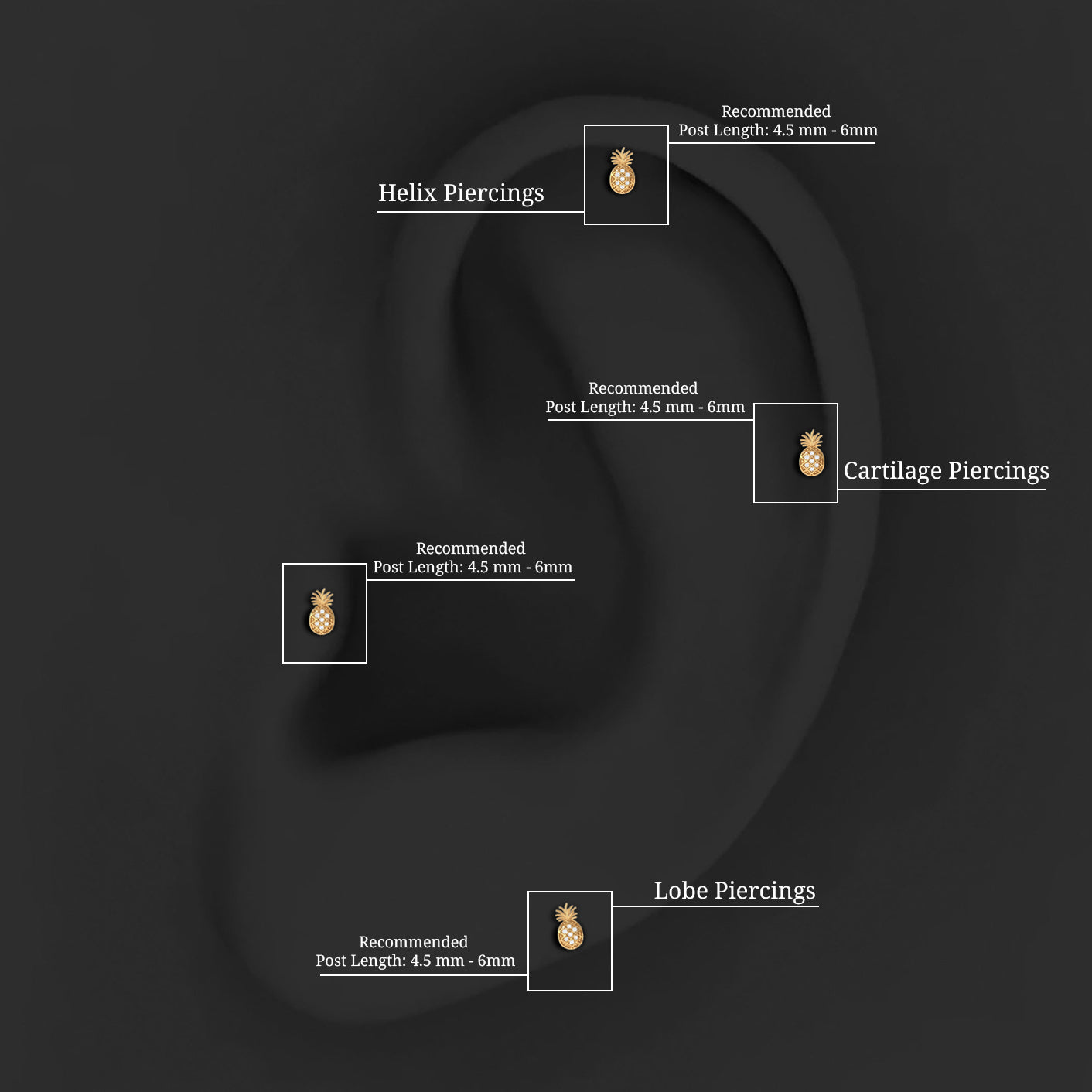Who says tropical vibes are just for summer? Check out this Diamond Pineapple Earring that brings the heat all year round! This Earring showcases Round Diamonds secured by Prong Setting embellished on a pineapple design, giving off those island feels.You can simply slide this Diamond Earring into your multiple piercings like Helix, Cartilage, or Upper Lobe Piercings. Level up your ear game with this Diamond Fruit Earring – its not just bling, its a tropical mood for your ear piercings!