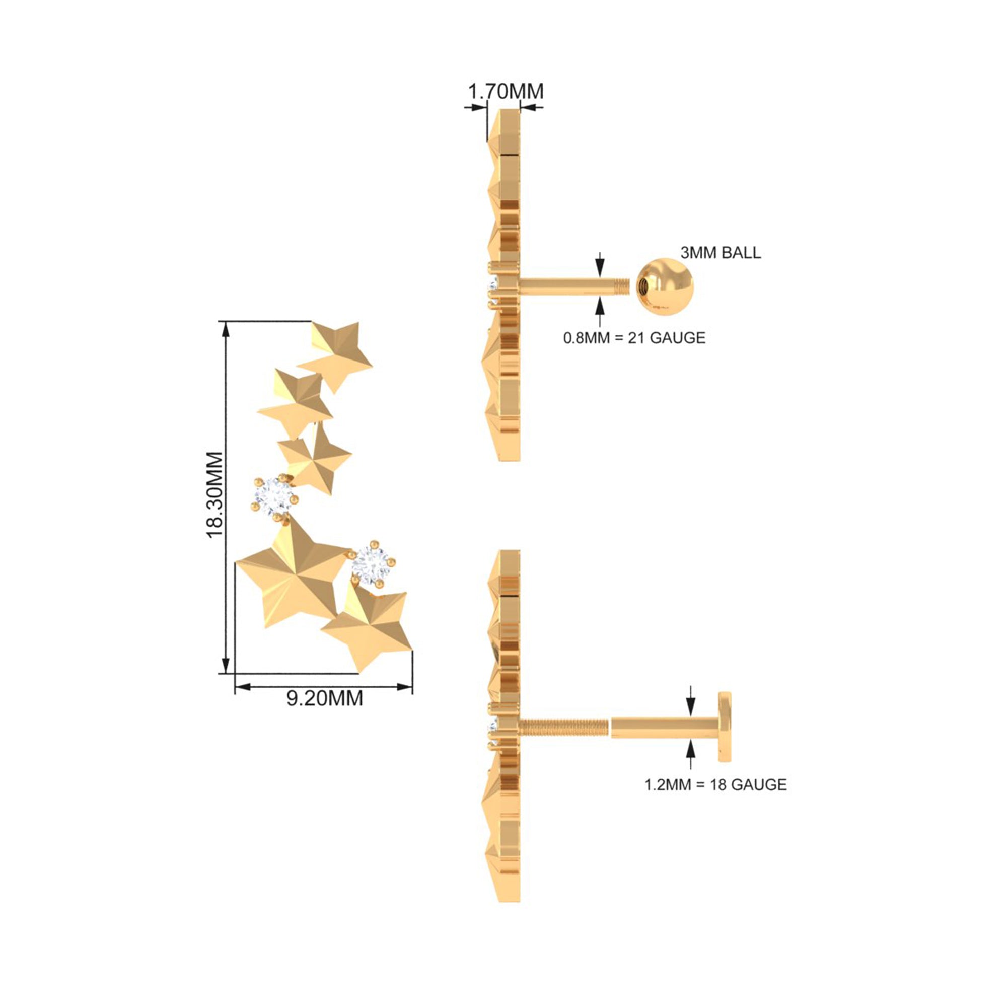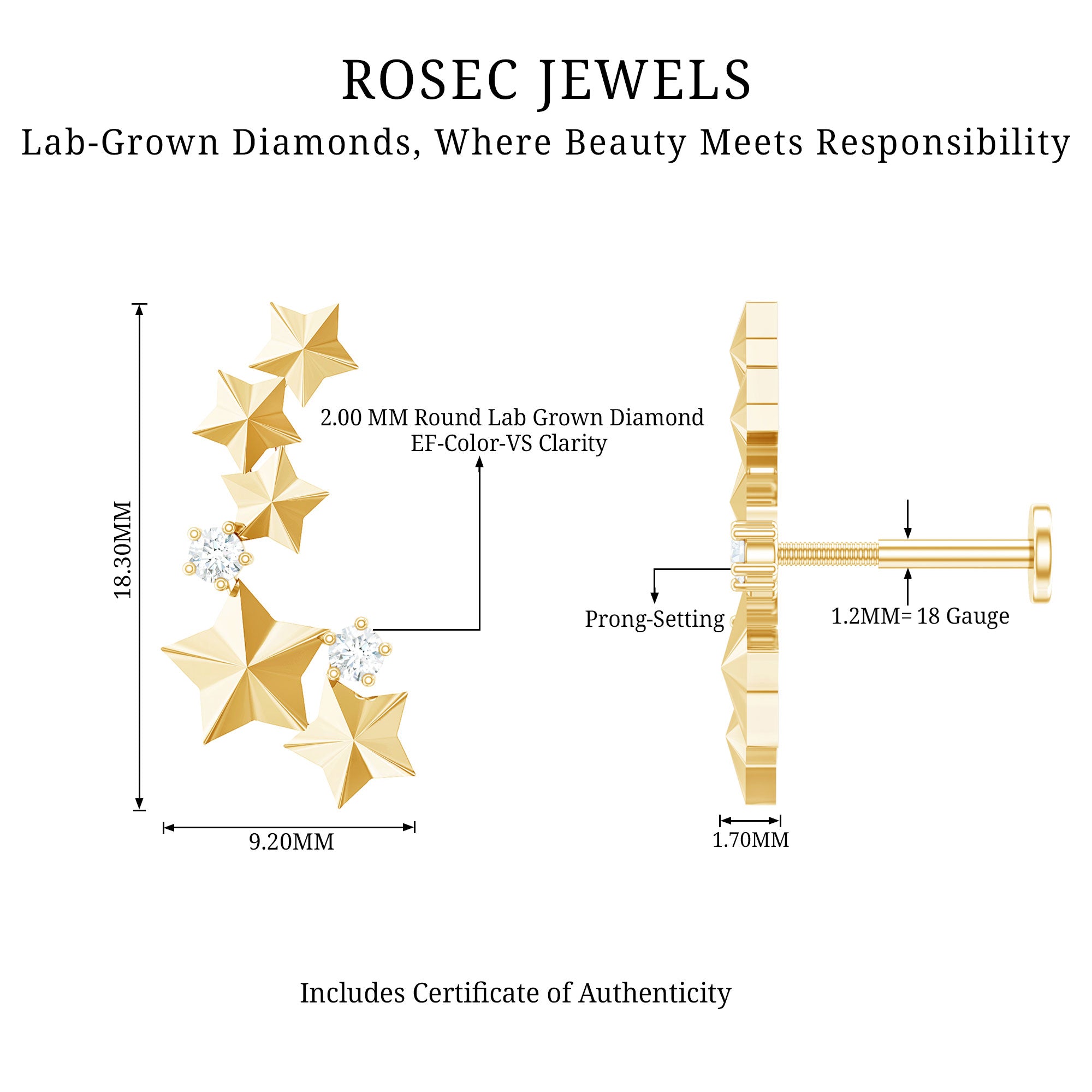 Get our stunning Diamond Celestial Earring – a celestial masterpiece that will elevate your style to new heights. Adorned with brilliant diamonds, this earring sparkles like a constellation in the night sky. The unique crawler design gracefully ascends your ear, creating a mesmerizing celestial trail. The earring is perfect for any occasion, from casual gatherings to formal events, this earring adds a magical touch to your overall look. You can wear this earring on the Helix, Cartilage, or Upper Lobe Piercing. This Star Celestial Earring is ideal as a gift for a loved one or as a self-indulgent treat to celebrate life special moments.
