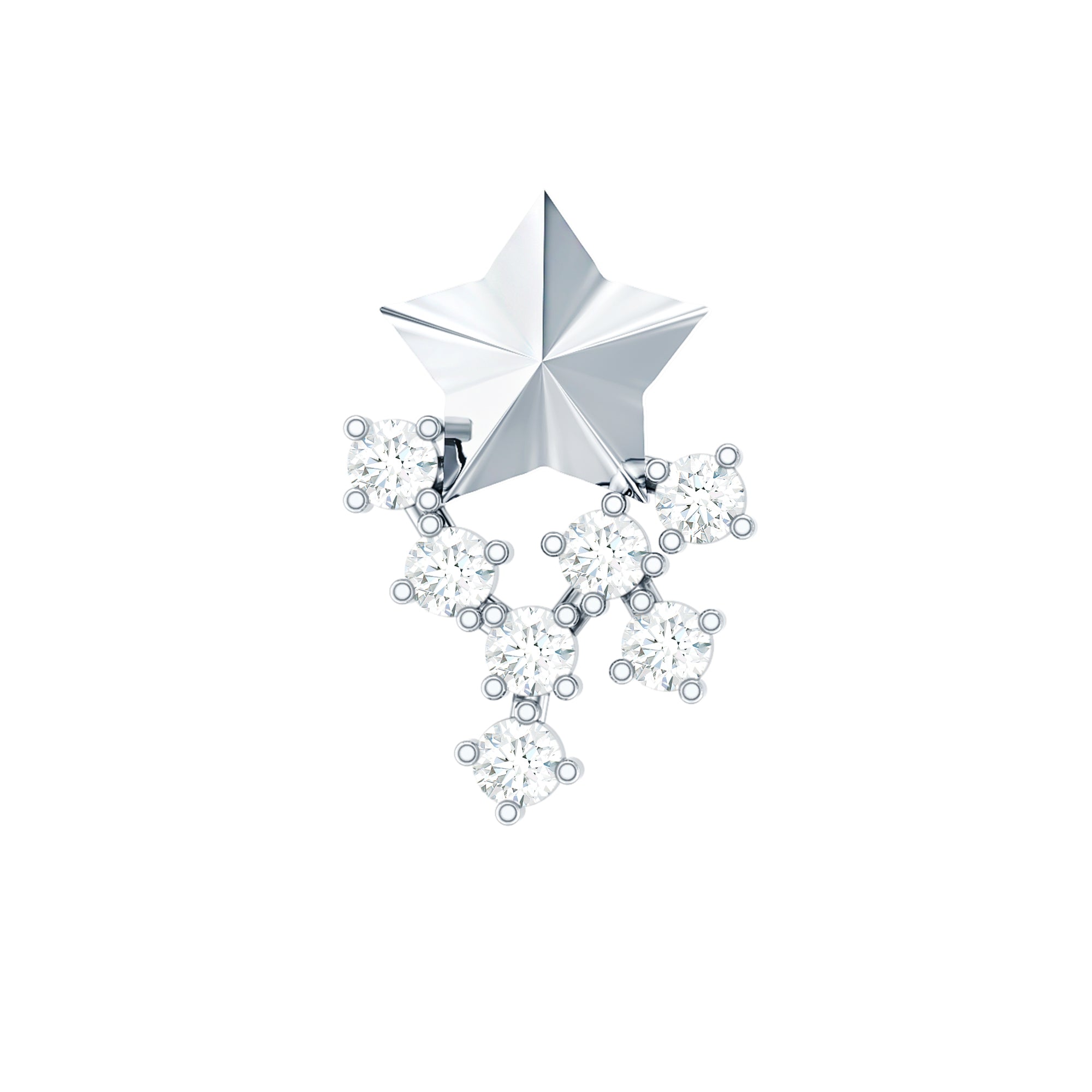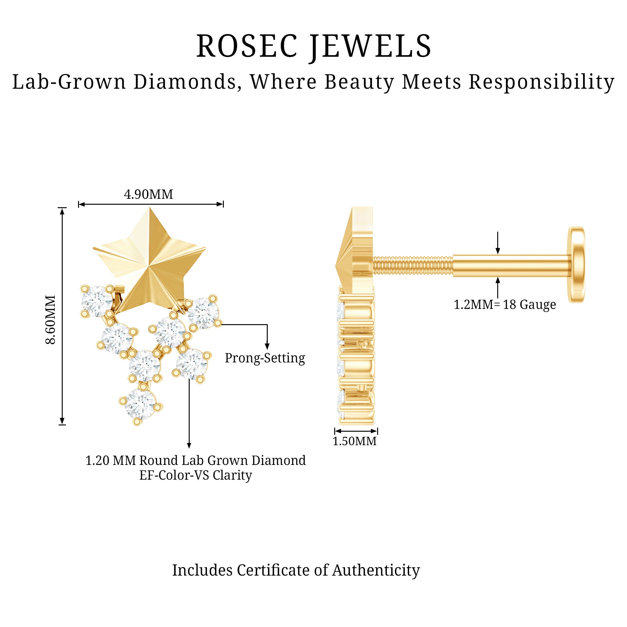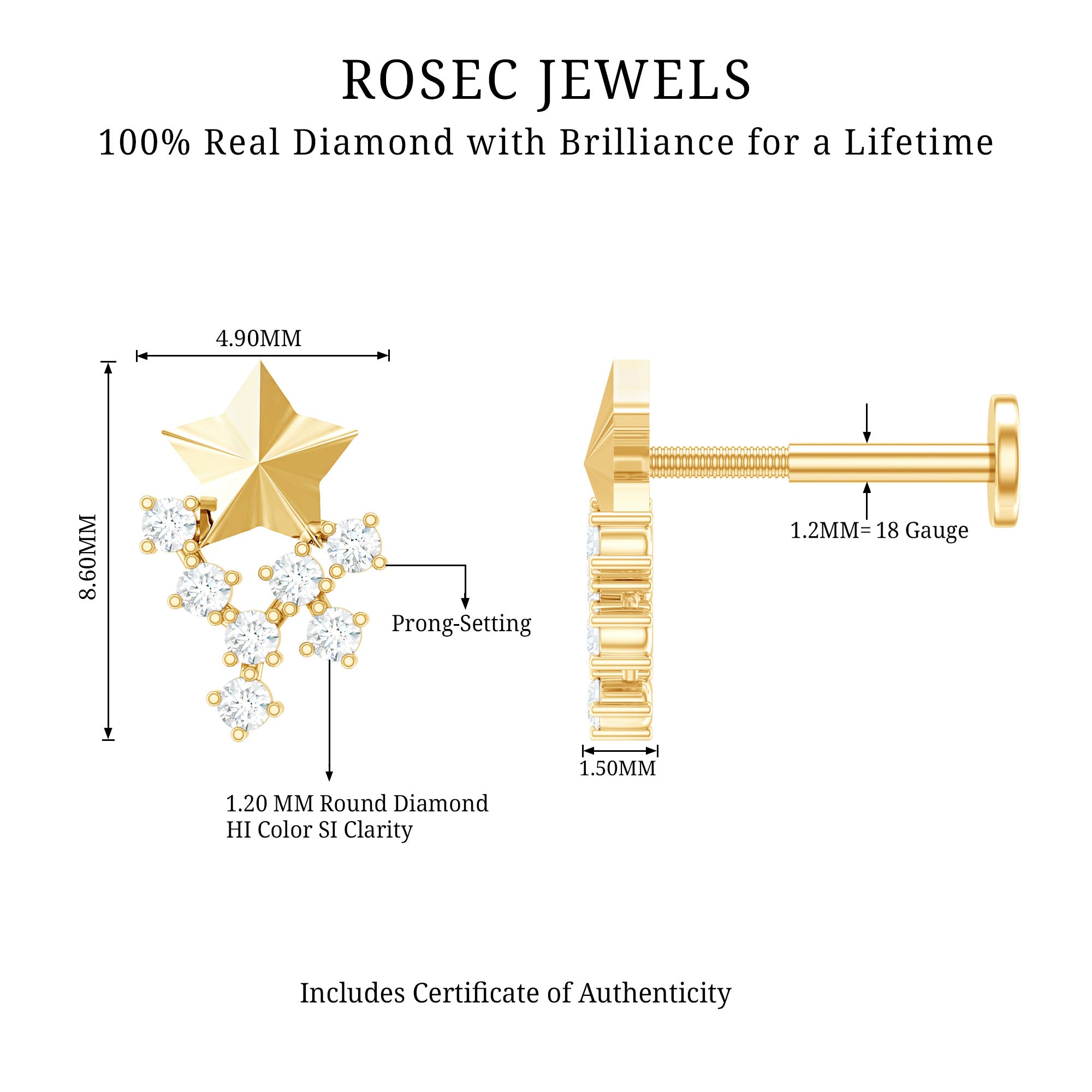 Get yourself a star treatment with our alluring and sparkly Diamond Star Celestial Earring.This earring showcases Round Shape Diamonds set in Prong Setting and features a star design on the top, adding a burst of celestial beauty!This Piercing Earring is the perfect mix of minimalistic and suave. Style it on your Helix, Cartilage, Conch, Tragus, or Upper Lobe Piercing.By teaming this Diamond Earring with a pair of hoops, youll ace the stack look. This Celestial Earring is what you need to add to your daily rotation to ensure you look effortlessly elegant every day.