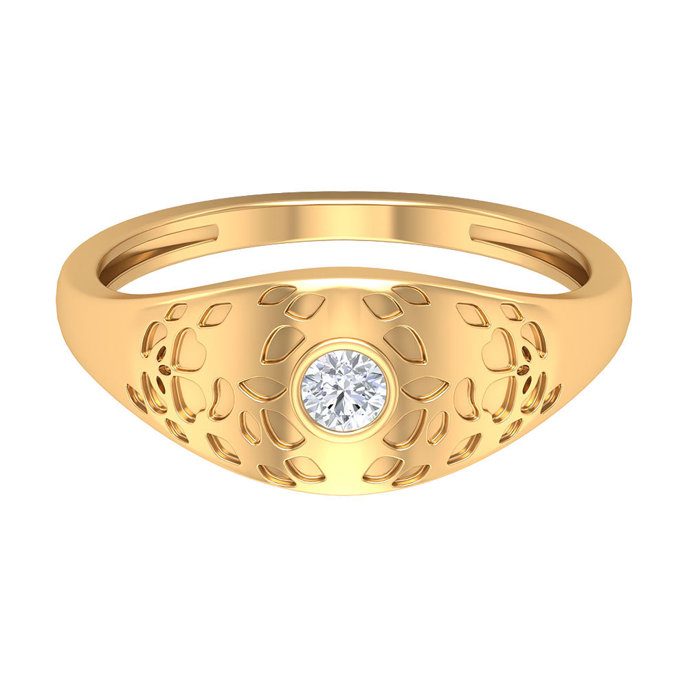Wear this Gold Textured Diamond Signet Ring for a classy and timeless look. Embellished with Round Cut Diamond in Bezel Setting with textured gold metal, this Diamond Signet Ring is a right mix of subtlety and style.