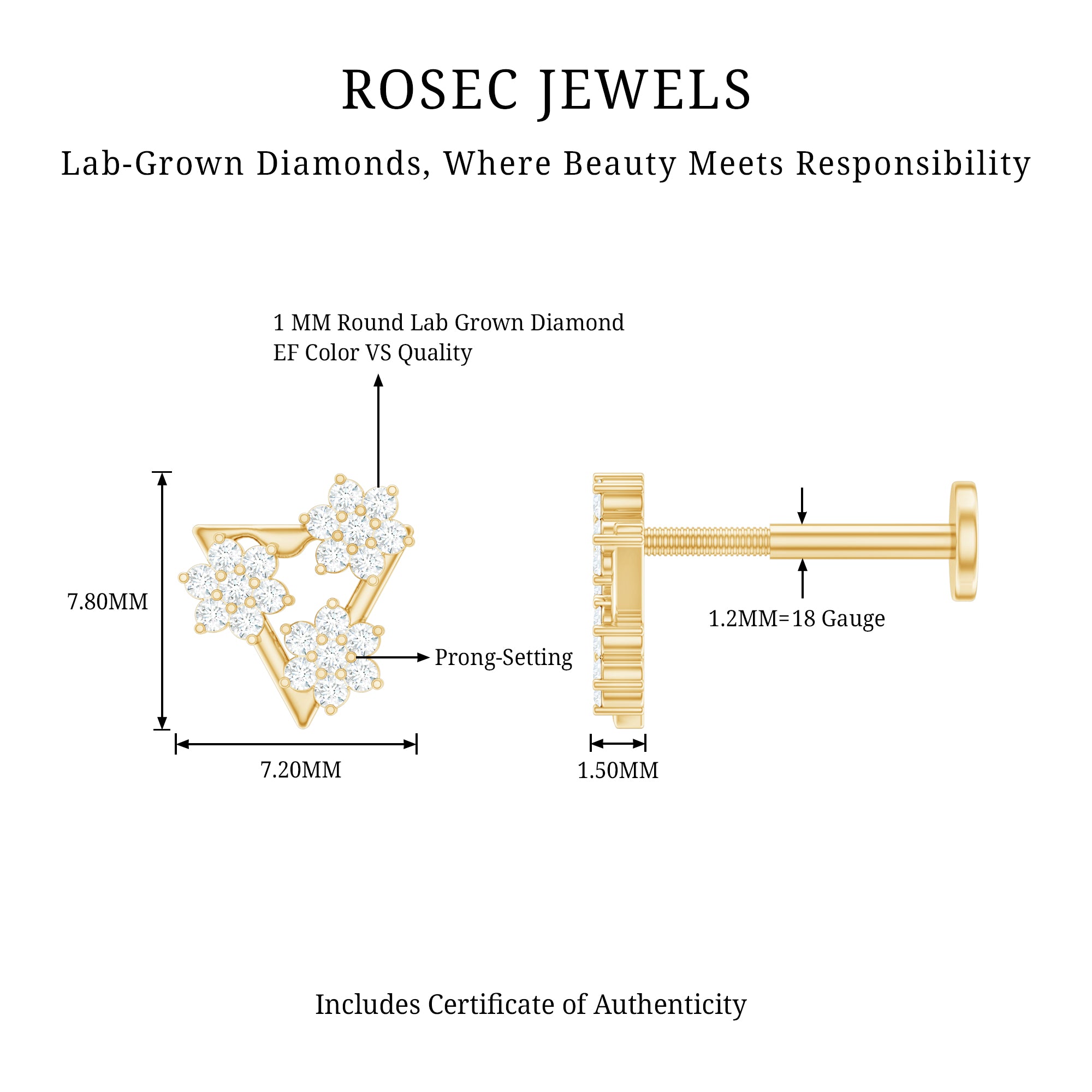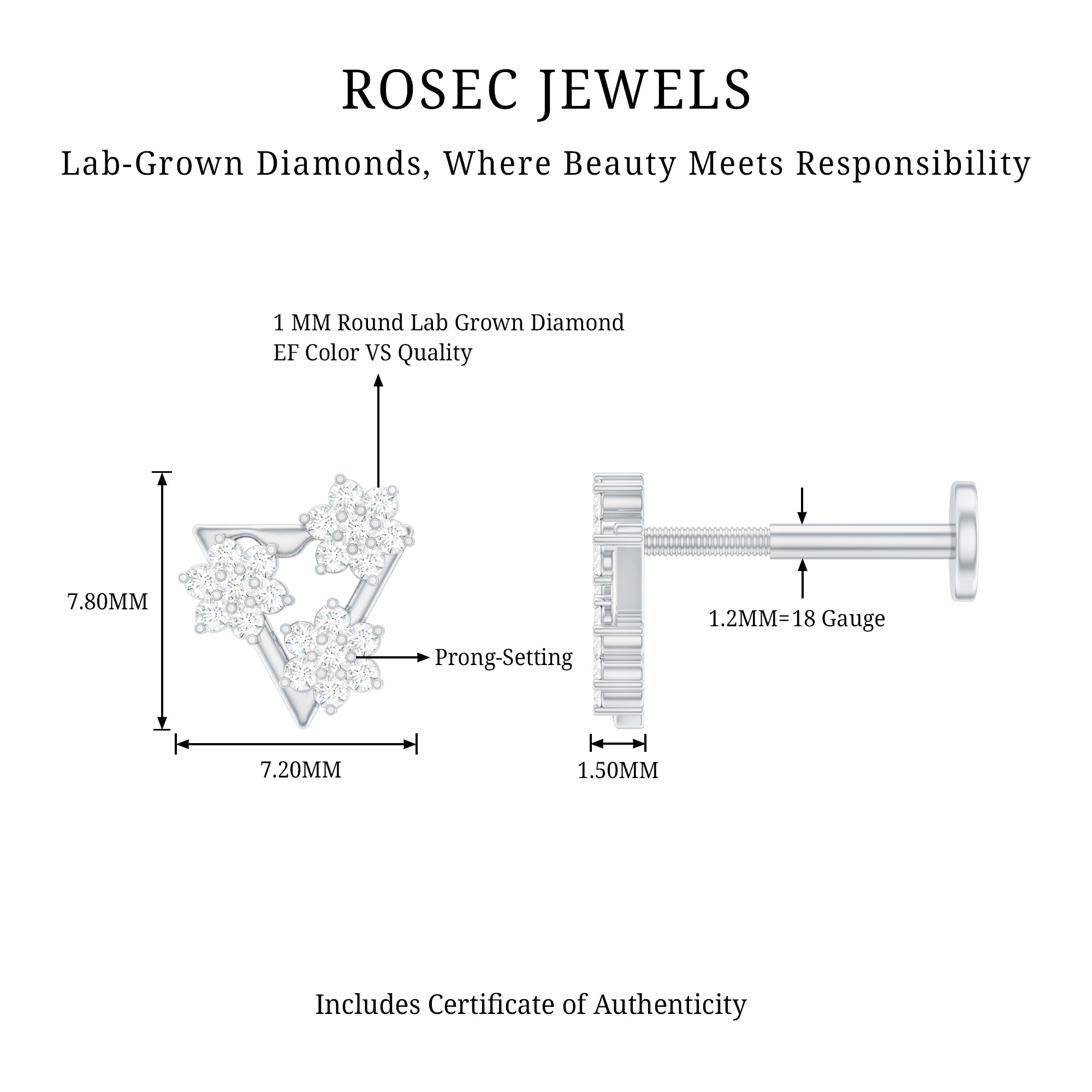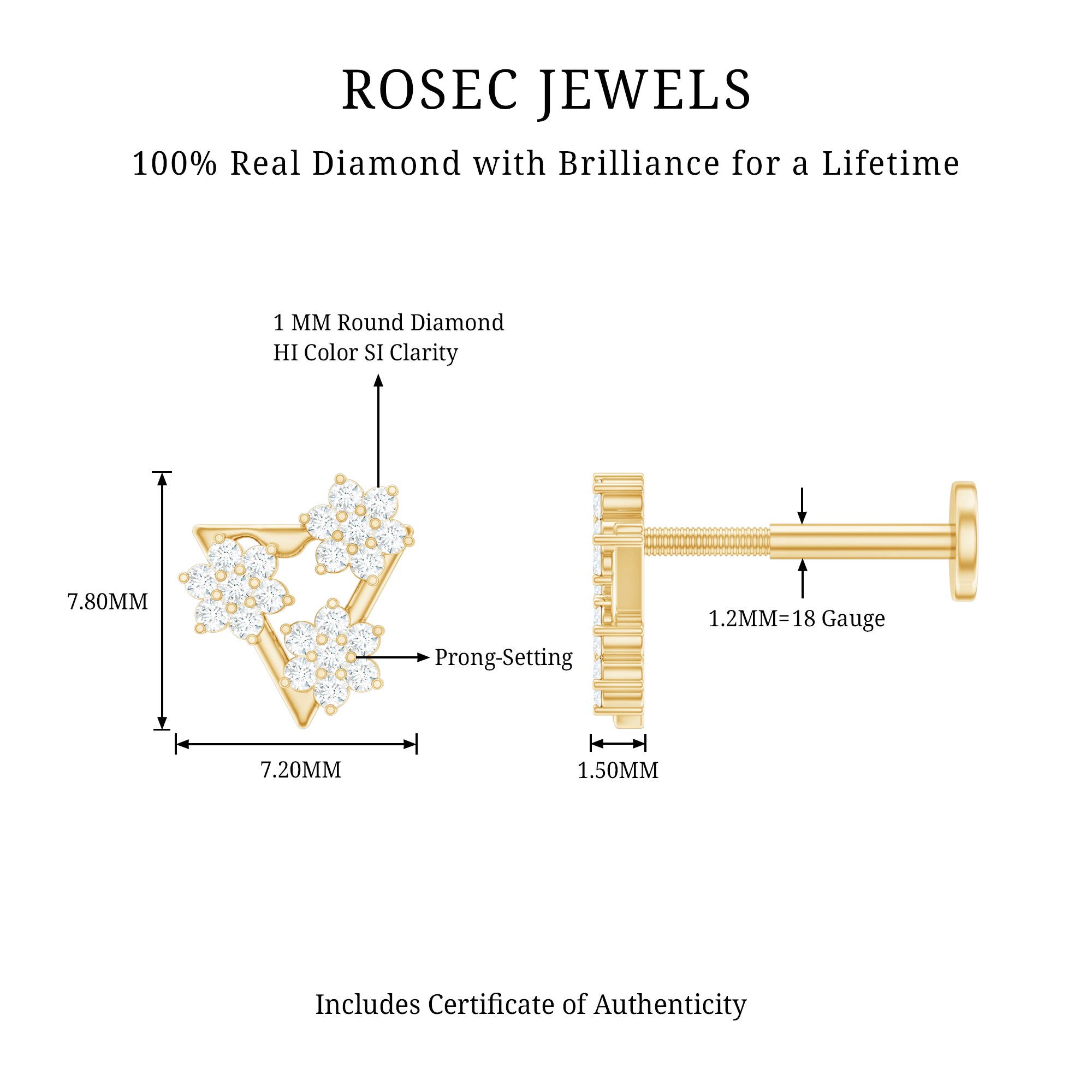 Geometrics are all the rage, isnt it? Grab this amazing Diamond Triangle Earring embellished with Round Diamonds studded in Prong Setting over a triangular design. You can simply wear this Geometric Earring on your Helix, Cartilage, Tragus, Conch, or Upper Lobe Piercing. The Triangle Earring is perfect for any occasion, from casual gatherings to formal events, this earring adds a magical touch to your overall look. This Diamond Earring is ideal as a gift for a loved one or as a self-indulgent treat to celebrate life special moments.