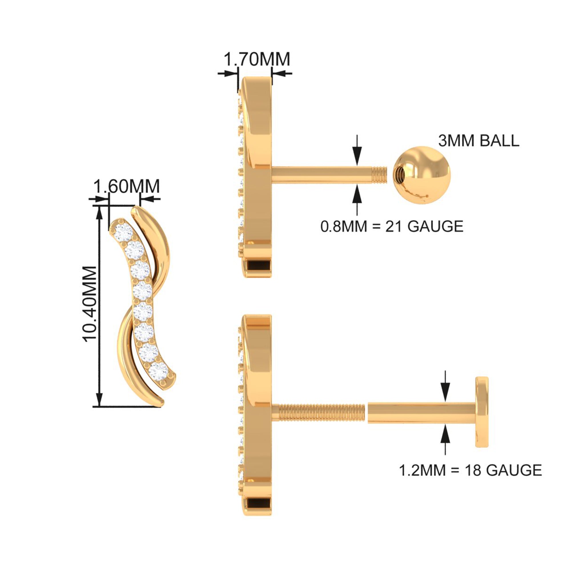 You’ve been missing out on, this statement-maker Diamond Wave Earring shines all on its own. This Wave Earring showcases Round Diamonds studded in Pave Setting on a wave design, composed of Solid Metal for a finished look. Whether worn alone or with others, this Piercing Earring is made to be noticed.It is perfect for Conch, Cartilage, Helix, or Upper Lobe Piercings, and adds a touch of sophistication to any outfit. Are you ready to step up your style? This Diamond Earring can be paired with any outfit, from a party dress to a casual look, and you are sure to make a statement.