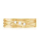 Bold, refined, and timeless - this Mens Wedding Band speaks of strength and sophistication. The design features a broad, clean surface that instantly commands attention. Three round brilliant cut diamonds sit perfectly in the center in flush setting, symbolizing the journey of yesterday, today, and forever. What makes this Diamond Band Ring truly unique is its engraved detailing, giving a contemporary look to the design. This Wide Diamond Band is an ideal pick for a groom seeking a contemporary alternative to traditional wedding bands. Whether you are celebrating an anniversary, marking your relationship, or gifting your man a symbol of your love, this Three Stone Wedding Band is a powerful expression of style and sentiment. Its versatile design makes it suitable for boardrooms, family gatherings, or a romantic dinner - always delivering just the right amount of shine. Durable, dignified, and designed to last a lifetime, this Manly Band is more than just jewelry, it is a reflection of personal style, strength, and a love story well told.