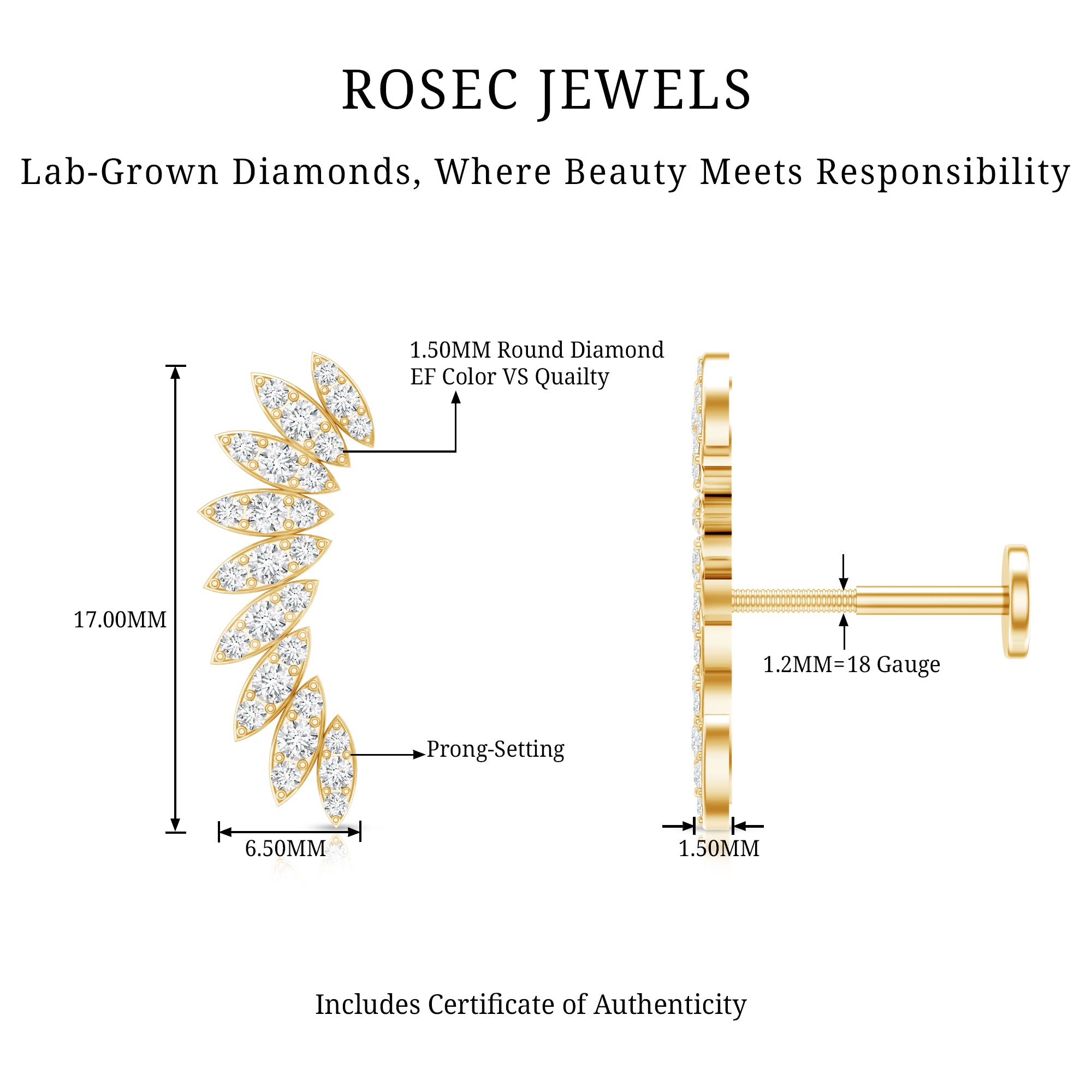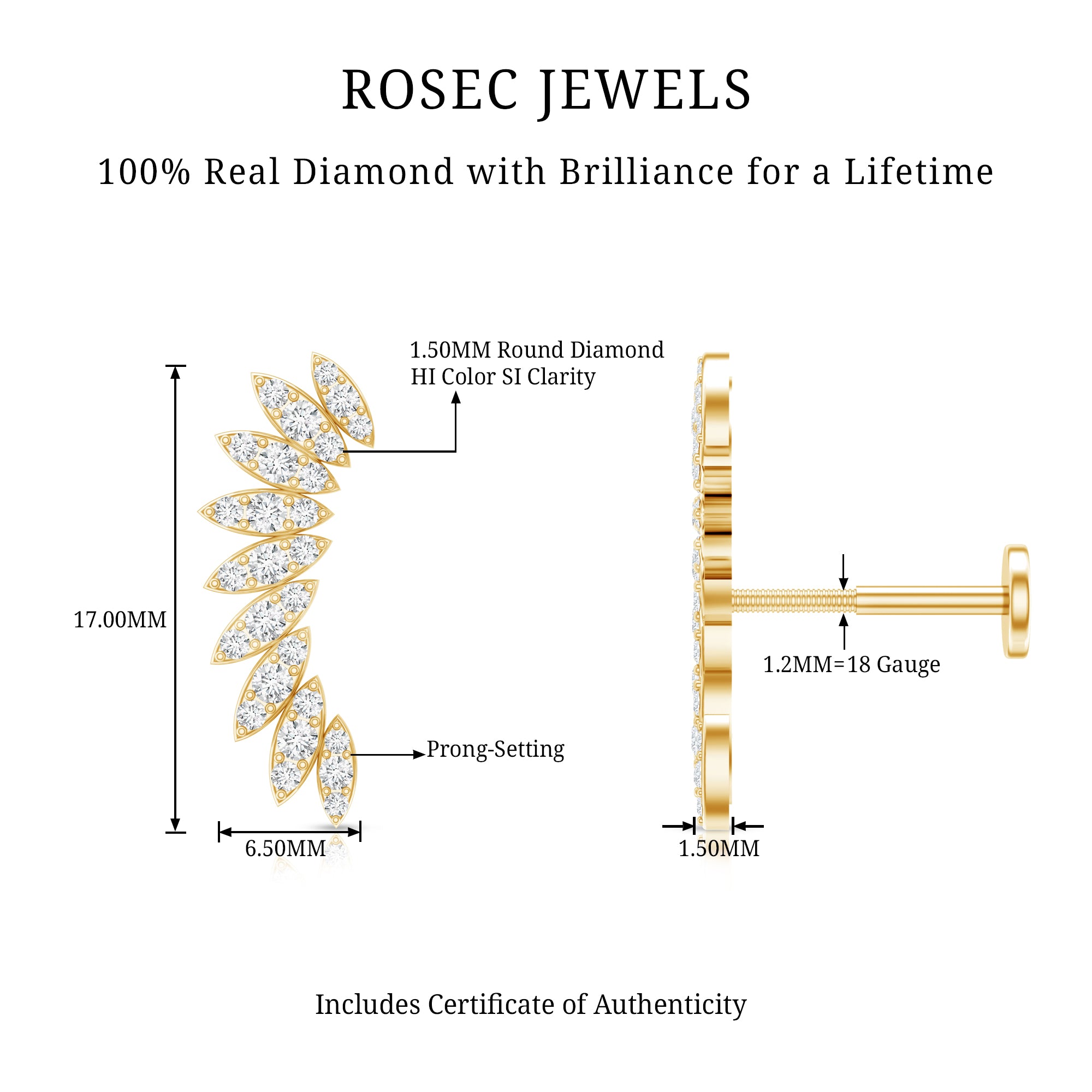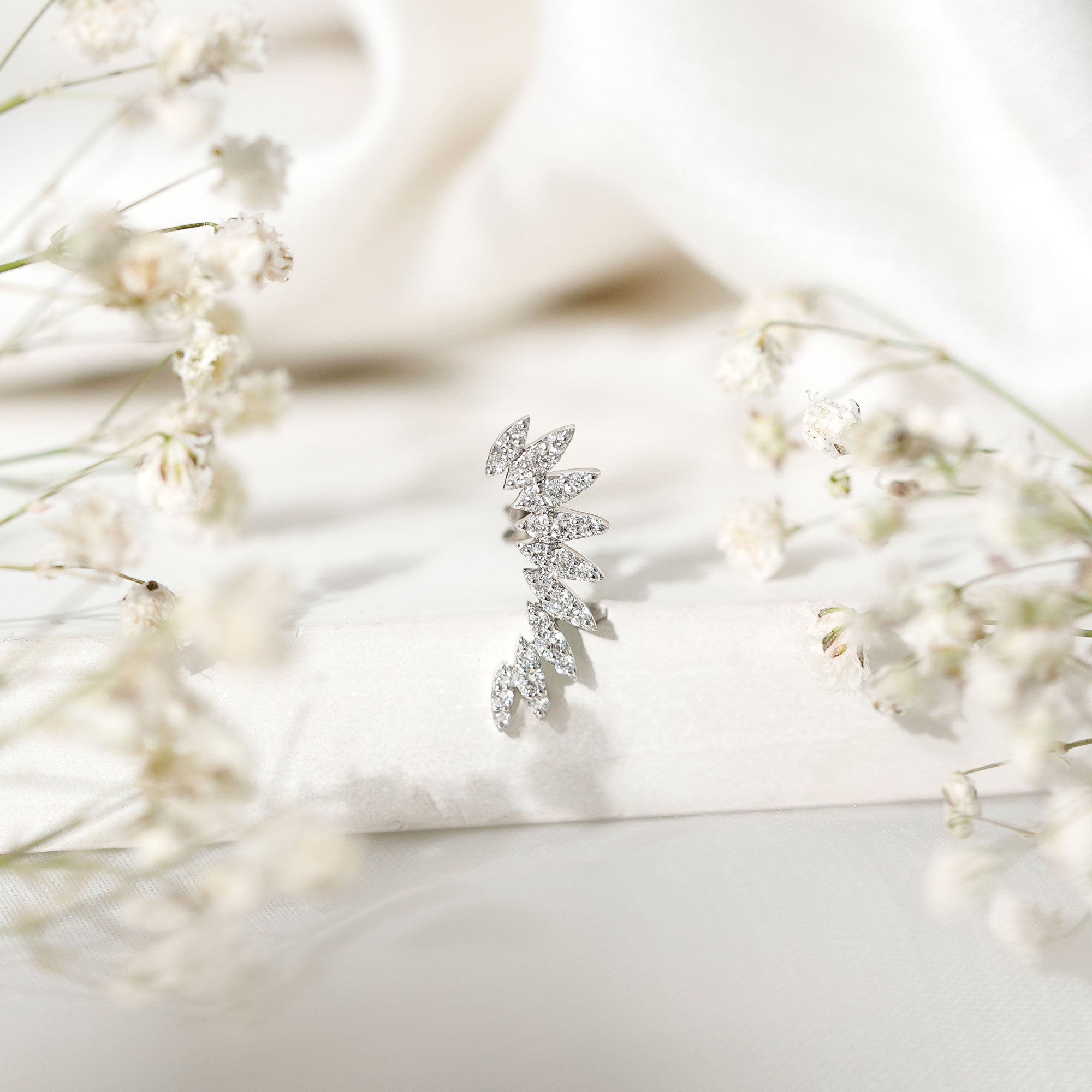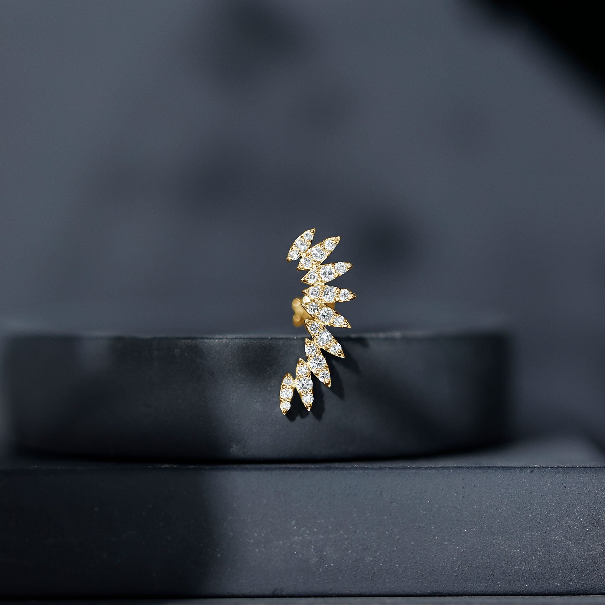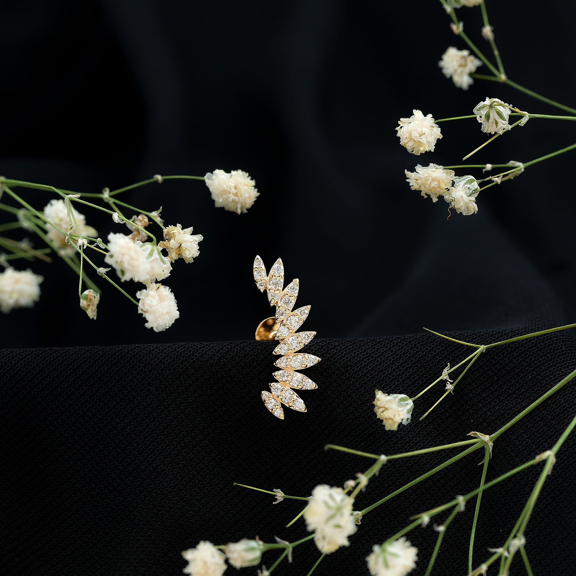 Check out this stunning Diamond Climber Earring, which is a fantastic addition to your ear stack. This earring showcases sparkling Diamonds arranged in marquise shapes, giving off a dazzling, eye-catching shine. Its unique wing-shaped design brings a special flair to your piercing collection, helping you stand out from the crowd. You can wear this Diamond Ear Piercing in various spots like Cartilage, Helix, and Upper lobe, allowing you to express your style with ease. This Diamond Wing Earring makes for an unforgettable gift to surprise your loved ones. You can pair it with your casual or party outfits to shine like a star. The Diamond Ear Crawler is the simplest way to elevate your style to new levels. It features a secure flat back closure, making it easy to wear and perfect for transitioning from day to night. For a trendy look, combine this Curved Earring with gemstone studs or drops. To enhance your special occasion, this Diamond Stud Earring comes in a premium storage box, ensuring a luxurious presentation for your gift.