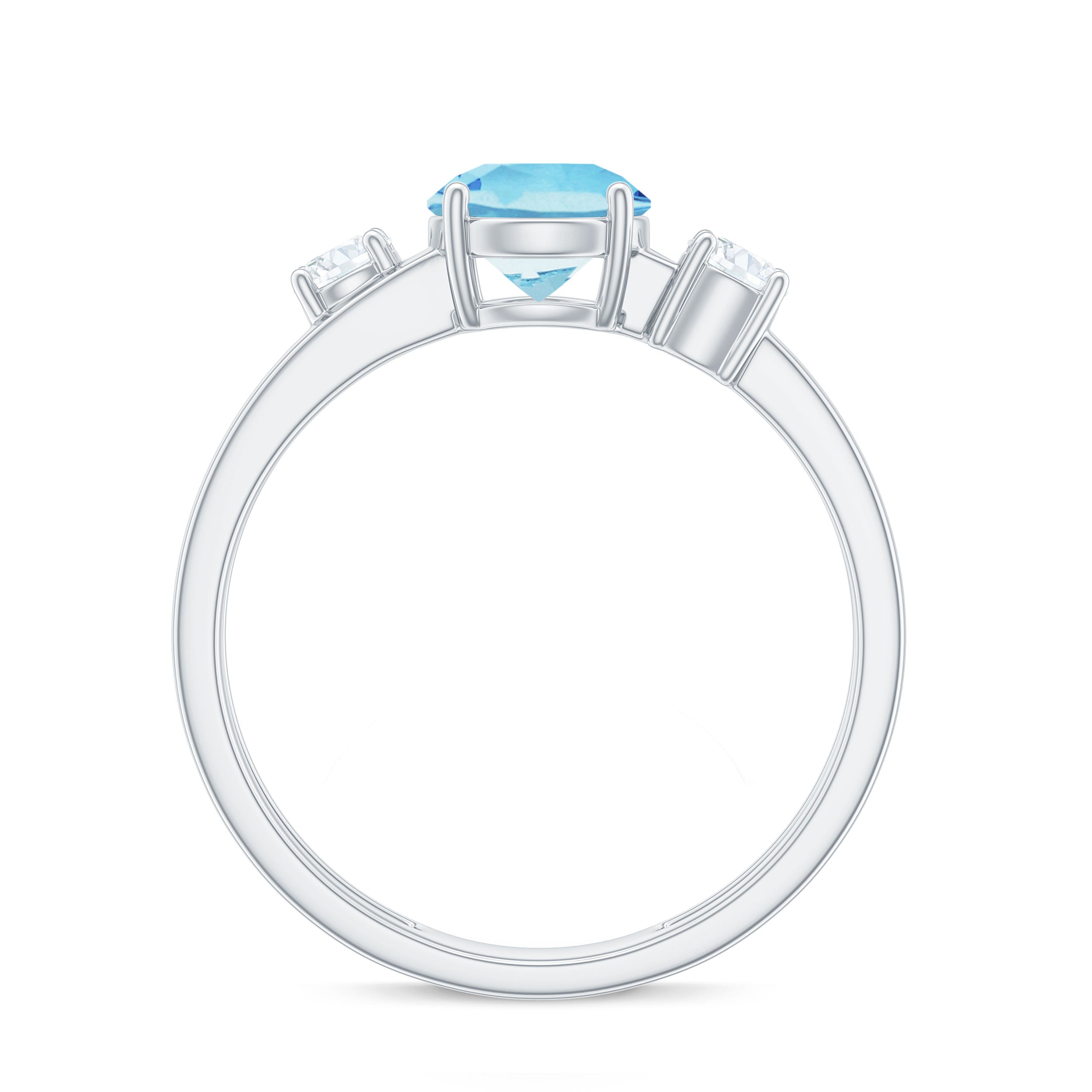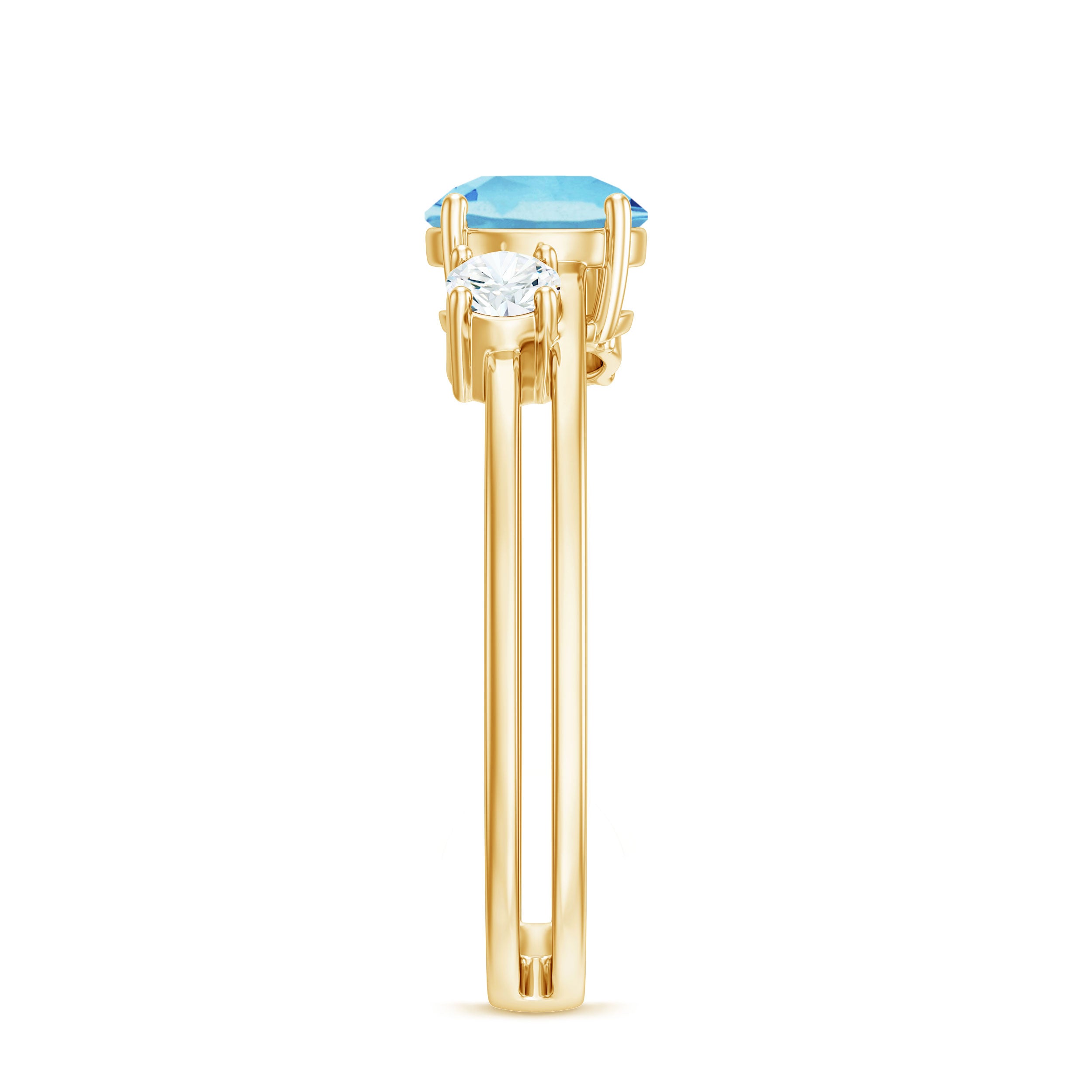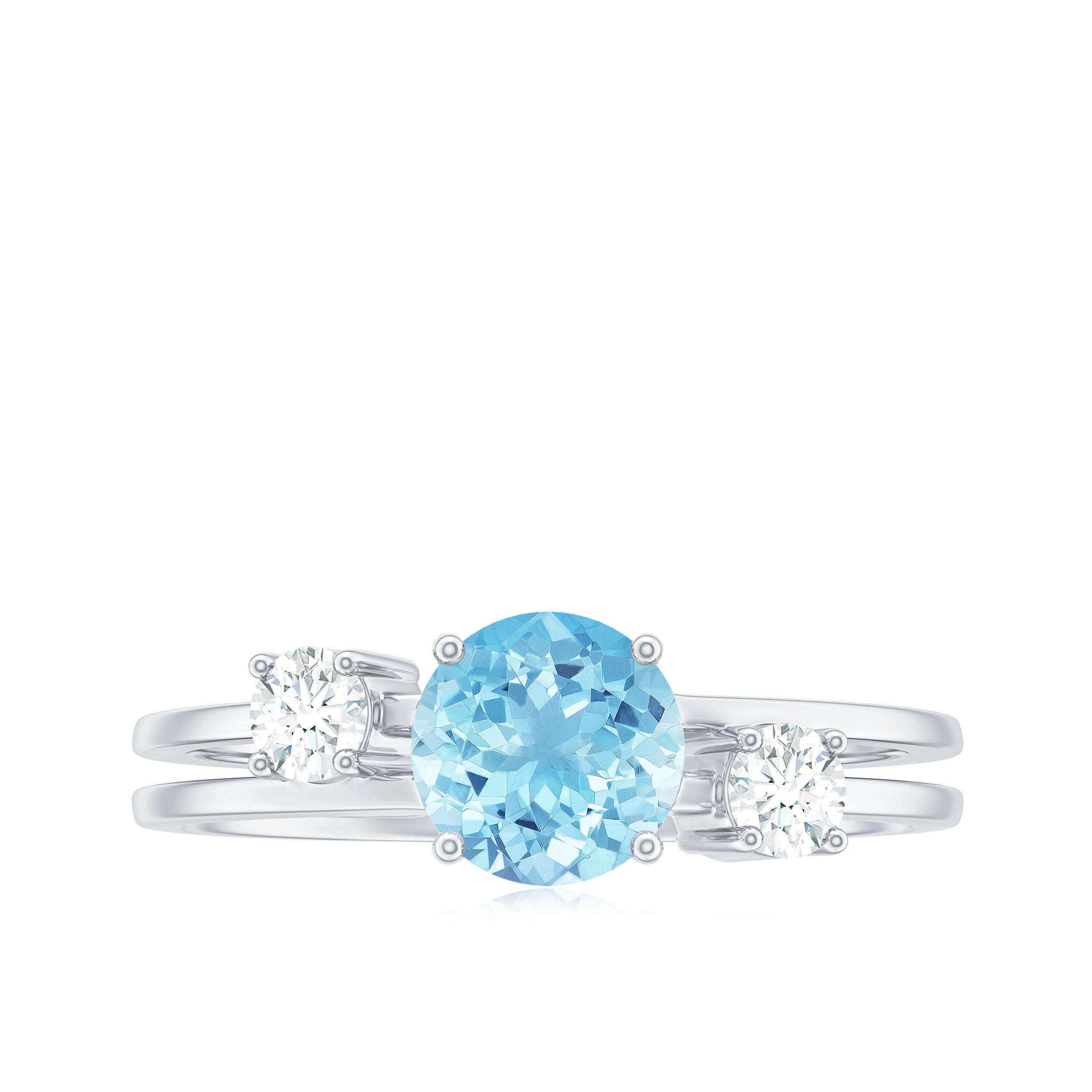 This stylish Double Band Engagement Ring is the perfect gift for someone you love. A round Aquamarine is set in a prong setting in the center of this engagement ring, along with a round Diamond. This Aquamarine Engagement Ring is made from gold metal.