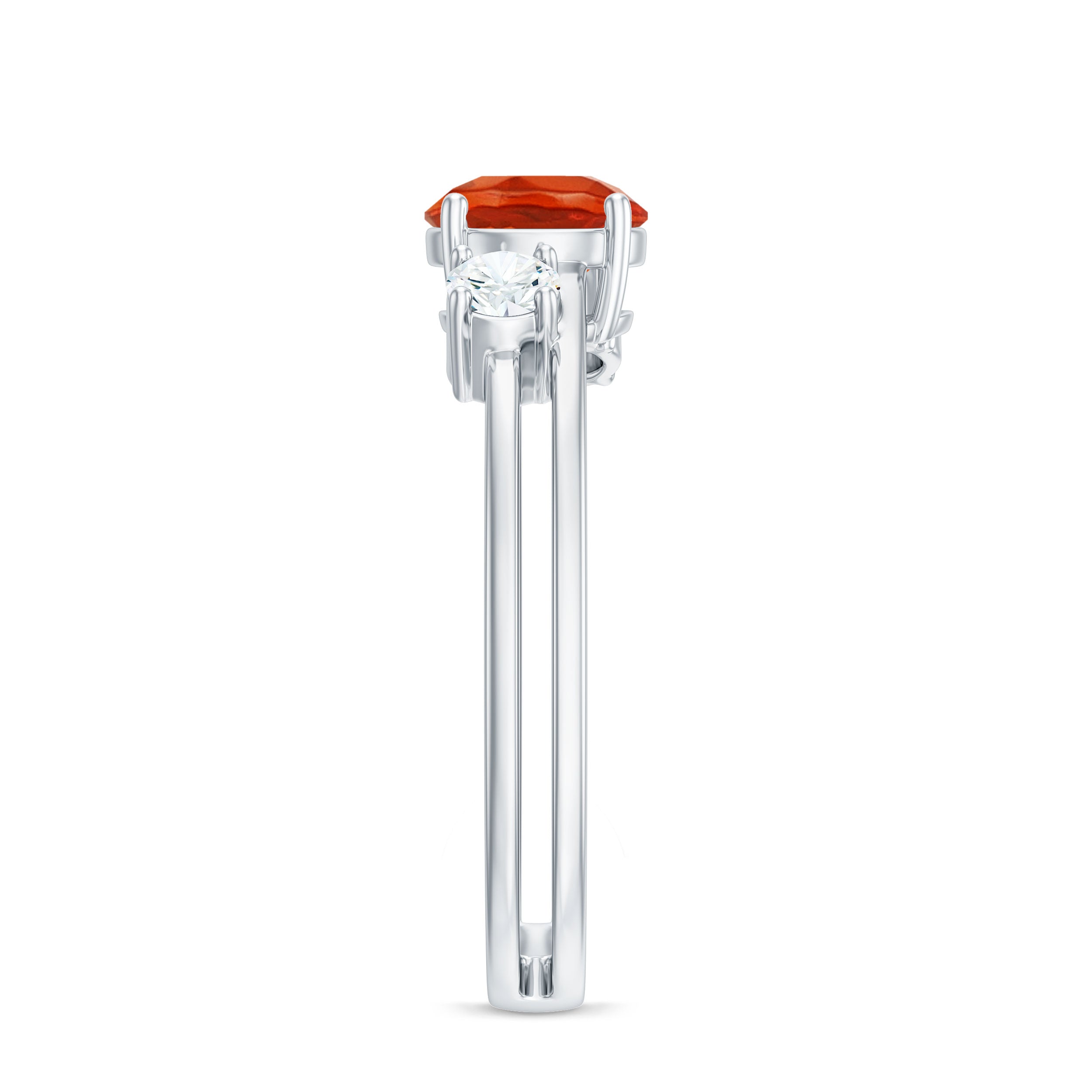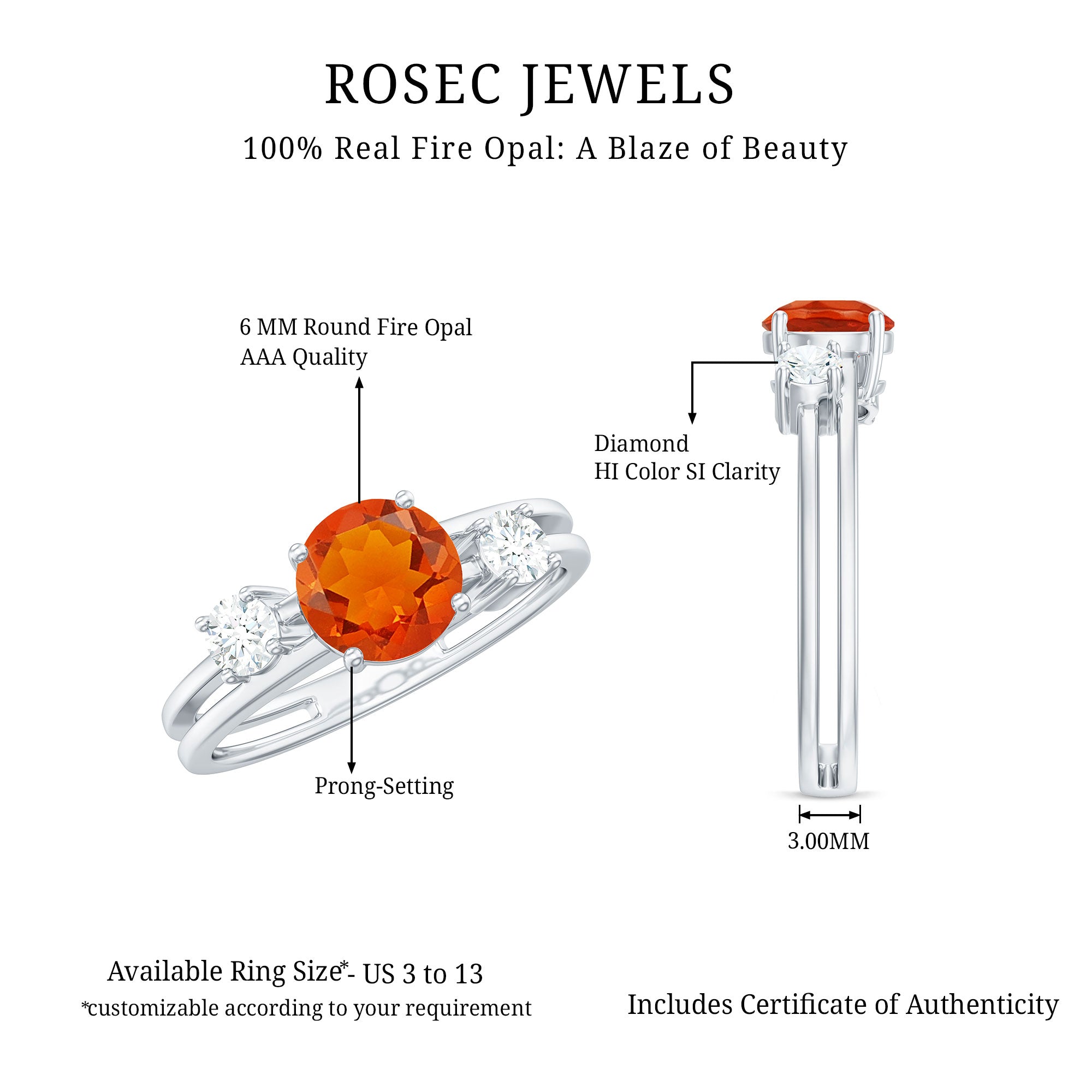 Double Band Engagement Ring with Fire Opal and Diamond