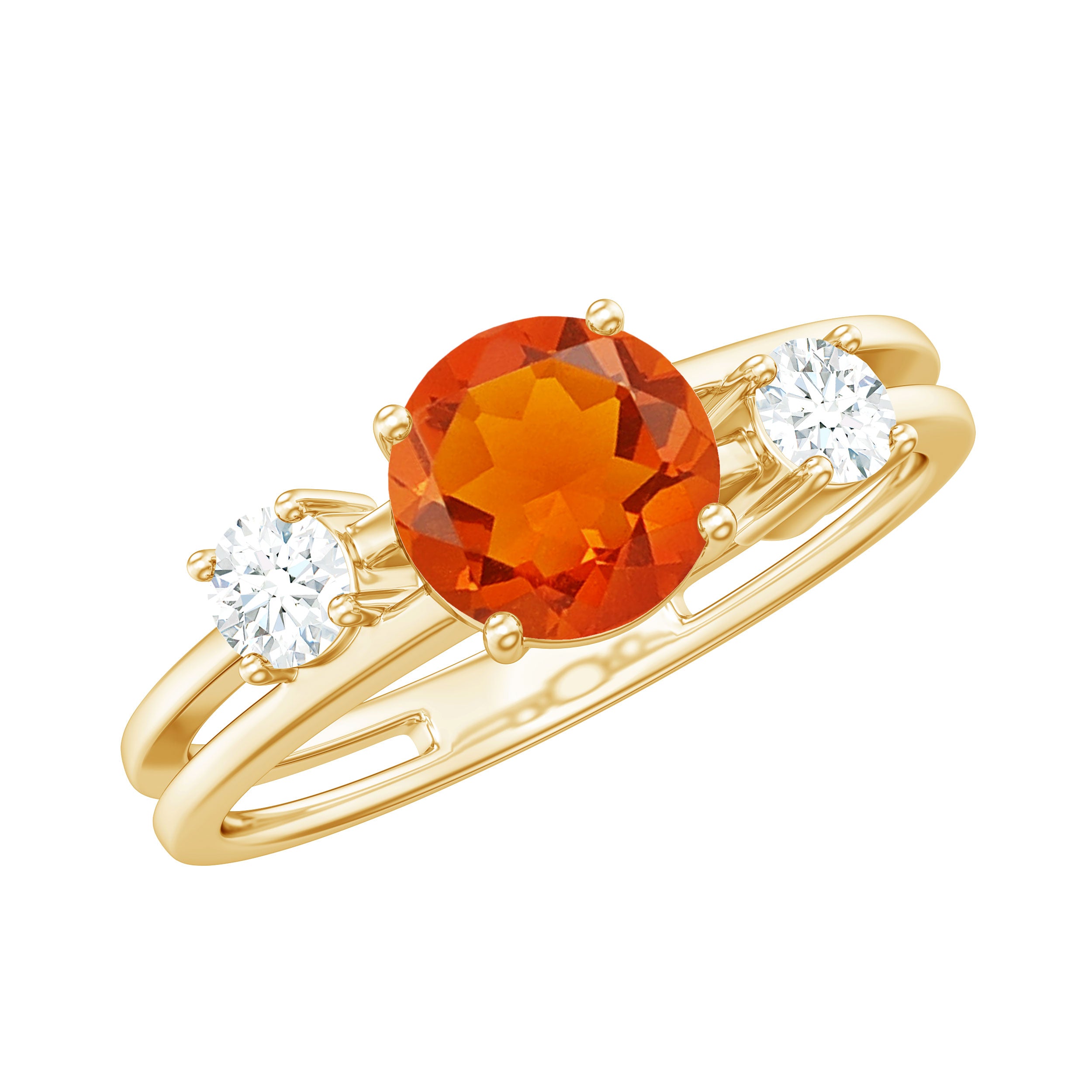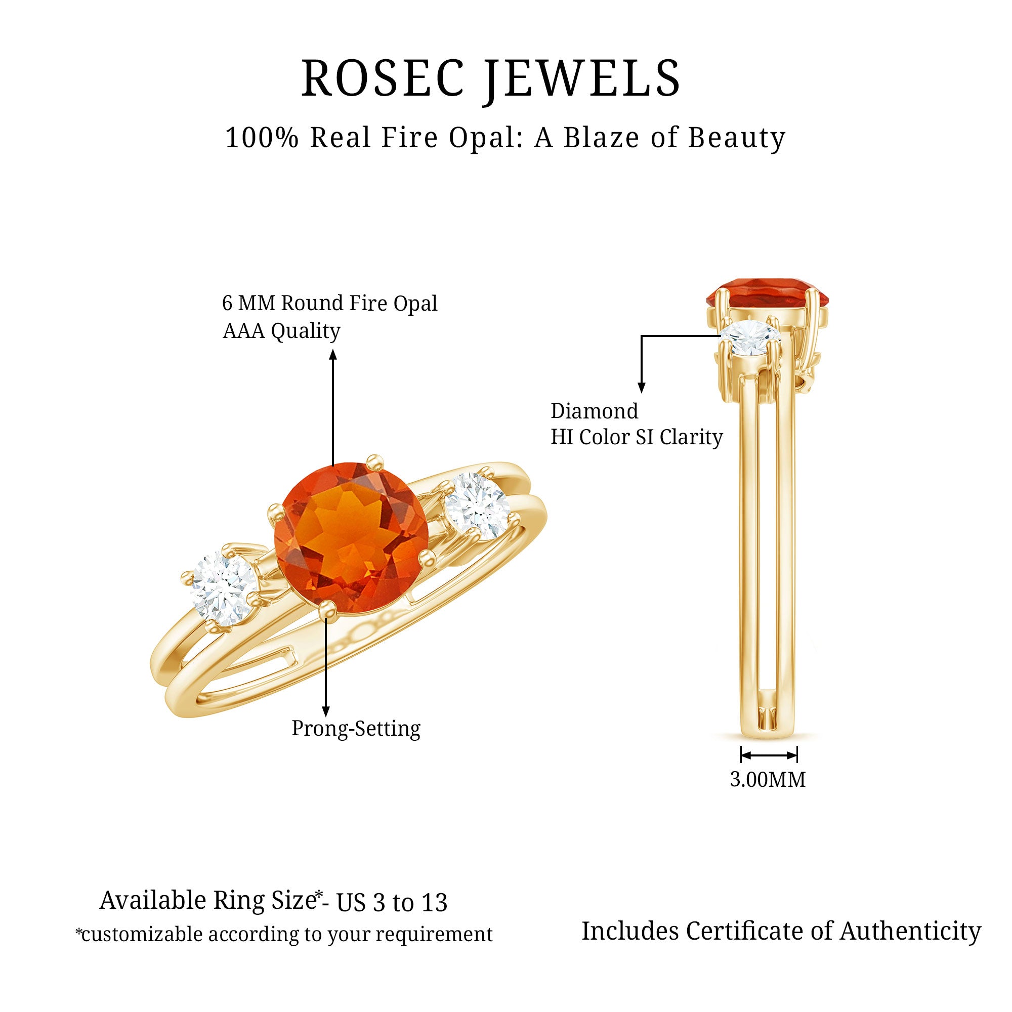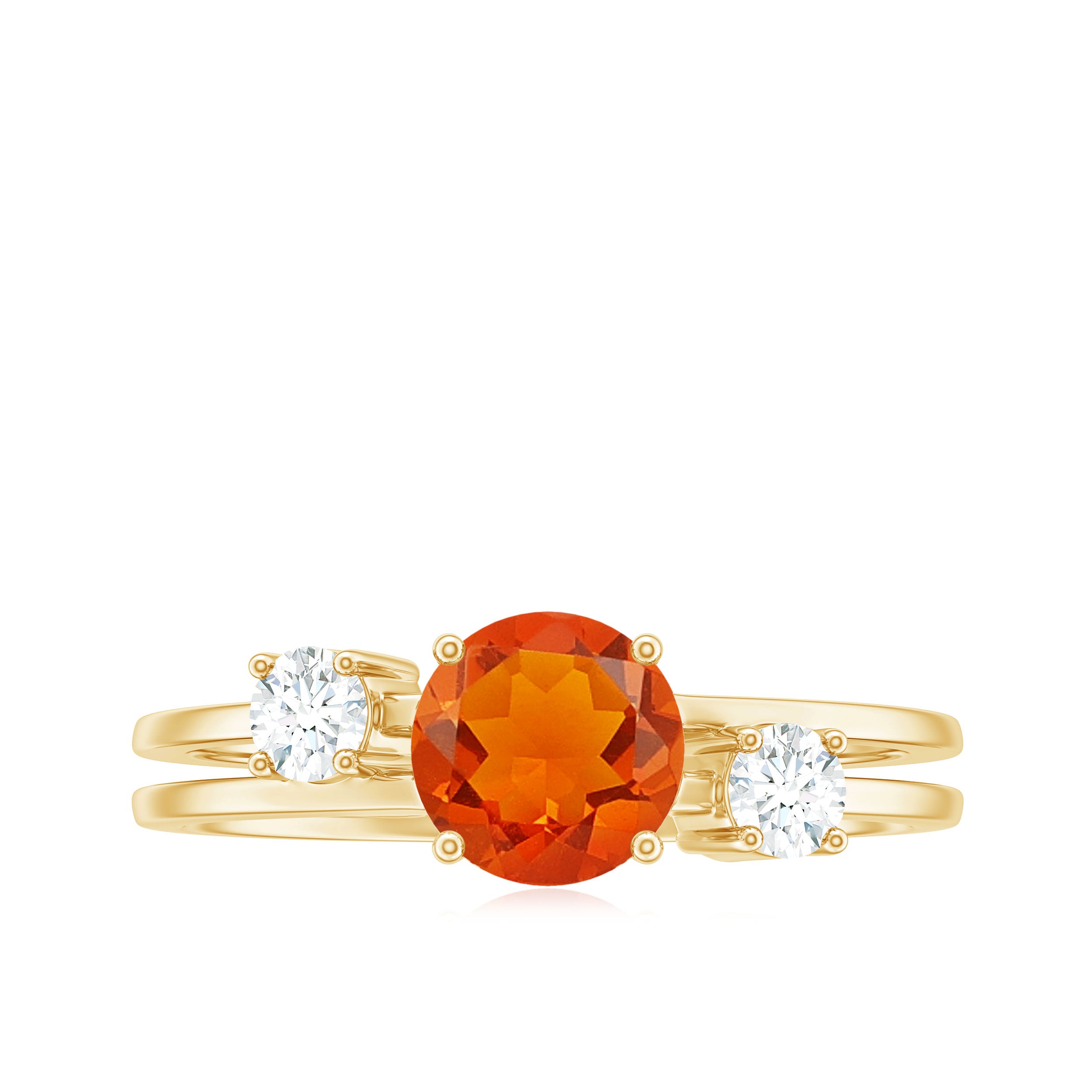 This stylish Double Band Engagement Ring is the perfect gift for someone you love. A round Fire Opal is set in a prong setting in the center of this engagement ring, along with a round Diamond. This Fire Opal Engagement Ring is made from gold metal.
