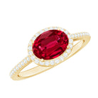 East West Set Lab Grown Ruby Oval Engagement Ring with Diamond