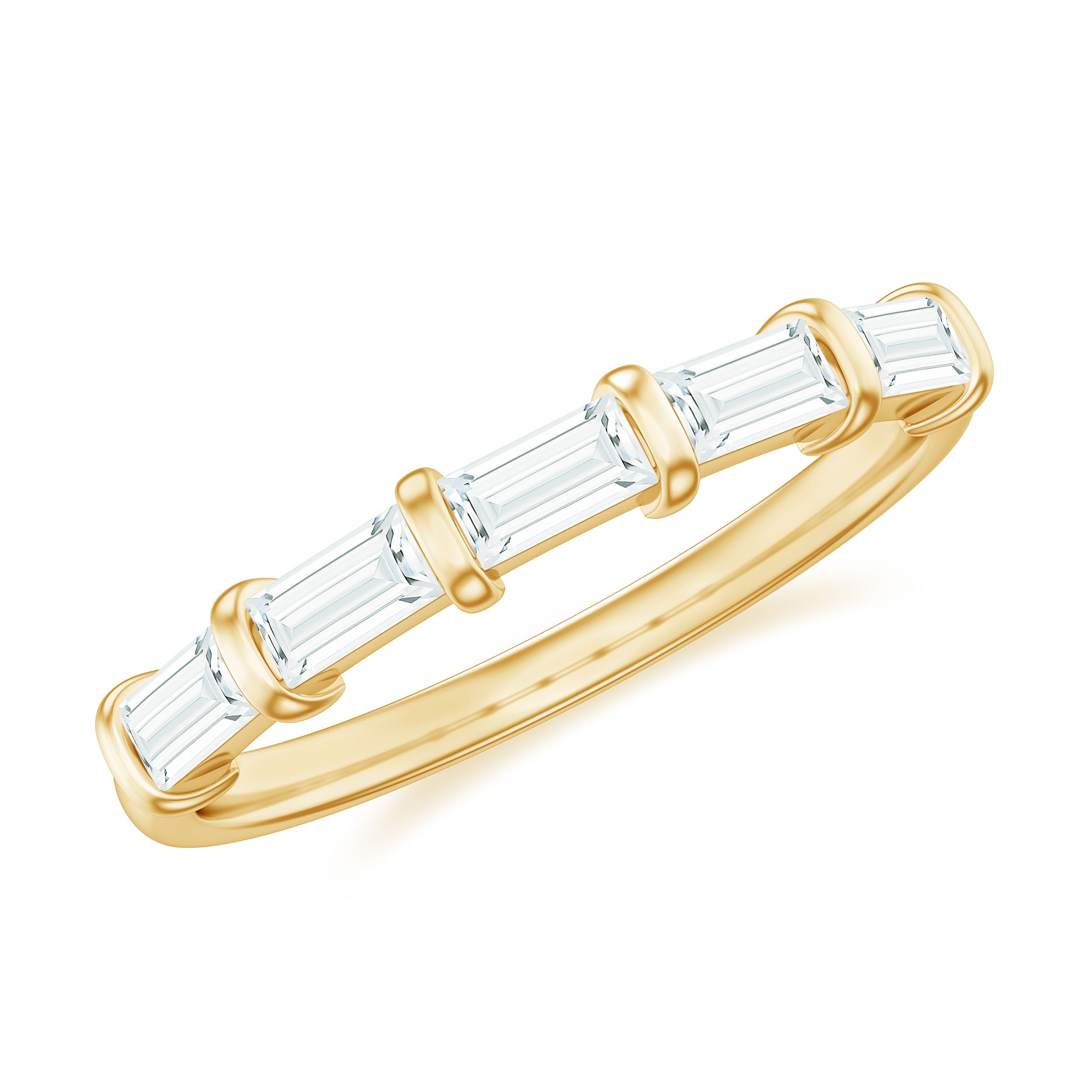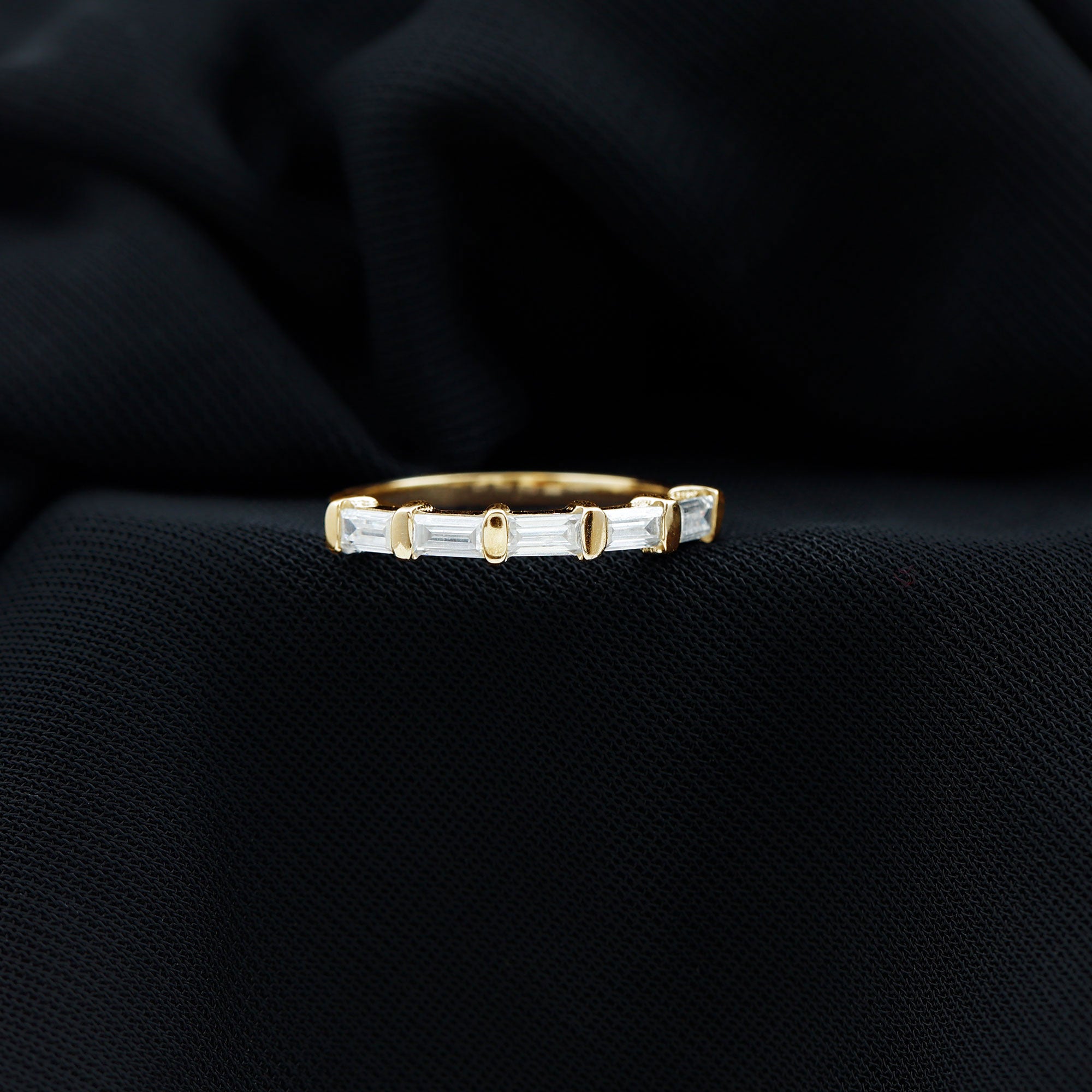 This Moissanite Half Eternity Ring is a remarkable representation of beauty, exuding elegance that holds deep significance alongside its breathtaking appearance. It symbolizes an unbreakable commitment to togetherness and remains stylish, featuring a Half Eternity design that is exquisitely adorned with east-west set Baguette brilliant cut Moissanite in Bar Setting. This Minimalist Moissanite Ring serves as both a modern and timeless choice, demonstrating that elegance can break the mold. The brilliant sparkle of D-VS1 Quality Moissanite is rich in meaning, making it a considerate gift for those memorable occasions. As a treasured reminder of your unwavering love, this Eternity Wedding band displays a shimmering line of moissanites that signify love glowing brightly. Whether for a bride or your significant other, this Moissanite Stackable Ring is a present she will cherish for many years. You can pair it with an engagement ring, a wedding band, or wear it alone for a sleek appearance, the decision is entirely yours. Additionally, it is an excellent choice for daily wear, seamlessly blending with both traditional and contemporary jewelry collections.