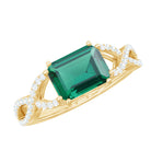 East West Style Lab Grown Emerald Cut Emerald Engagement Ring with Diamond