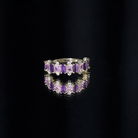 Elegant Amethyst and Created Pink Sapphire Half Eternity Band Ring with Diamond
