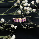 Impress her with this stunning Vibrant Multicolored Half Eternity Band, featuring a captivating combination of amethyst, lab-created pink sapphire, and Diamond. The band ring is designed to turn heads, with its alluring gemstones elegantly arranged in a Half Eternity Band. Expertly crafted from high-quality solid gold, this Elegant Semi Eternity Ring is a perfect gift for your special someone, adding a touch of glamour and sophistication to any occasion.
