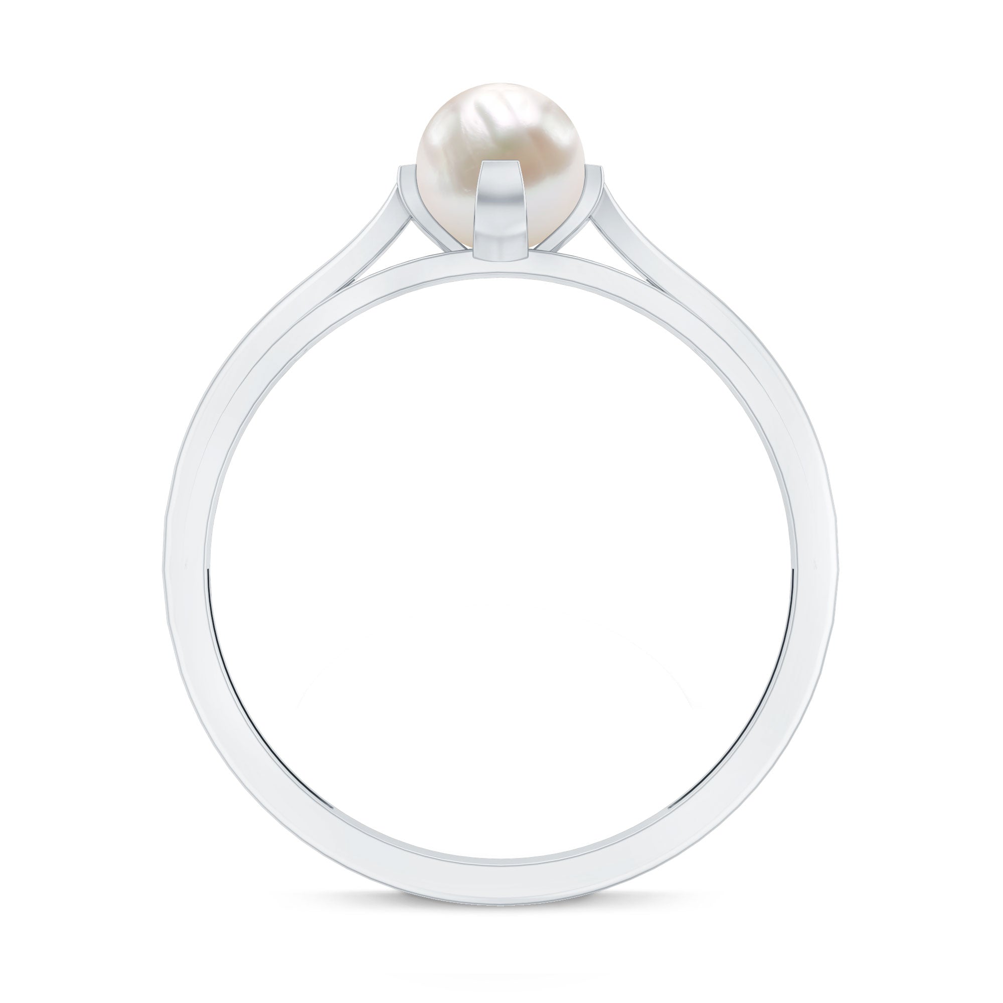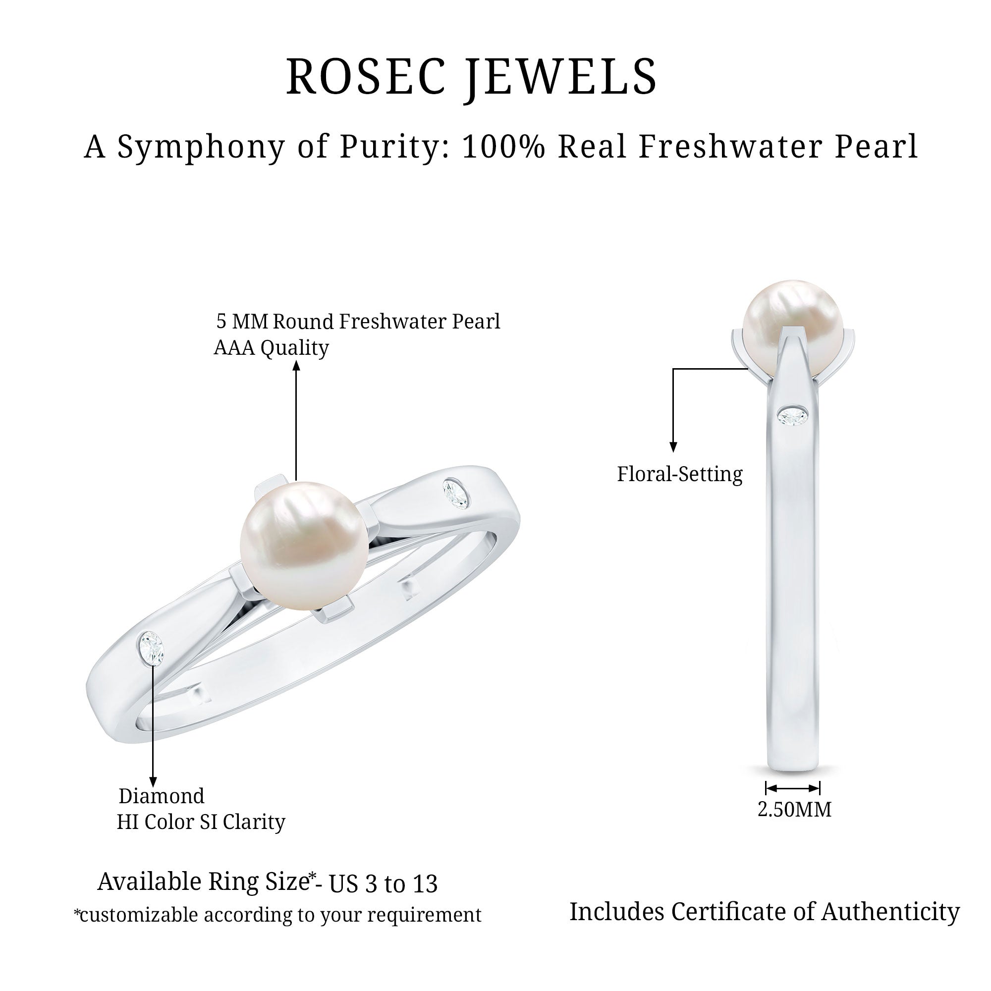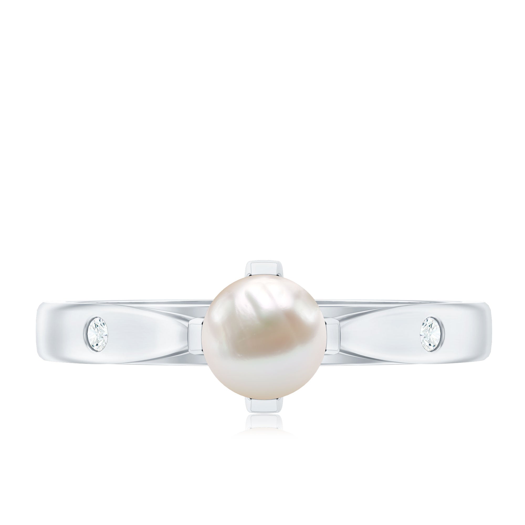 Elegant Bead Set Freshwater Pearl Solitaire Promise Ring with Diamond
