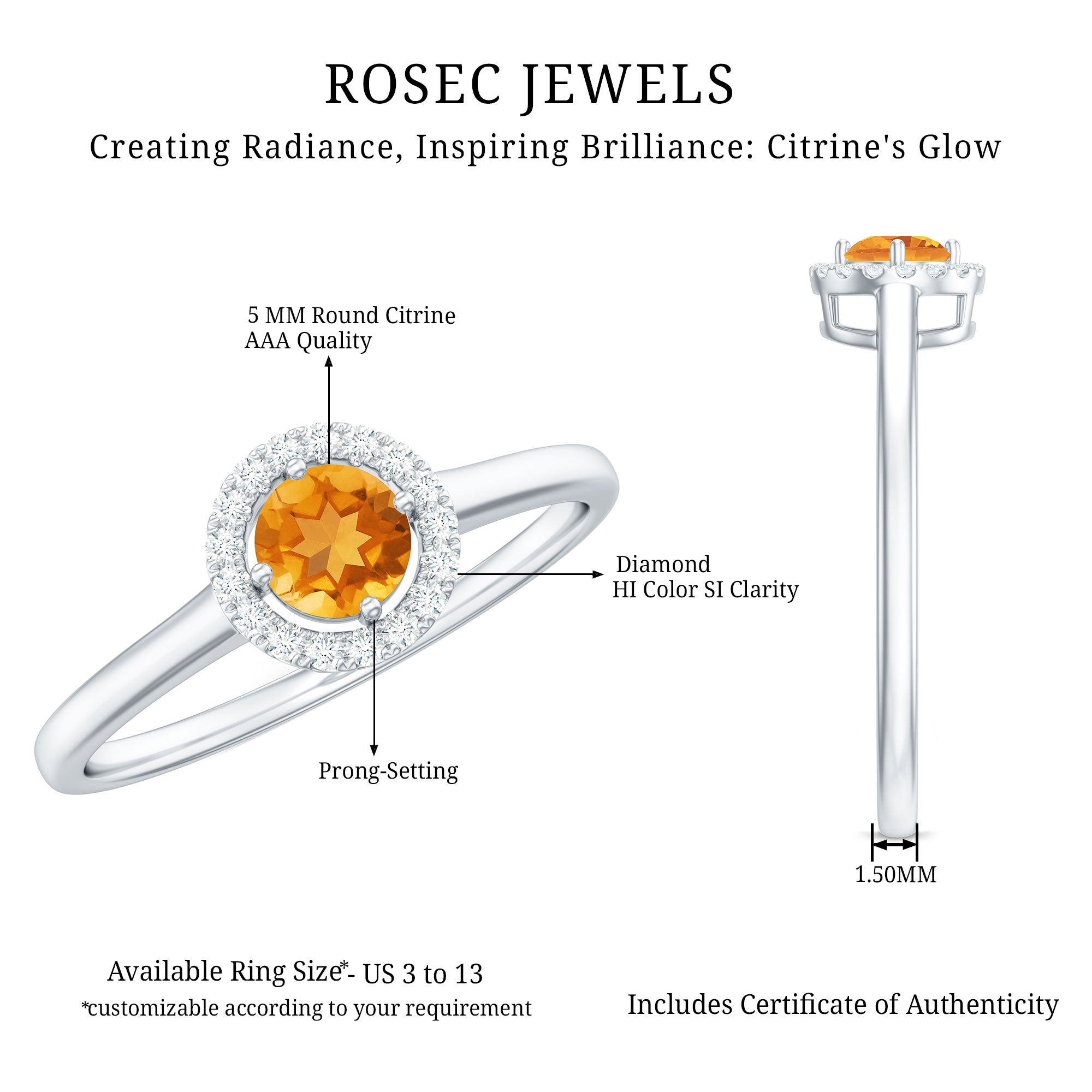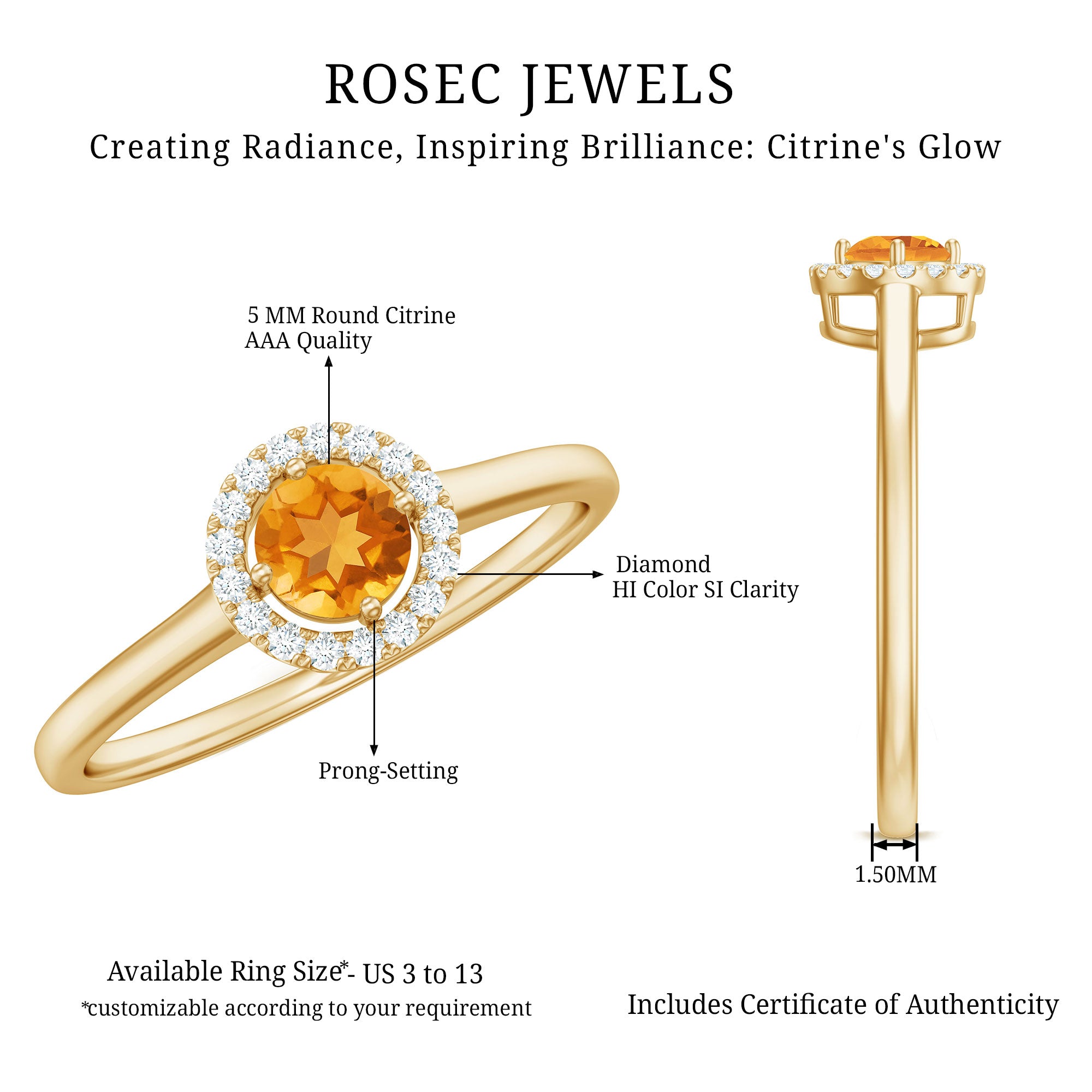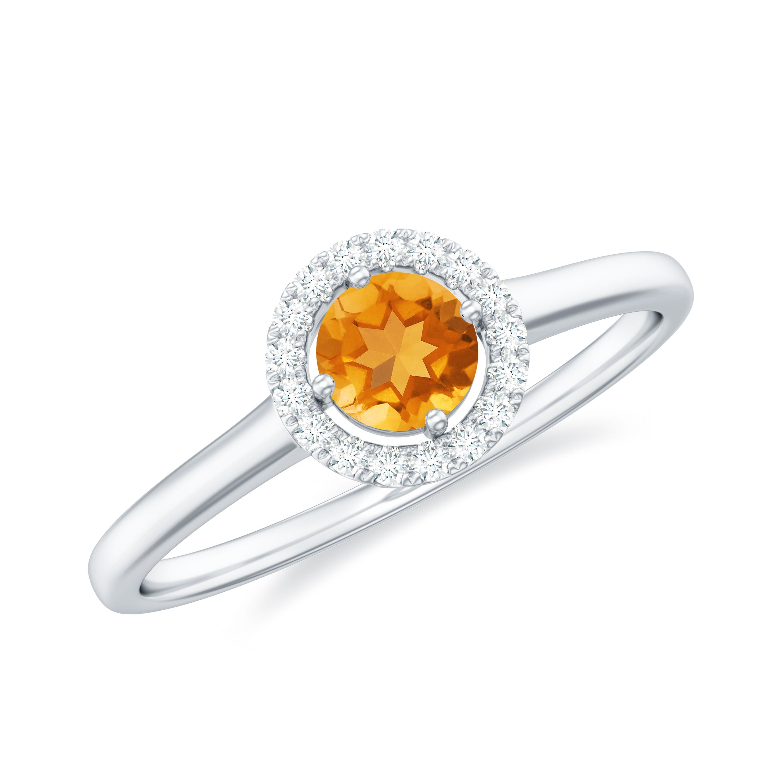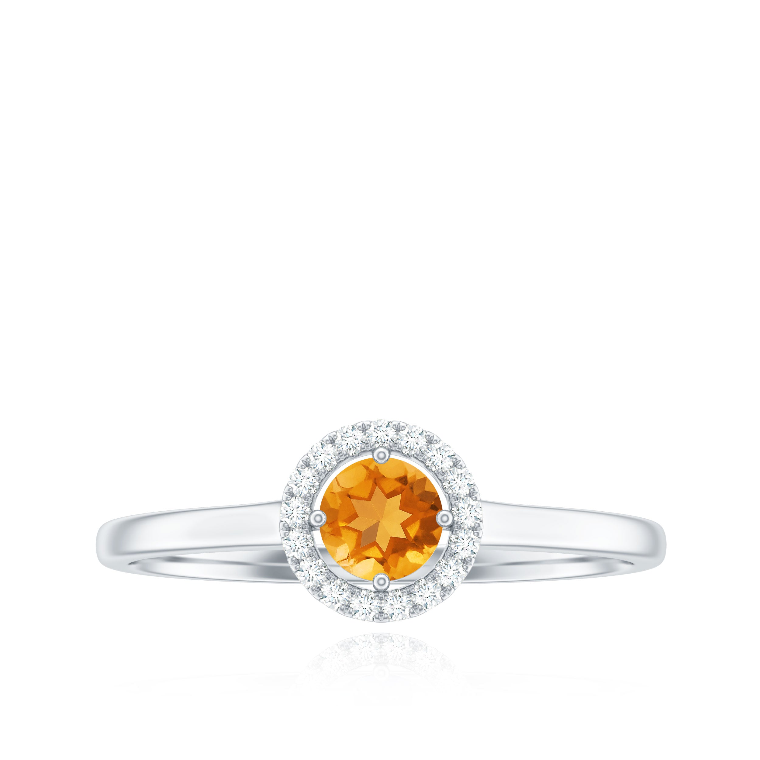 Make this day unforgettable by gifting your sweetheart this dainty halo ring. With its 5 MM round-cut citrine set in a floating halo of Diamond stones, its sure to complete her look and suit her style.