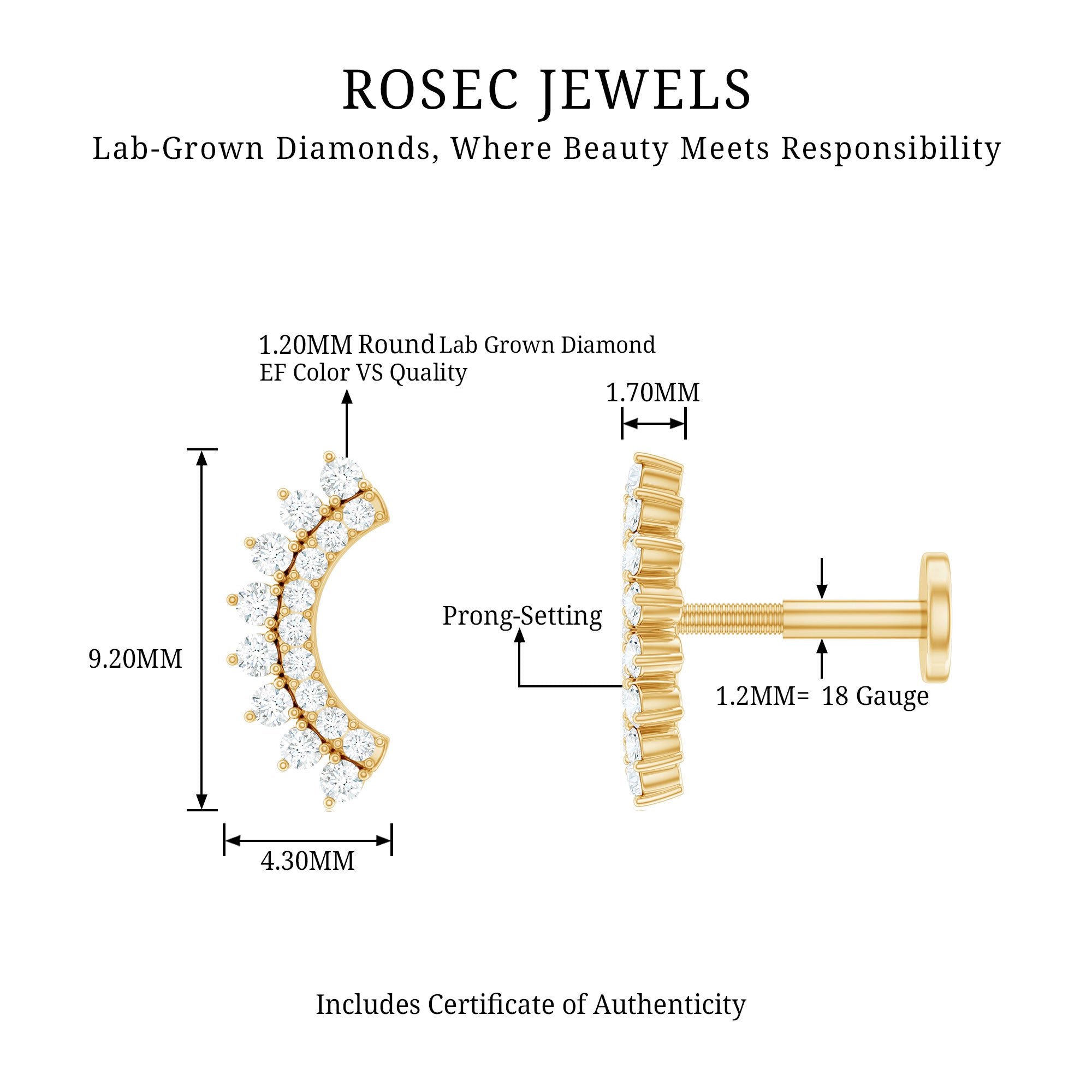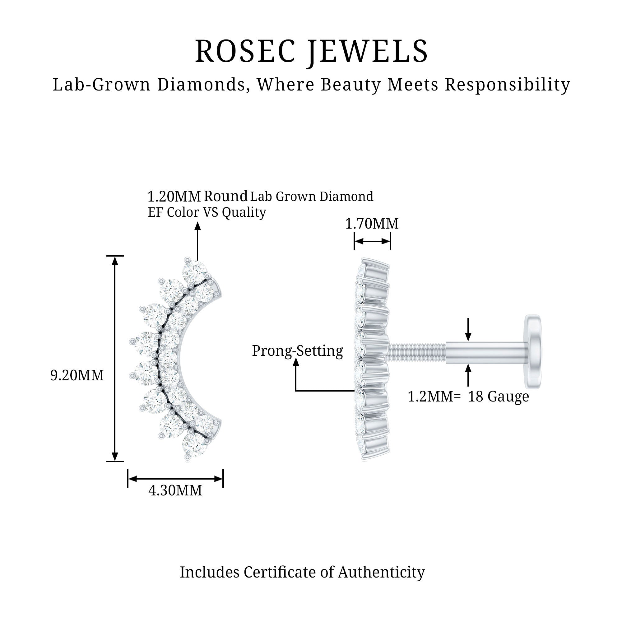 Certified Diamond Curved Cartilage Earring