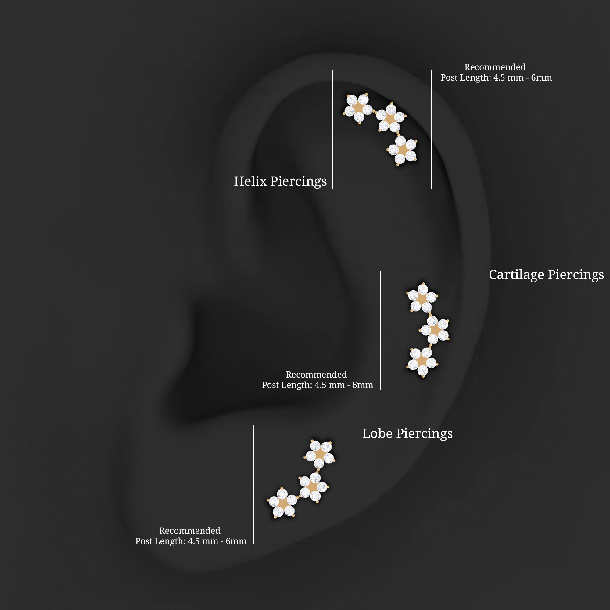 - You can simply adorn this Gold Flower Earring on your Helix, Cartilage, Upper Lobe, and Conch Piercing.