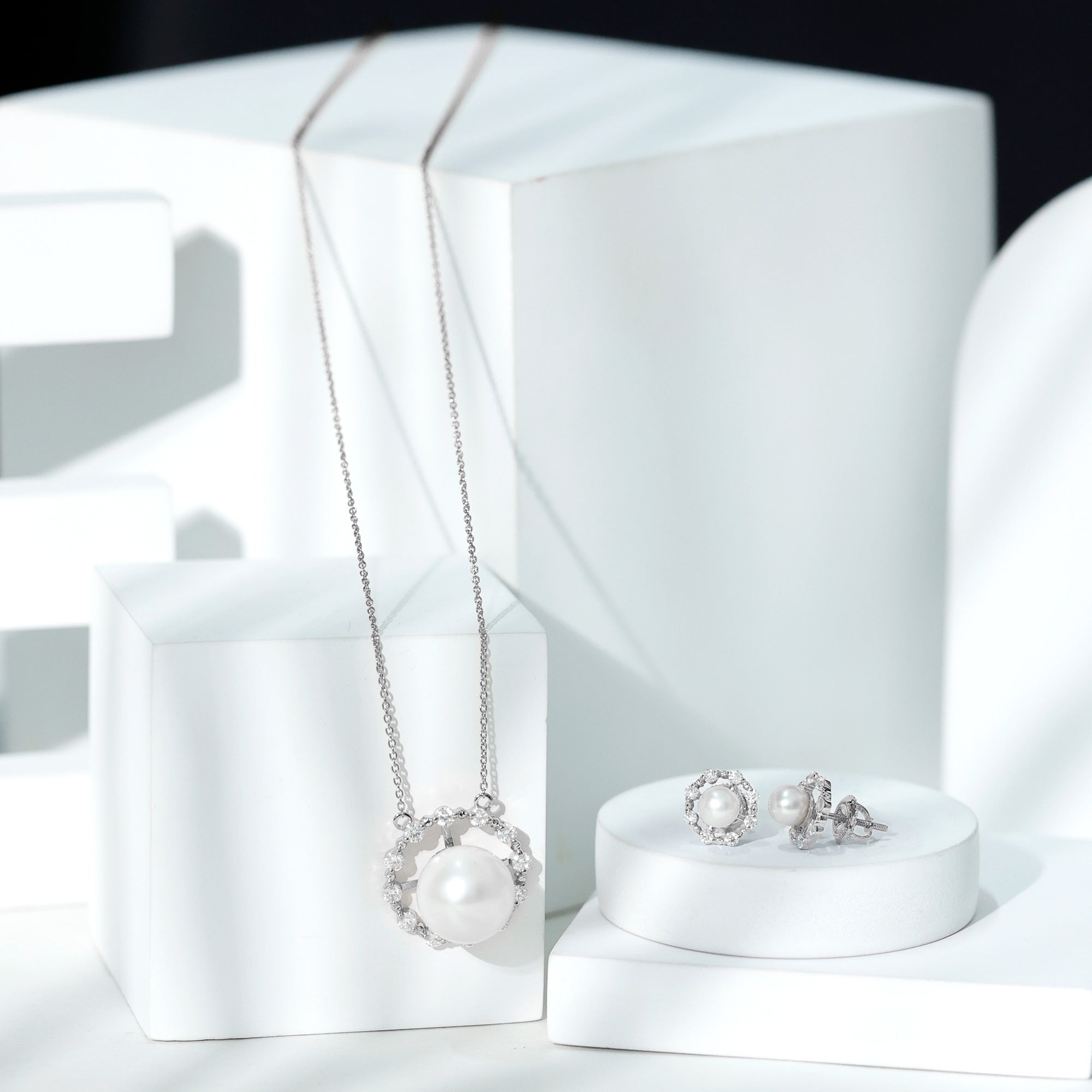 Elegant Freshwater Pearl Jewelry Set with Moissanite