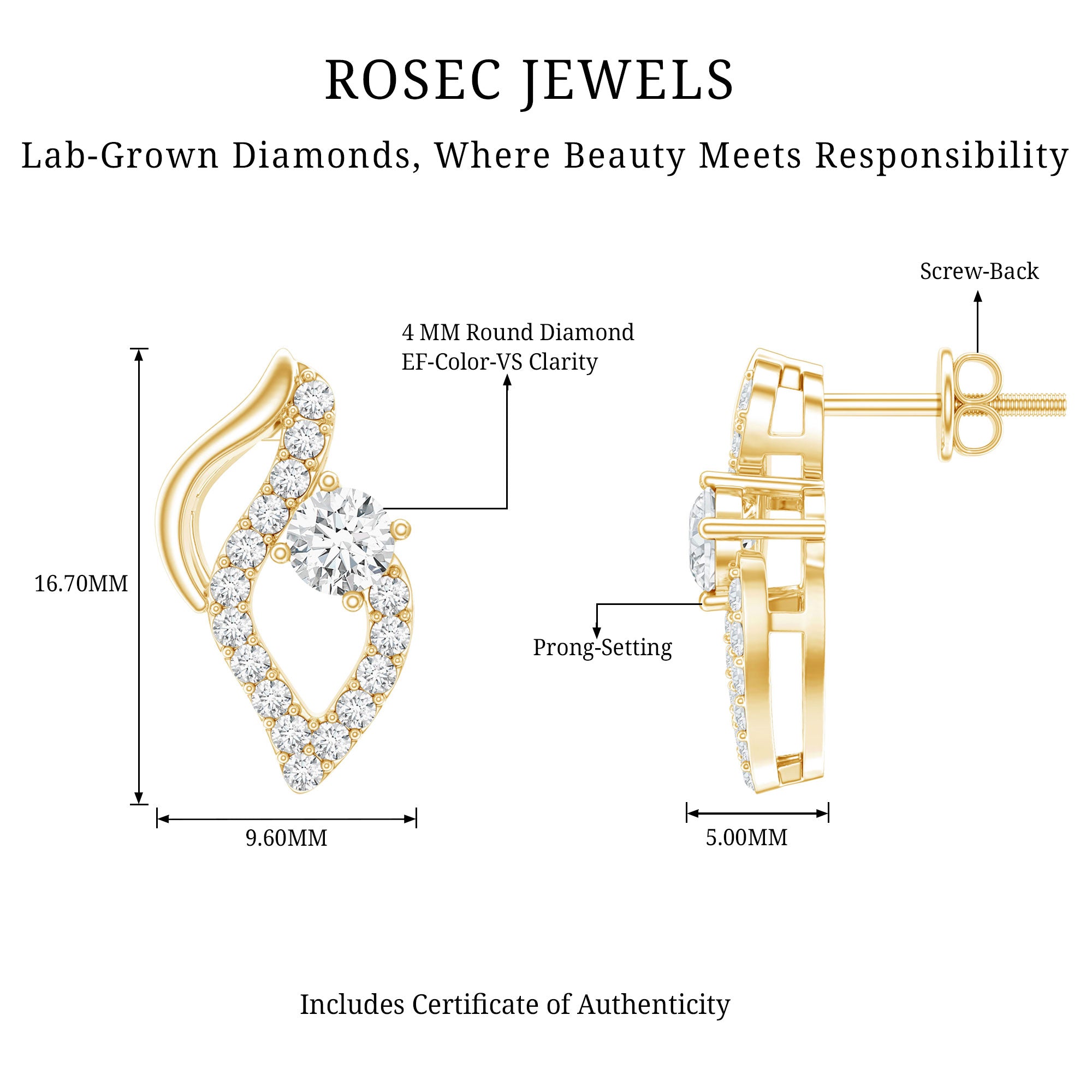 Secured with Screw Back Closure, these Ef-Vs quality Diamond Earrings epitomize timeless sophistication. Meticulously crafted, these Unique Stud Earrings feature gleaming Round Shape Diamond gemstones that exude modern elegance. These Diamond Stud Earrings (Synthetic) will perfectly go with your both casual or formal outfits. Exclusively from Rosec Jewels, where craftsmanship meets conscience in every dazzling creation. Our April Birthstone Earrings come in a signature jewelry box, make your special ones feel happier than ever by presenting them these Designer Earrings as a birthday gift, mothers day gift, anniversary gift, Valentines Day gift.