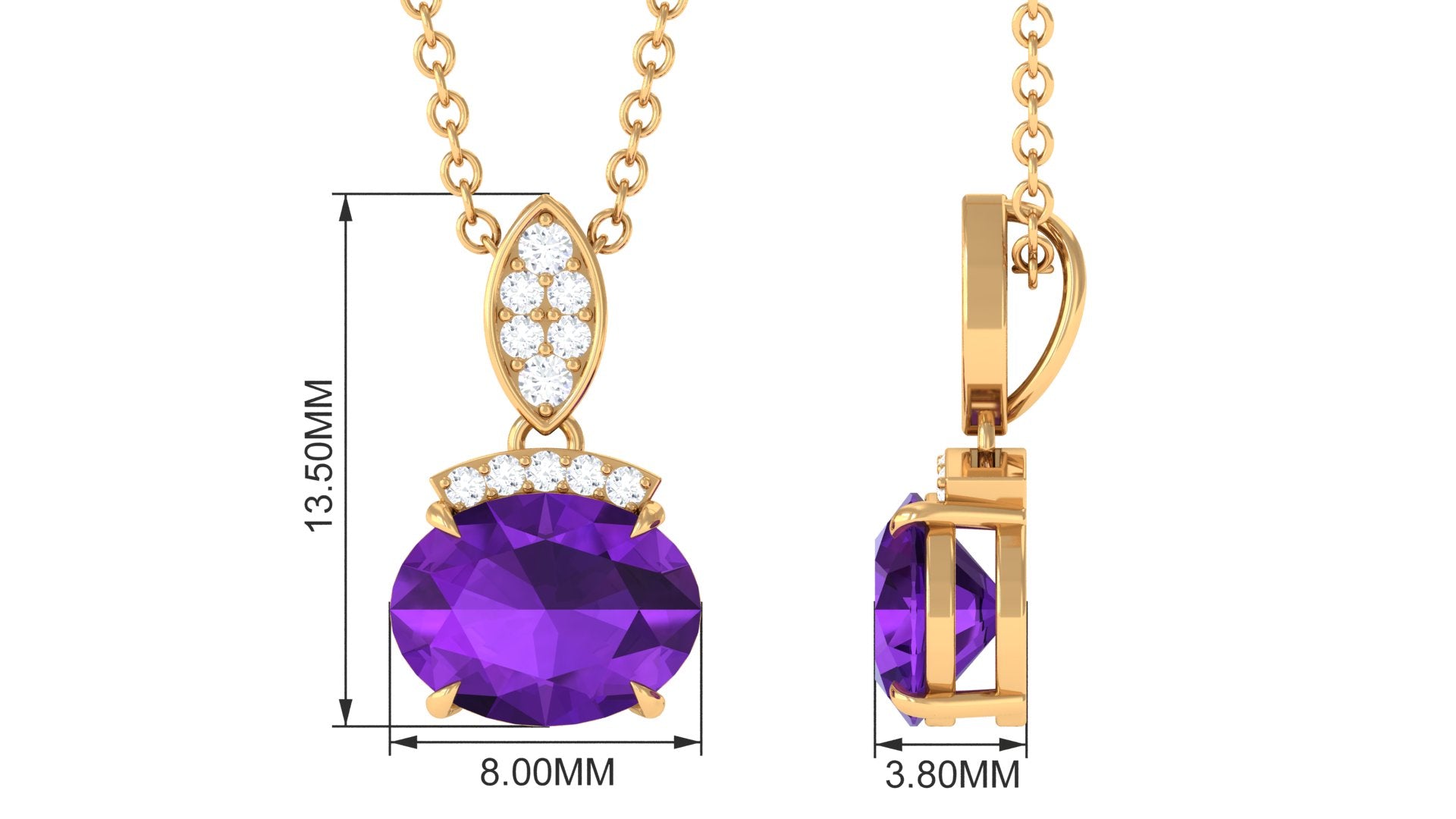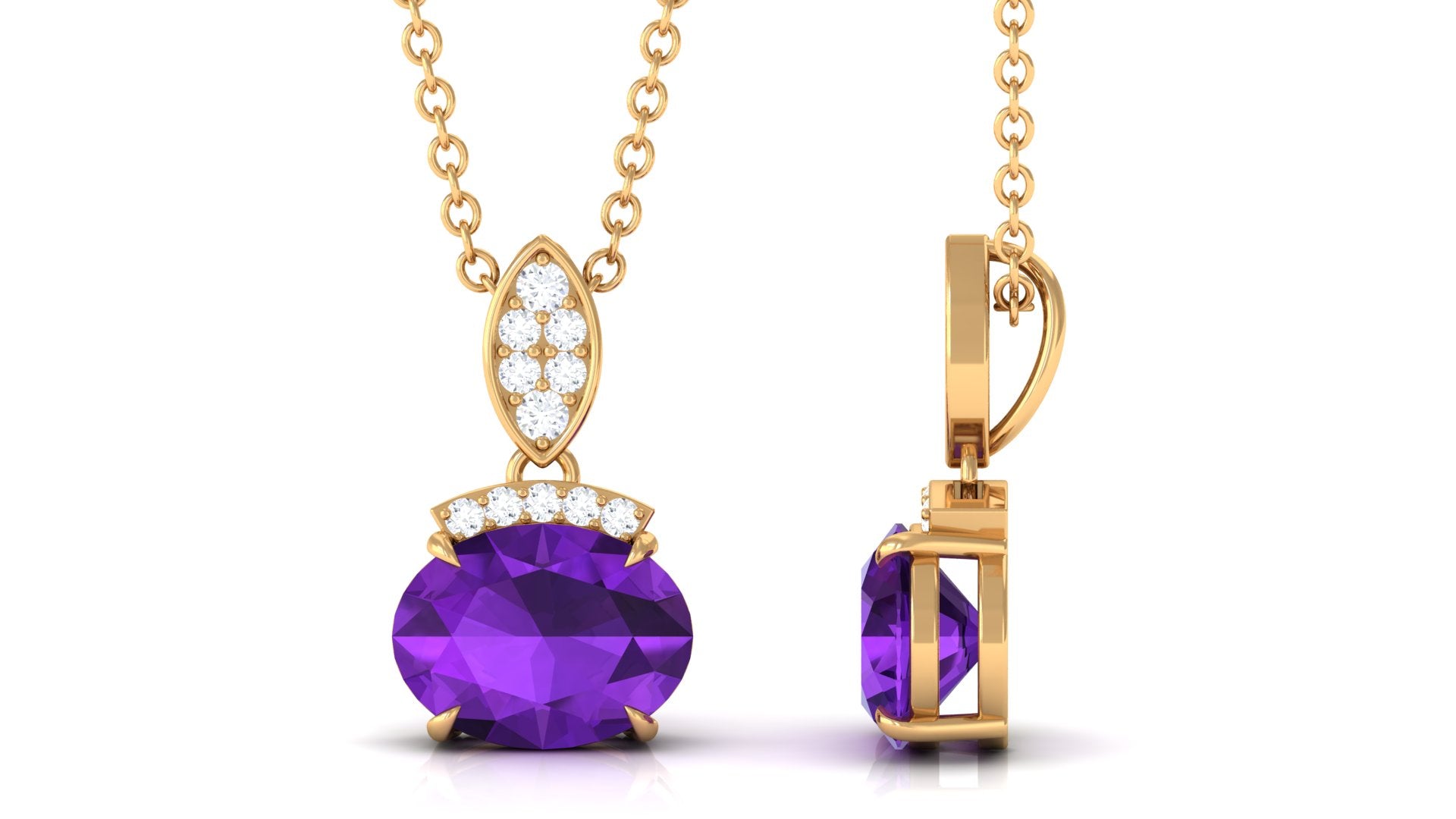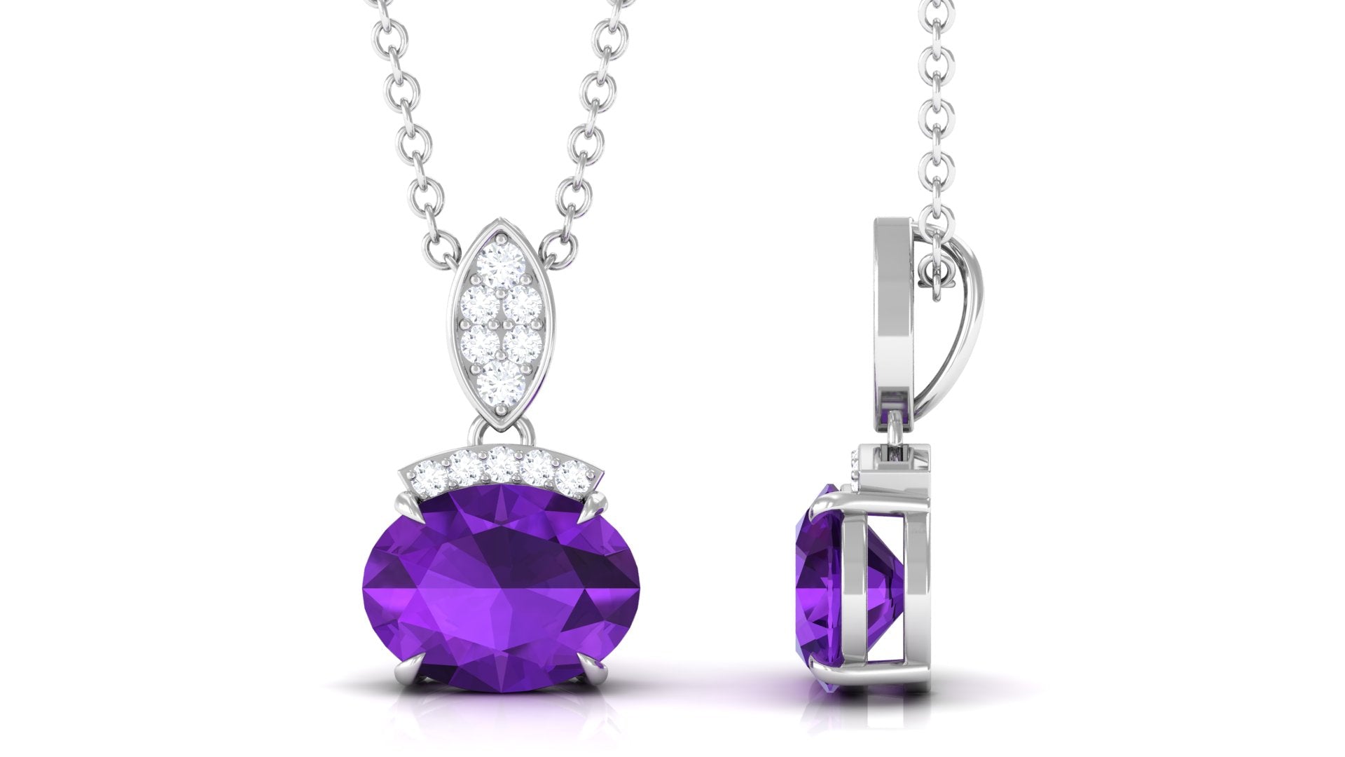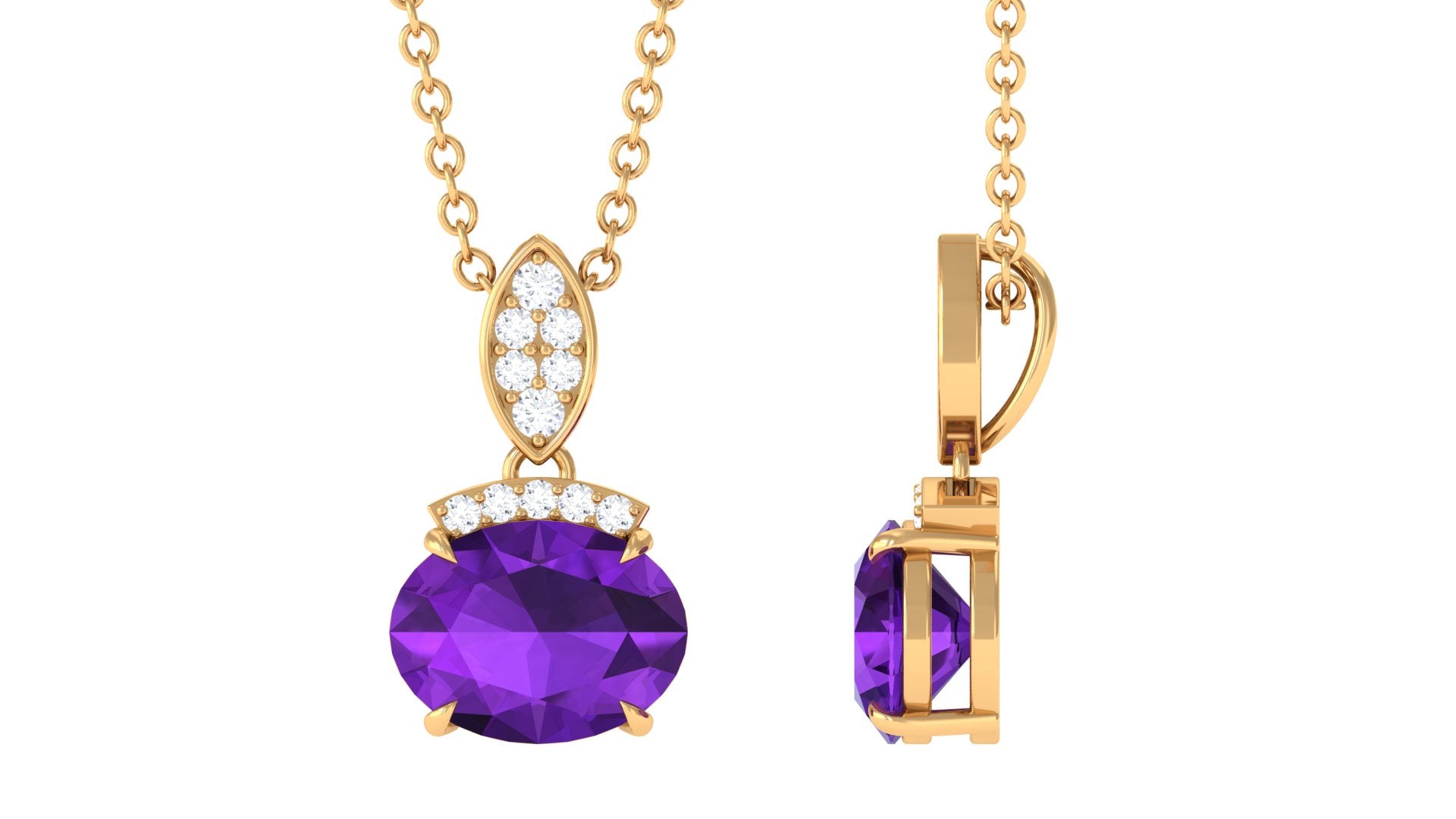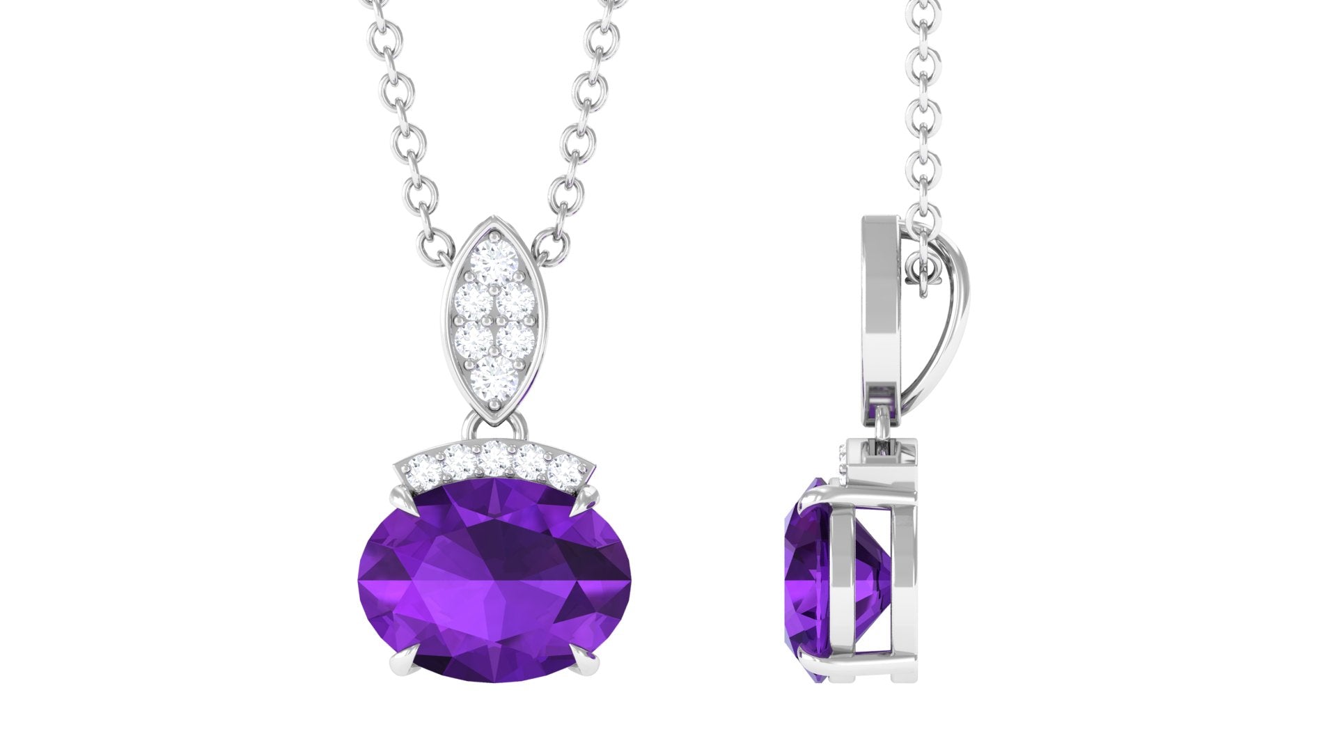 Elegant Oval Cut Amethyst Minimal Pendant with Diamond