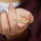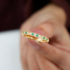 As a symbol of eternal elegance and sophistication, this Emerald Band Ring has the breathtaking feature of an unbroken circle of vibrant emeralds and brilliant diamonds, seamlessly alternating to create a continuous band of luxury. The lush emeralds, renowned for their deep, mesmerizing green tones, are expertly cut to maximize their natural brilliance and depth. Each stone is carefully set in a sleek, modern band, allowing its rich color to shine through the Anniversary Eternity Ring. Complementing the emeralds are dazzling Diamonds, enhancing the overall sparkle and creating a striking contrast against the rich green of the gemstones. Celebrate a love that lasts forever with the Emerald and Diamond Ring which is a masterpiece of beauty and craftsmanship that will be treasured for generations.