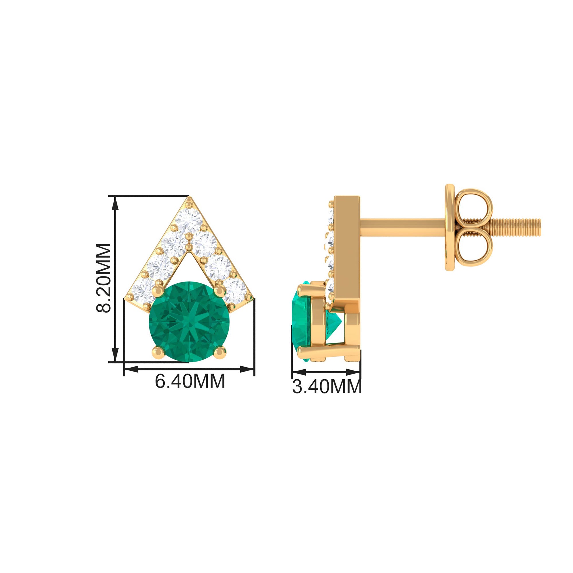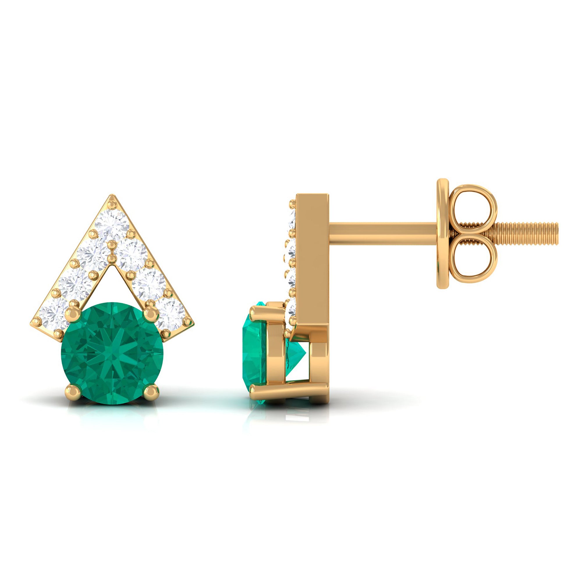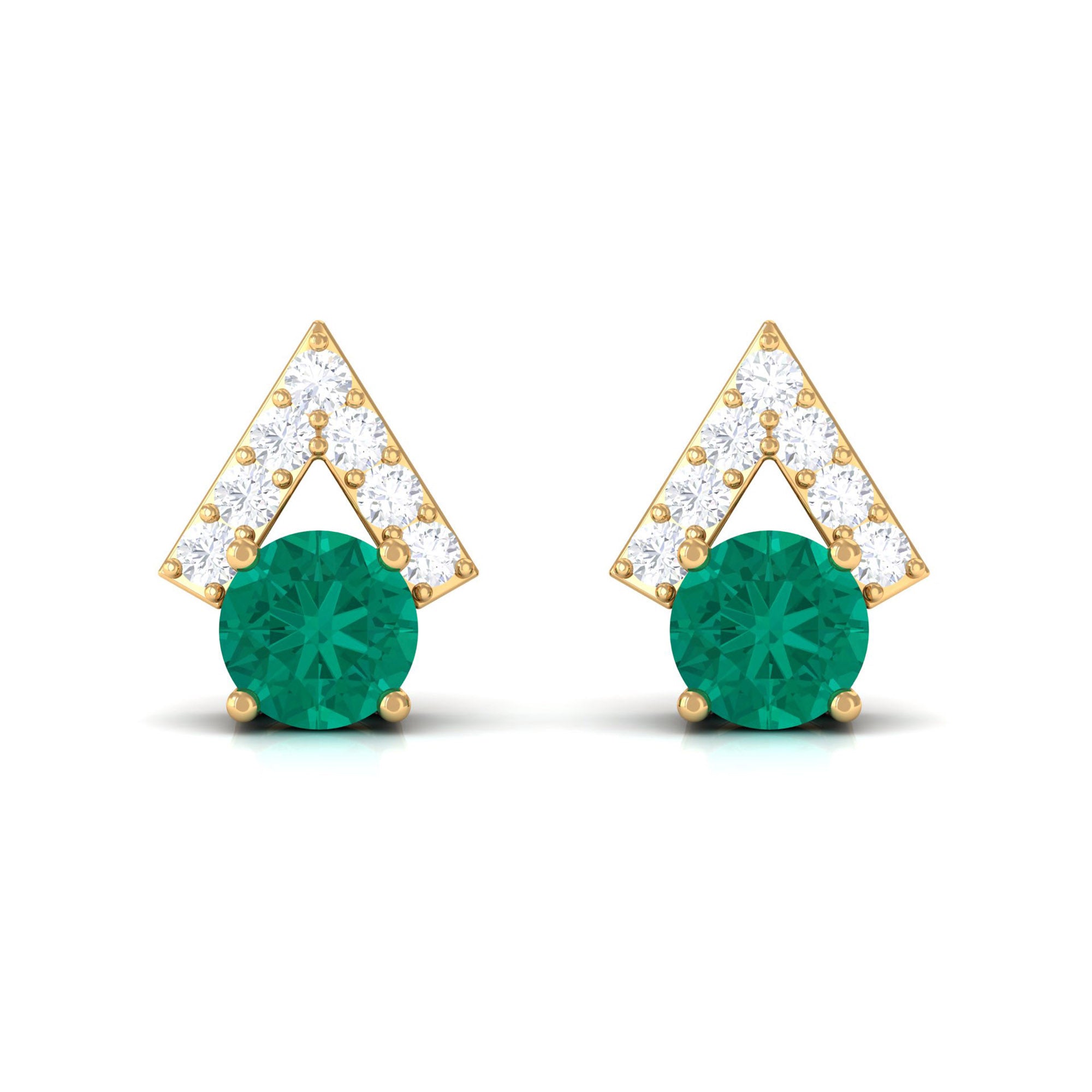 Elevate your beauty with these stunning Stud Earrings, featuring round-cut emeralds in a prong setting with Diamond accents. These contemporary earrings making them both fashionable and durable. The perfect addition to any jewelry collection, these earrings can be worn for any occasion. Let Rosec Jewels enhance your look with their handcrafted beauty. These earrings make a great gift for a loved one or a special treat for yourself.