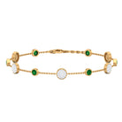 Elegance and beauty come together in this stunning Station Chain Bracelet, which showcases carefully arranged Round Shape Emerald Gemstones set securely in Bezel Setting. The chain is embellished with Diamonds, forming a mesmerizing illusion setting that alternates with the emeralds. This Natural Emerald Chain bracelet serves as an ideal gift for your loved one, crafted to commemorate her special occasion with an air of sophistication and enduring allure. This Chain Bracelet, featuring a blend of AAA quality emeralds and HI-SI quality diamonds, exudes a magical allure, rendering it a unique accessory for any woman seeking to enhance her style with color and sophistication. The design is both elegant and classic, making it appropriate for daily wear as well as special events. Crafted with meticulous attention to durability, this May Birthstone Emerald Bracelet symbolizes commitment and beauty. Its radiant stones and timeless design create a beautiful heirloom to be cherished and passed down through generations.