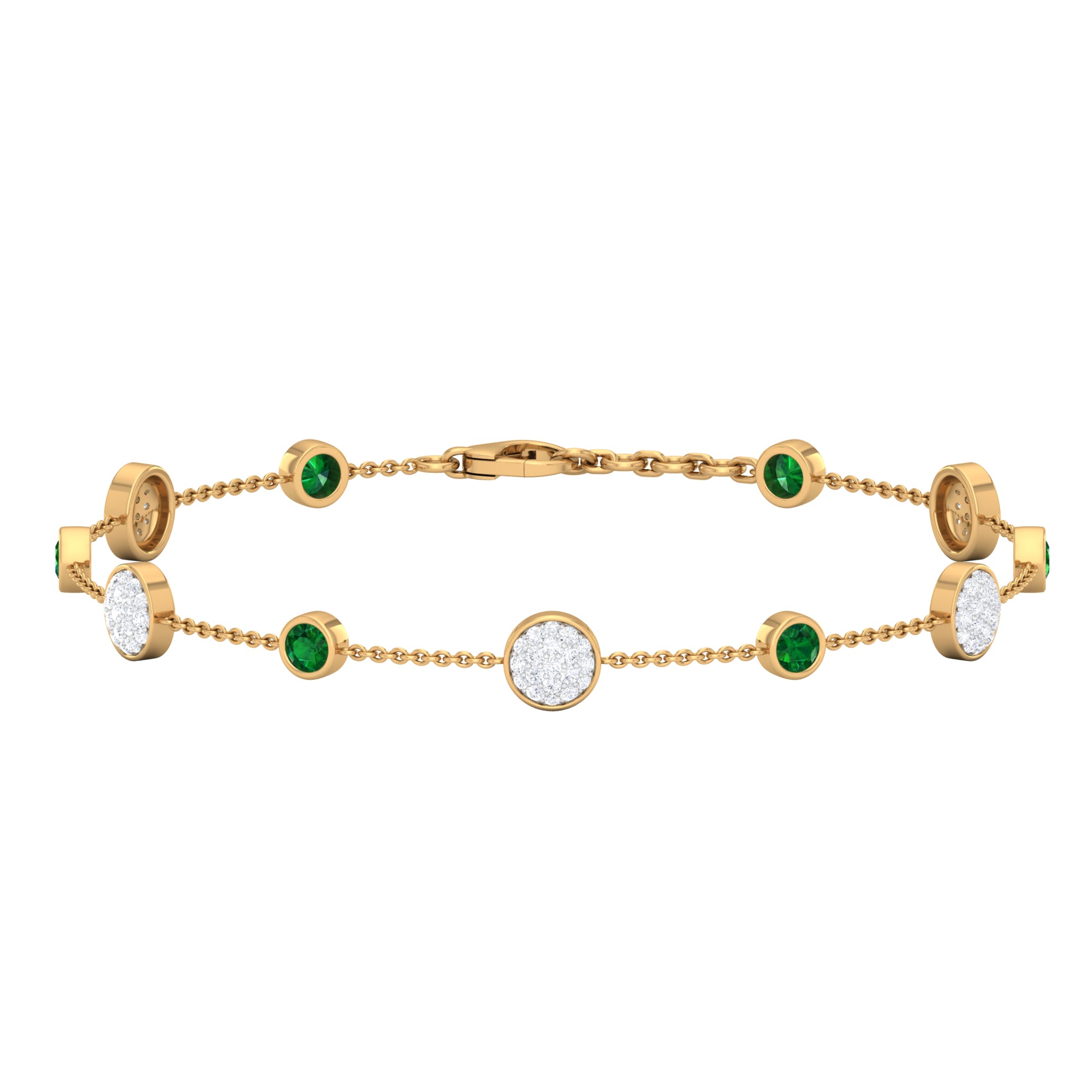 Emerald and Diamond Station Chain Bracelet